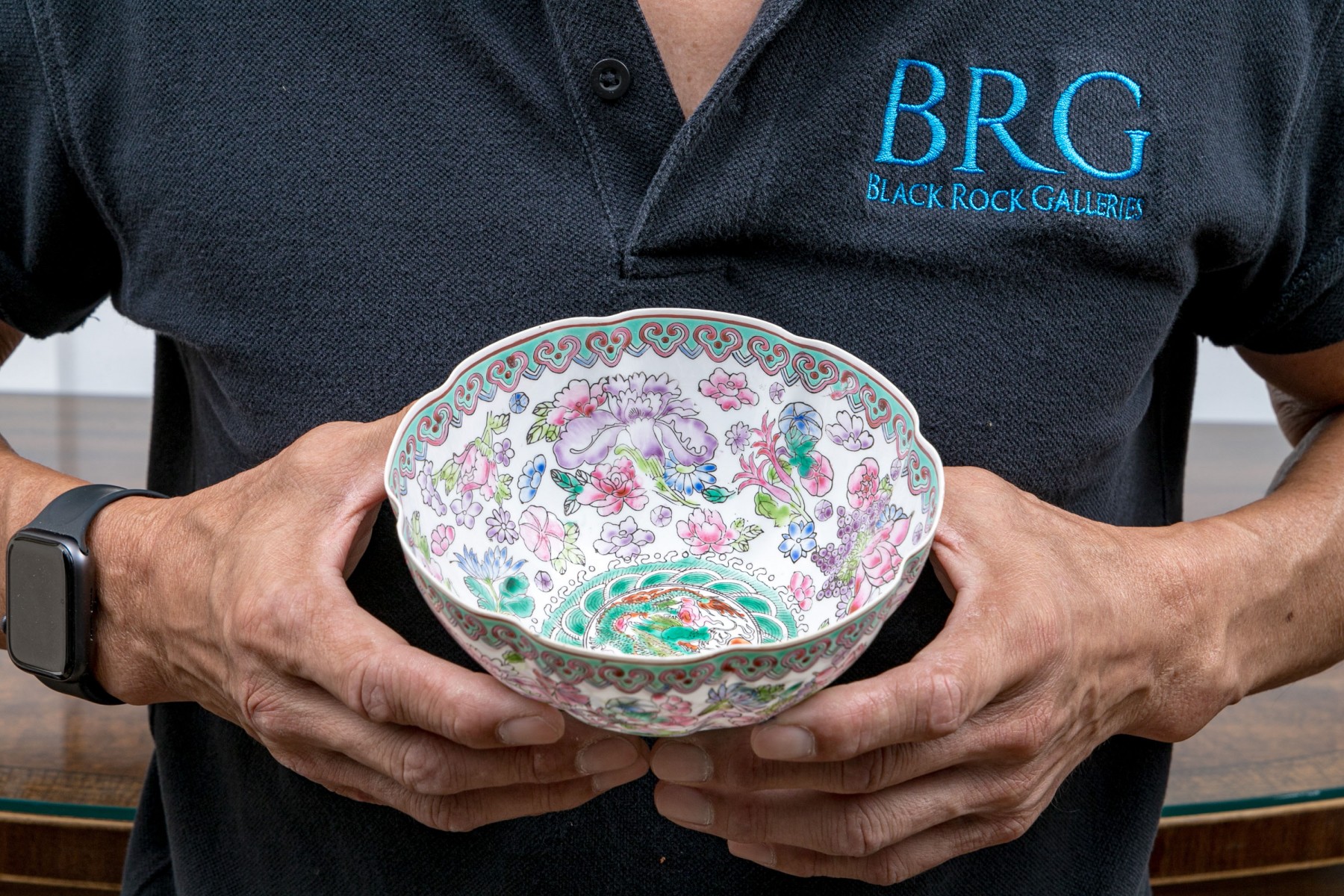 Fine Chinese Famille Rose Egg Shell Porcelain Scalloped Bowl #263561. Black Rock Galleries provides high end estate liquidation services through online estate auctions and a 50,000 sq ft designer showroom. estate liquidator, estate sale, online auction, antiques, fine art, liquidation, clean outs, auction, consignment, interior design, fine jewelry, collectibles, appraisals, estate appraisals, estate services, decor, furniture, furniture consignment, antique center, consignment shop. We offer appraisal services and specialize in fine art, jewelry, antiques and decorative arts. Sell with us. Black Rock Galleries is the tri-state's largest estate liquidator serving New England and the greater New York City area. We are the trusted source for expert appraisals, auction services, estate sales, and consignments. Black Rock Galleries is the east coast's largest and most trusted estate liquidator, with locations in Connecticut, greater Boston, MA and Raleigh, NC, Fairfield, Southport, Apex, TX. We are the best source for expert appraisals, auction services, estate sales and consignments. We have served thousands of families and estates with compassion, professionalism and expertise. BRG works with attorneys, executors, realtors and families to bring the greatest return on personal and estate property in the current market. Our unique combination of services make us the easy choice to get the job done in a timely and stress-free manner. We are with you from the initial consultation to the final clean out. Our house-built online auction software platform offers clients a dynamic approach to liquidating their personal property. This venue is most successful in bringing the best return with the least amount of disruption for our clients. See our services page for a complete description of this offering. Fine Chinese Famille Rose Egg Shell Porcelain Scalloped Bowl #263561
