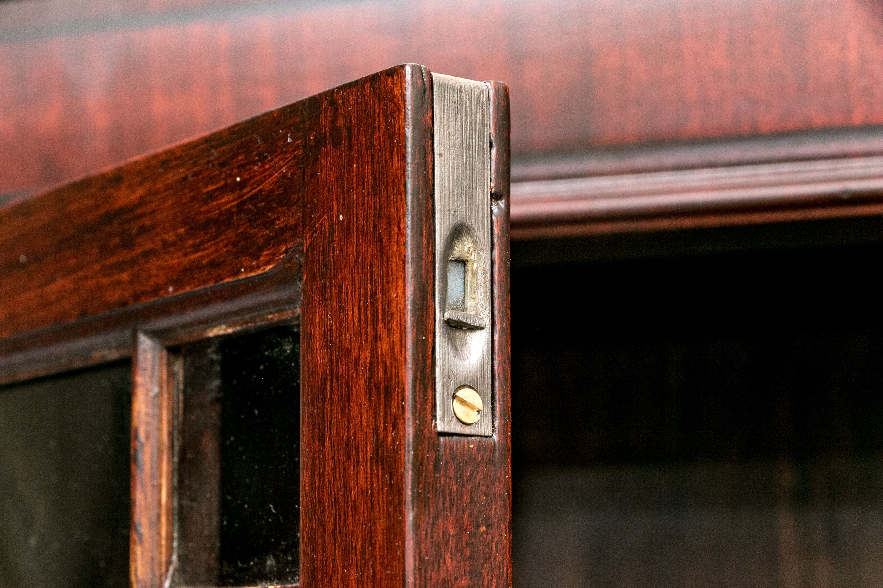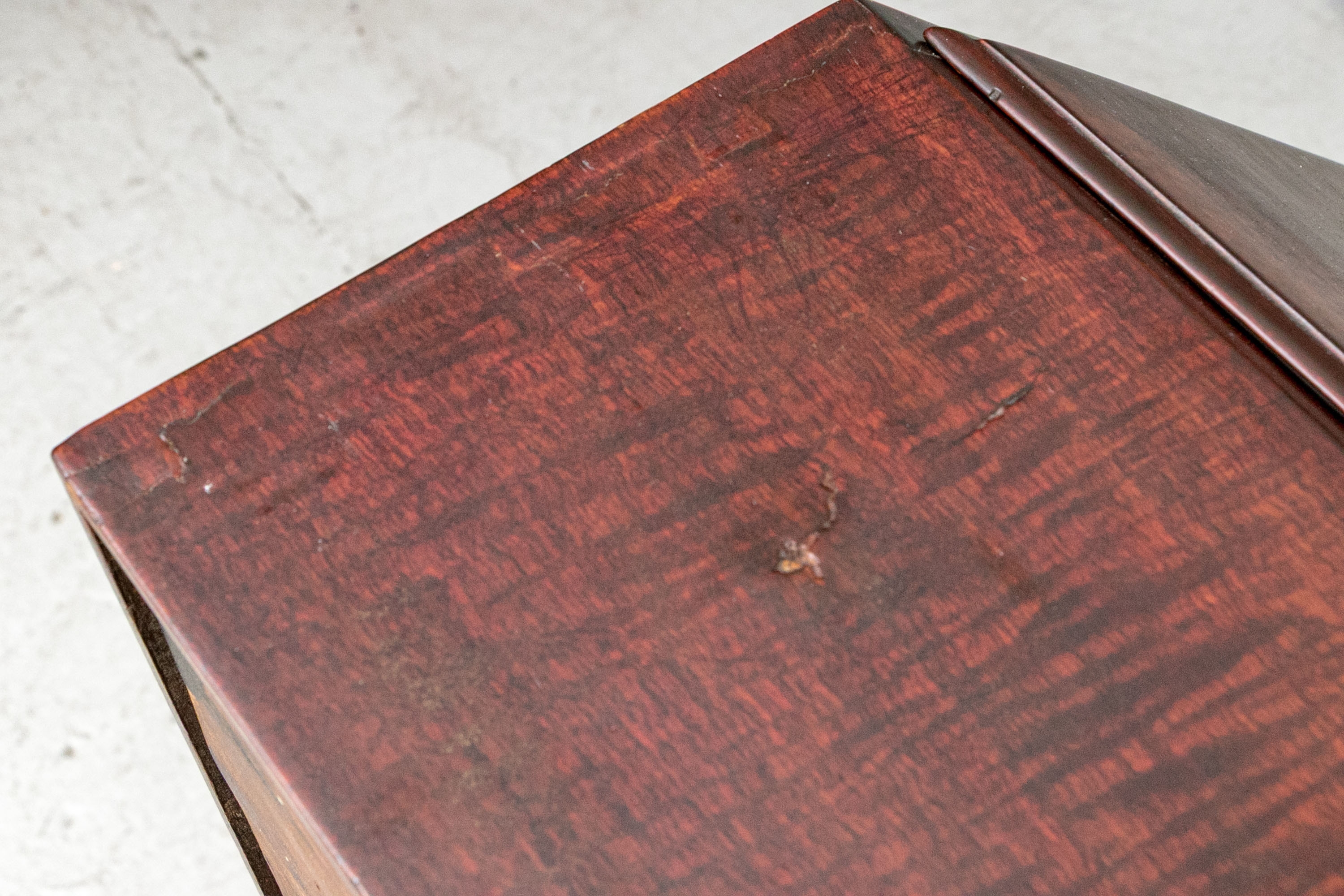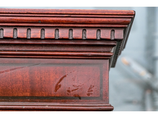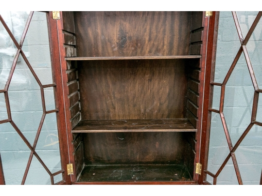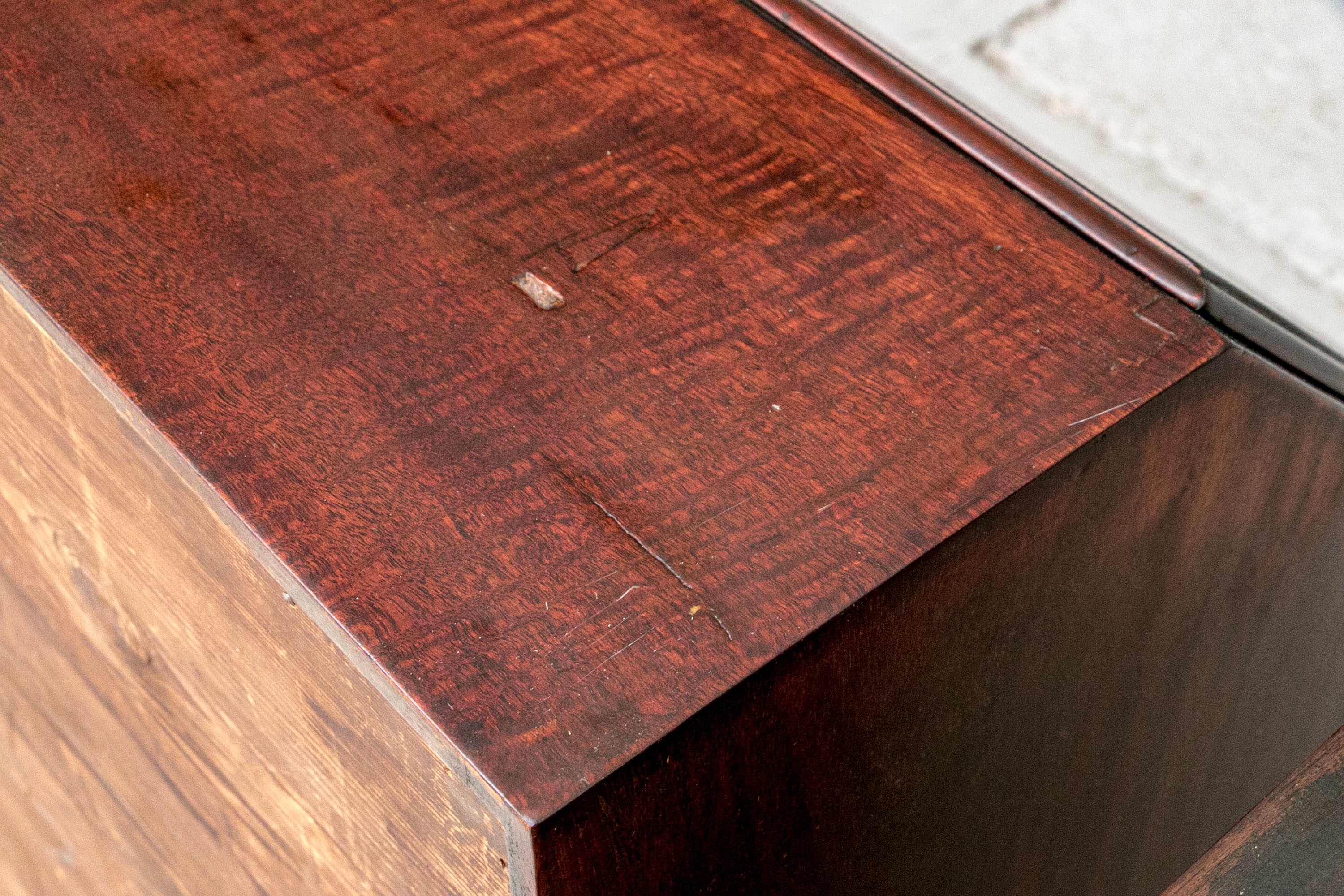 Condition: Please review the detail photos. There are some old gouges on the top of the lower case and some wear inside the bookcase. The cabinet has been professionally restored at an earlier time and presents in a refined manner.