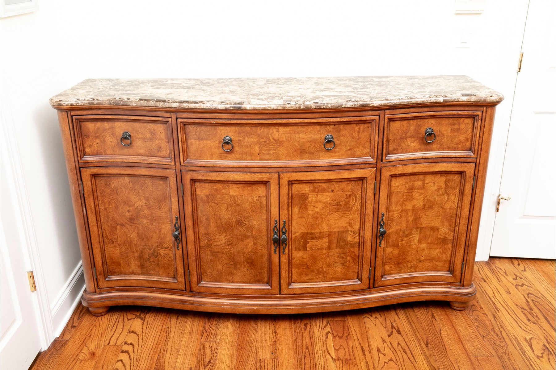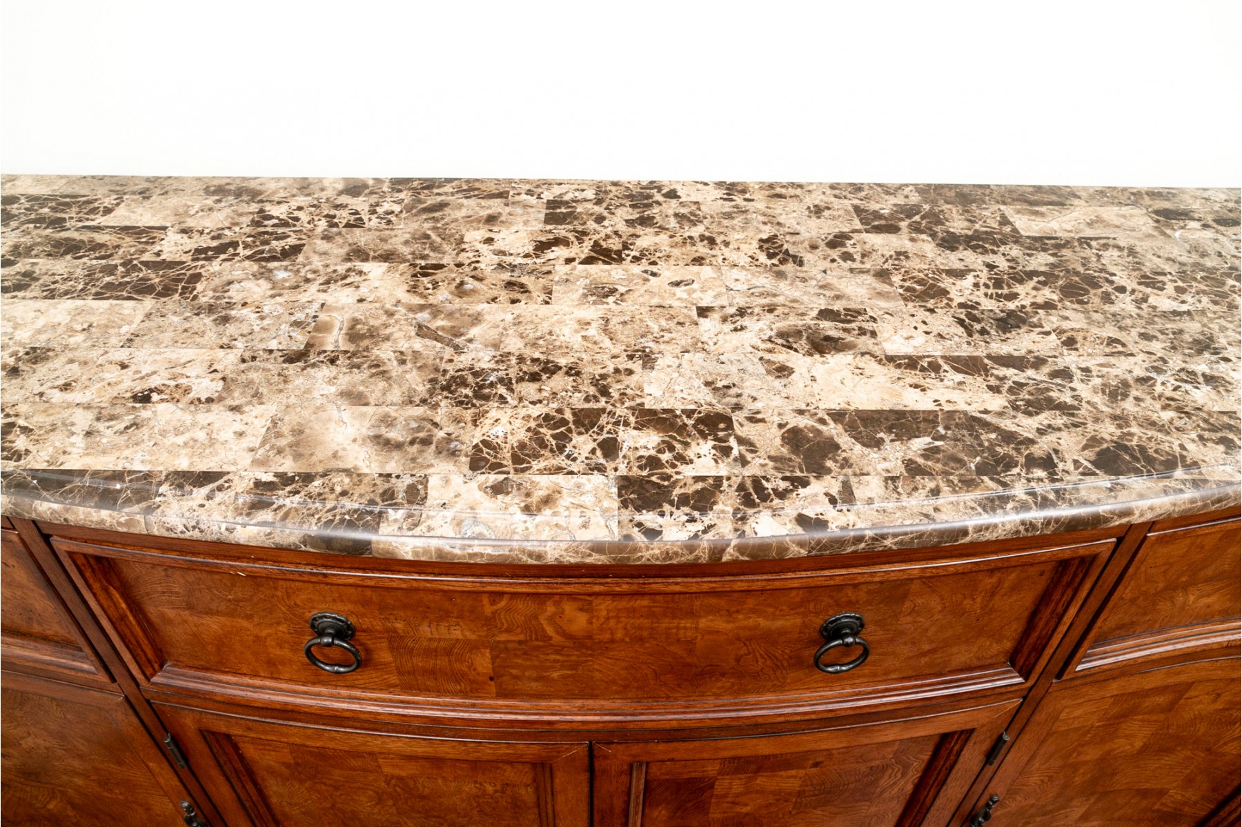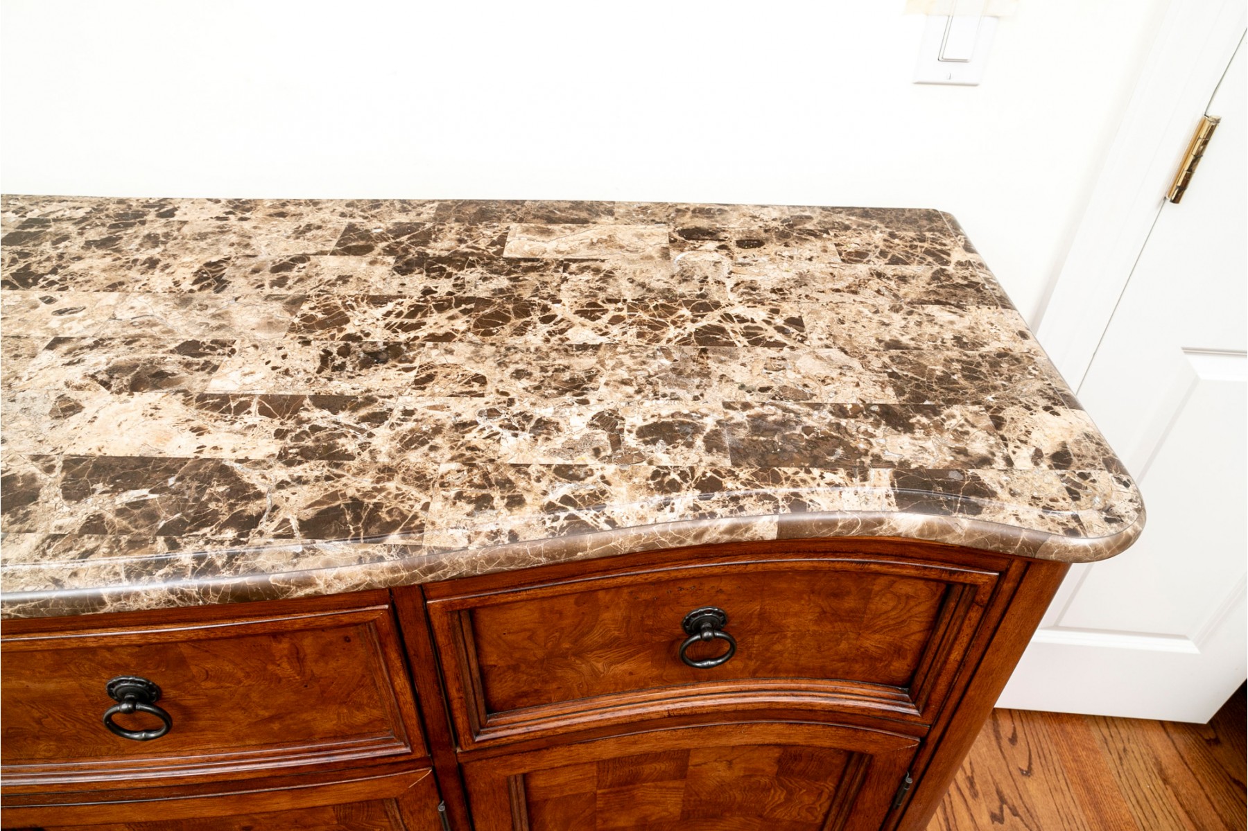 Condition: There are some scuffs and scratches to the wood finish and marble top however overall the item presents handsomely.