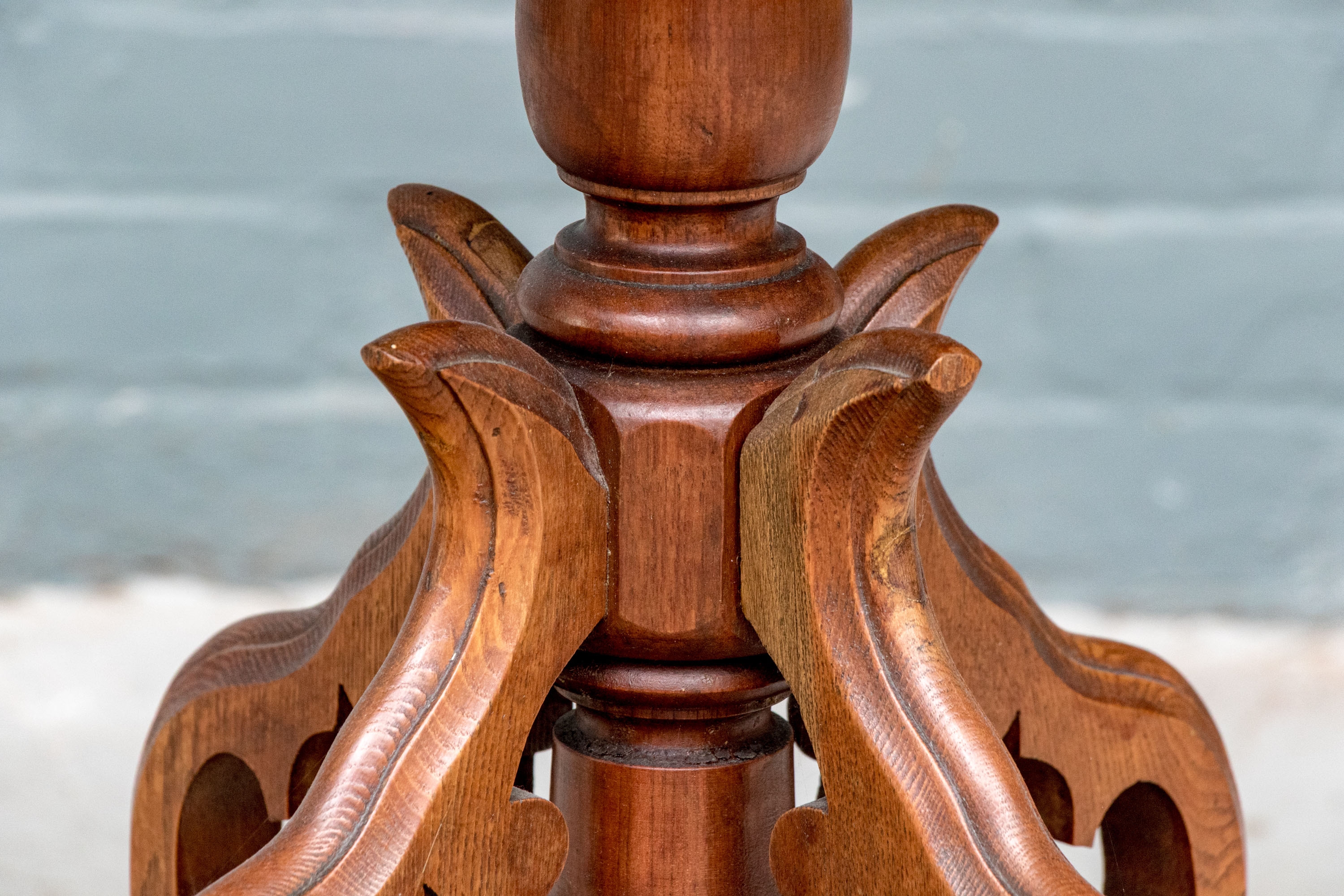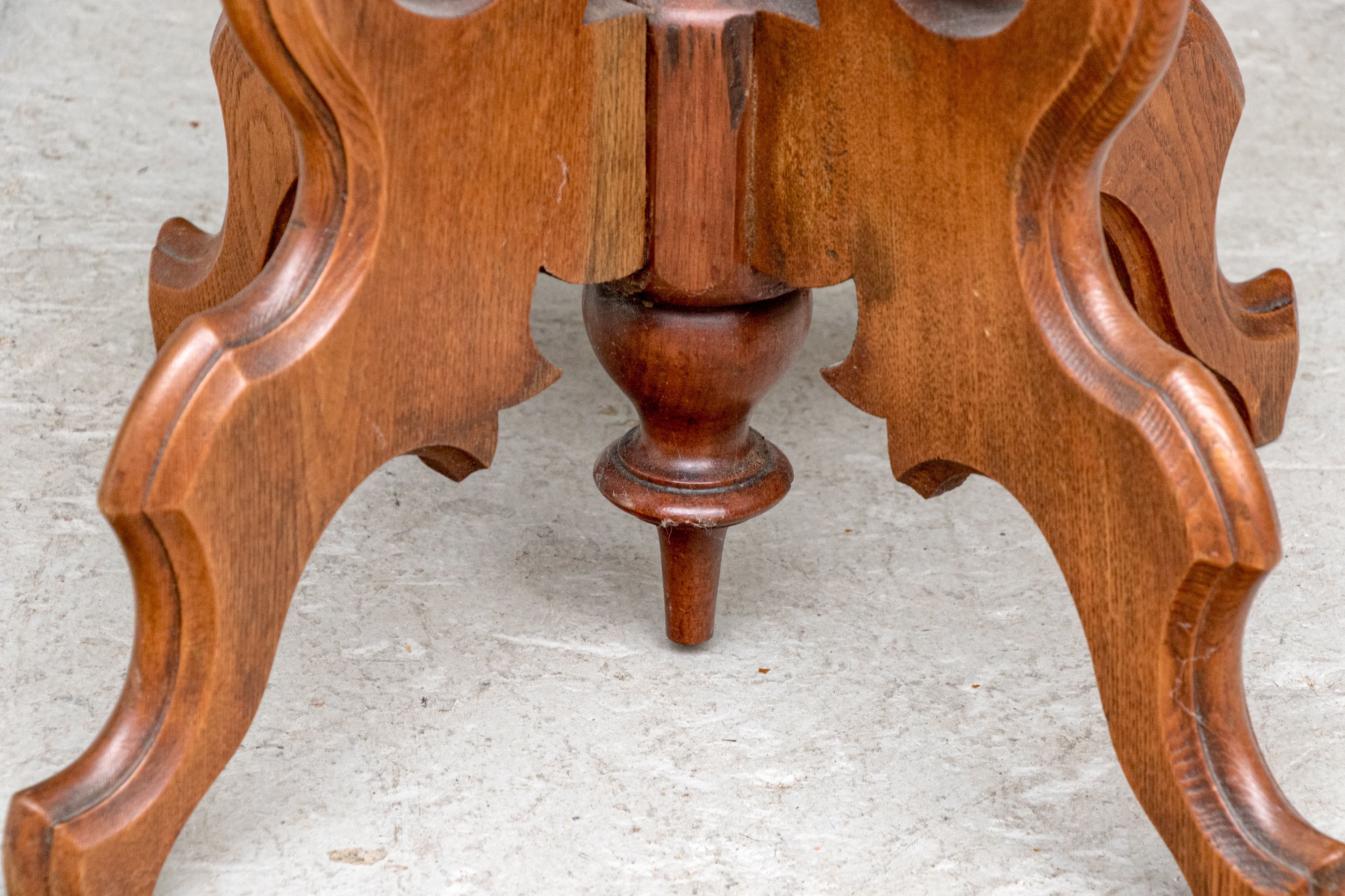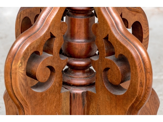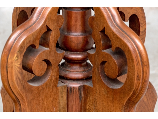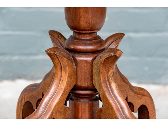 A very well made Victorian Table with Oval top, great Honey tone, well turned support, ridged apron and intricate pieced and shaped legs. The table was professionally refinished at an earlier time and may be used in any number of interior applications.