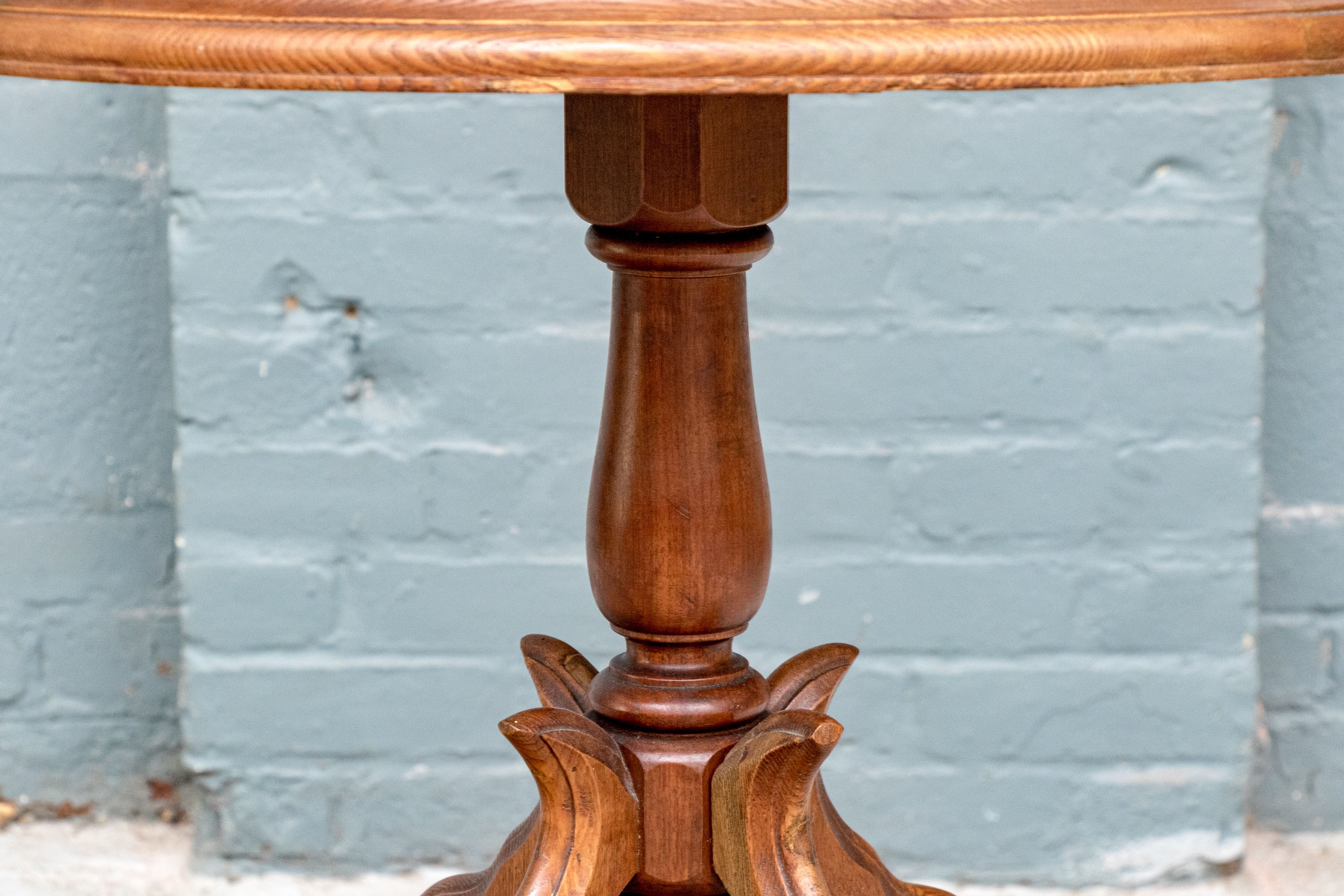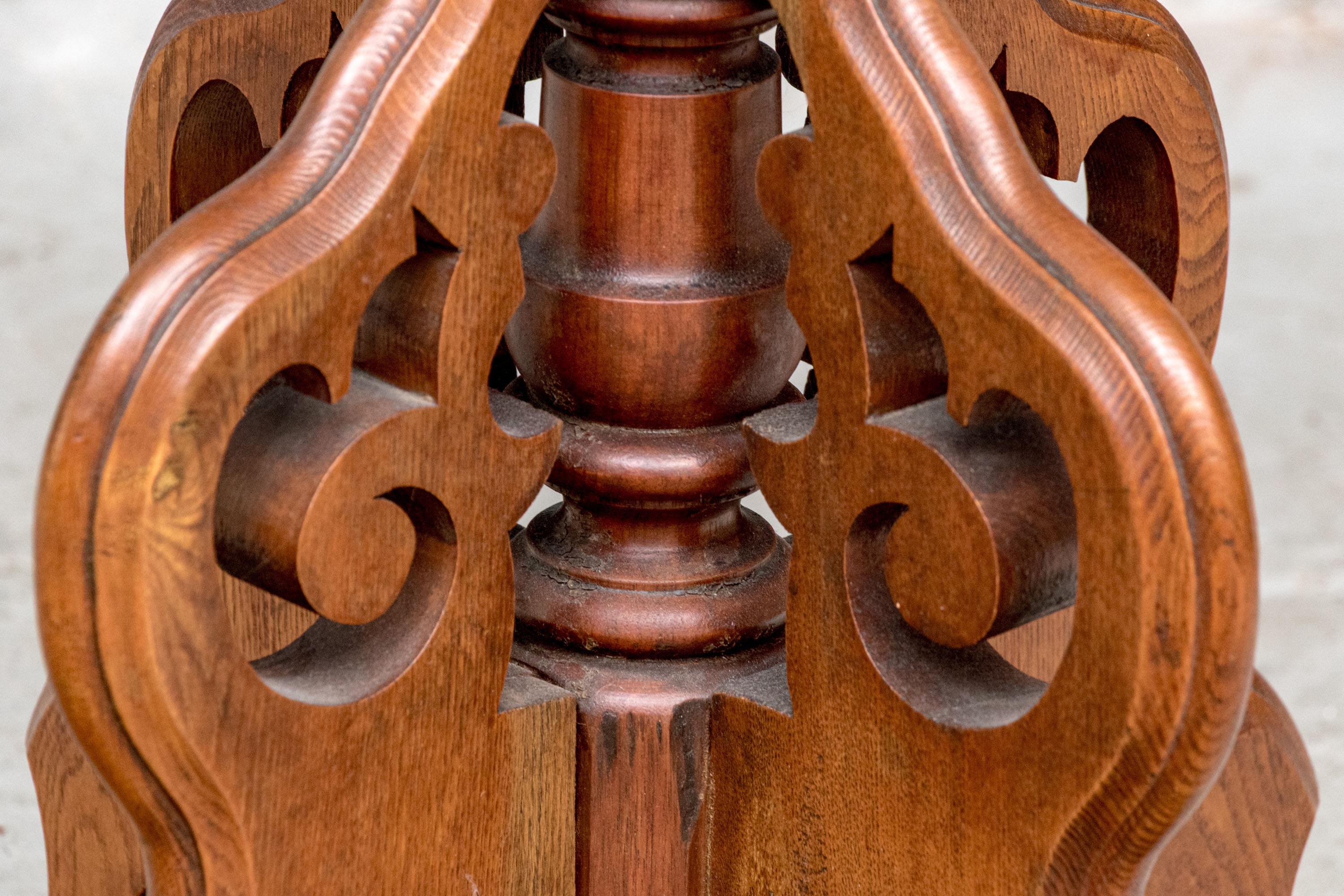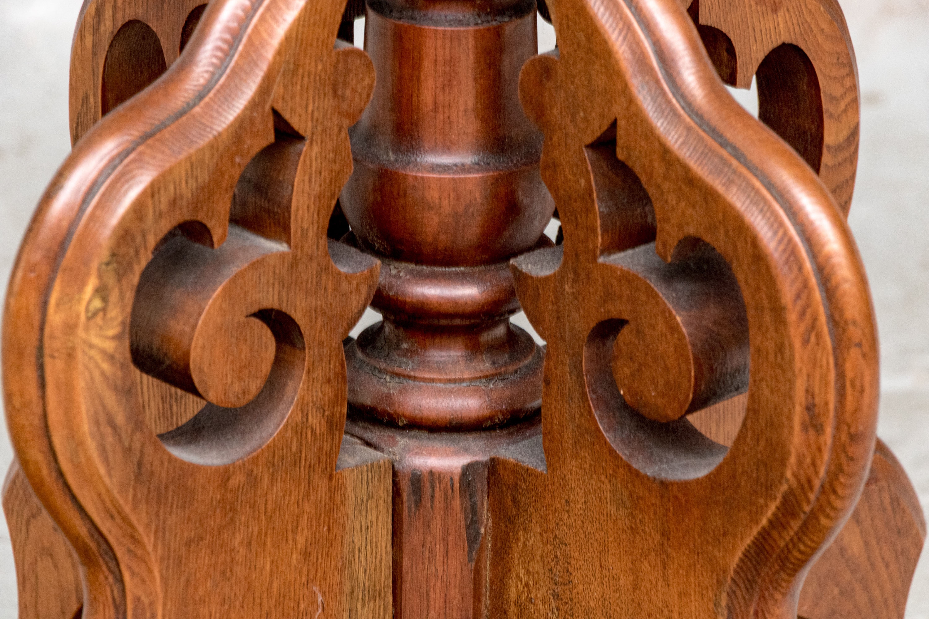 A very well made Victorian Table with Oval top, great Honey tone, well turned support, ridged apron and intricate pieced and shaped legs. The table was professionally refinished at an earlier time and may be used in any number of interior applications.