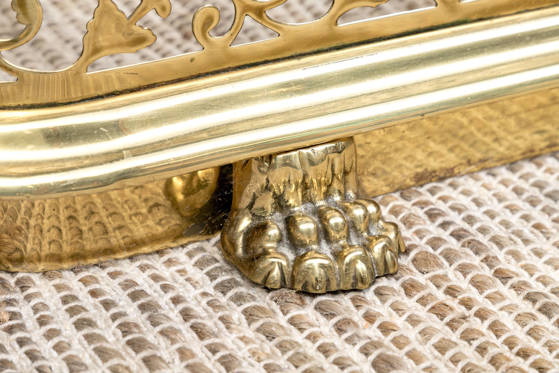 With an openwork leafy scrolled patterned U shaped frame, raised on lion paw feet.