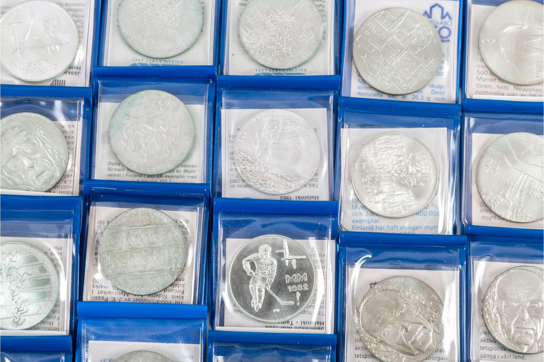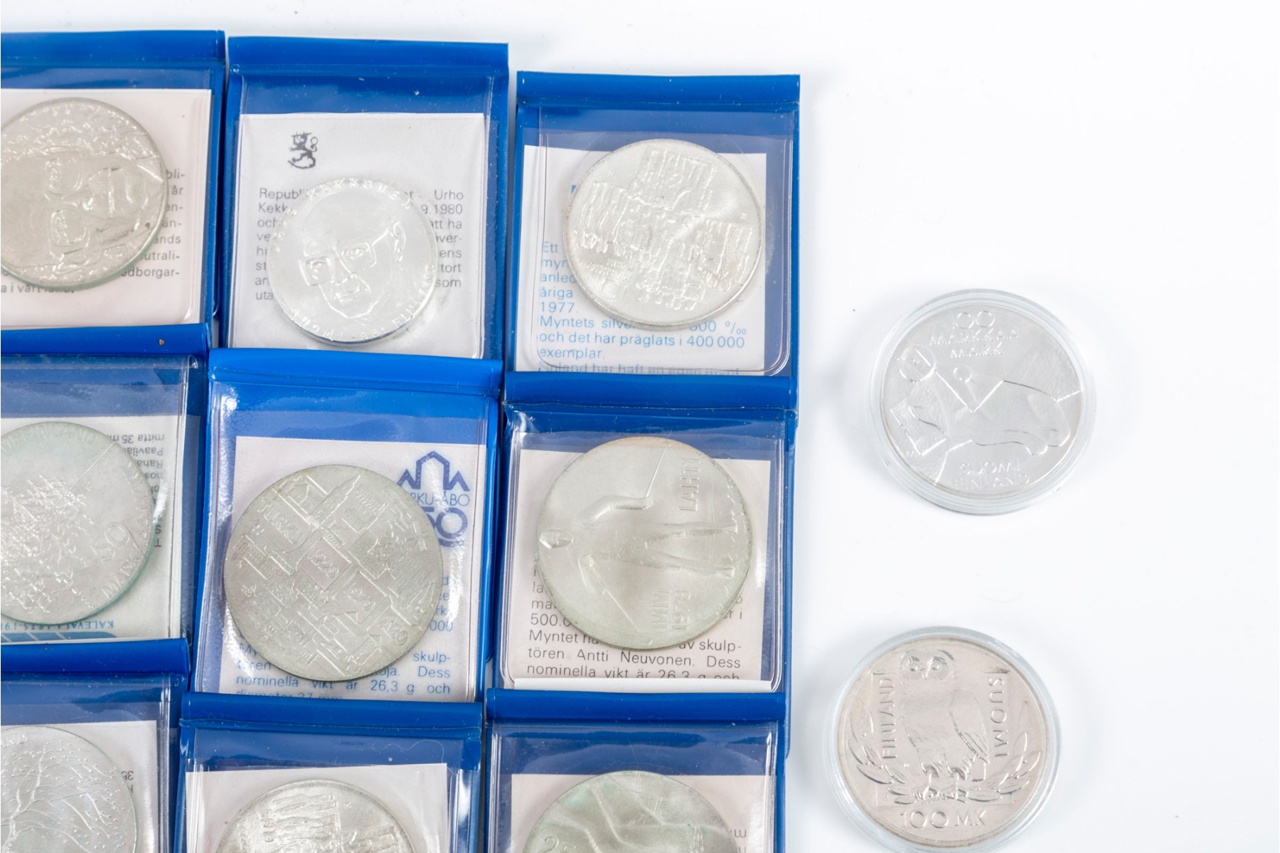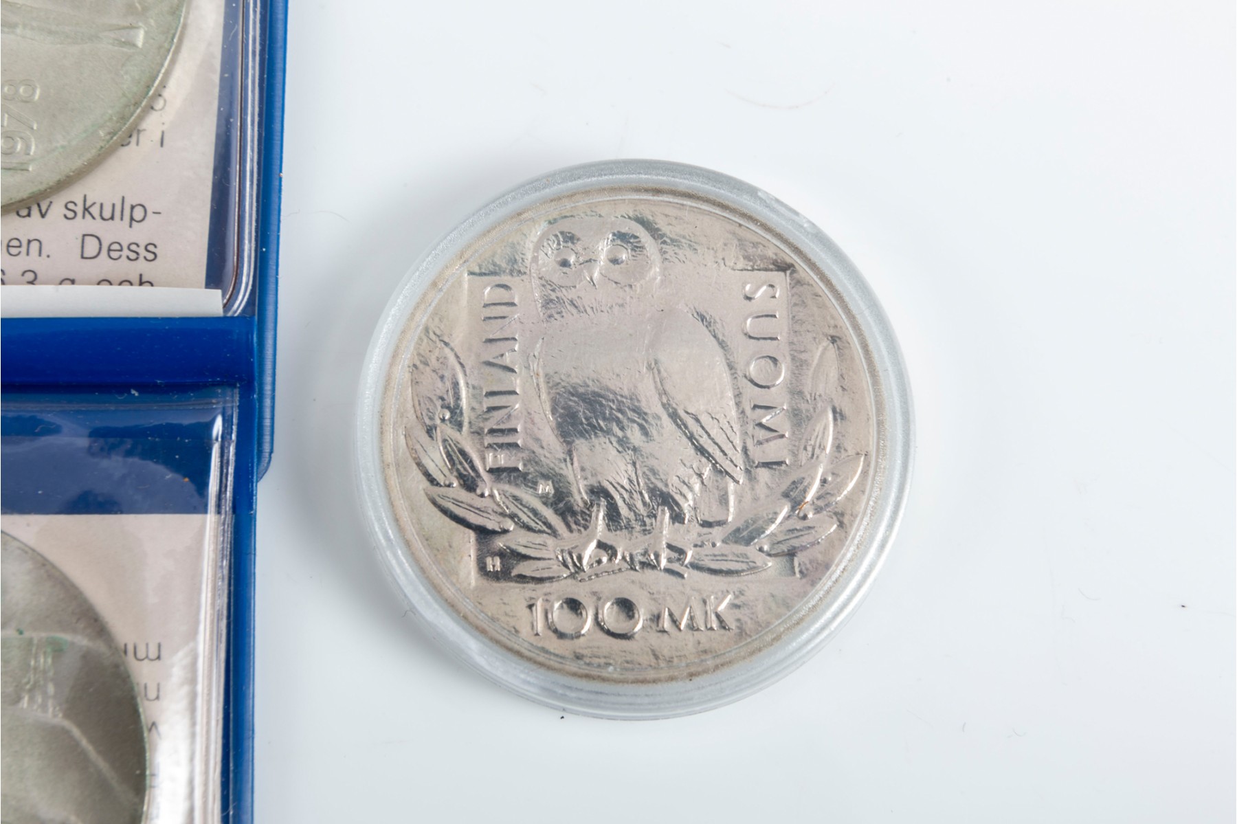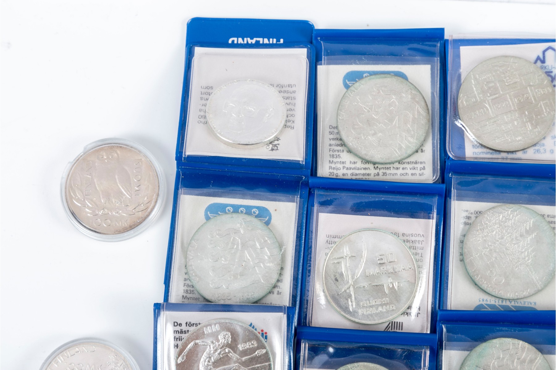 A large collection of Soumi Finland Mint commemorative coins. Mixed dates, a few of which have a silver content of 0.500. contents as shown and sold as is, see photos for details.