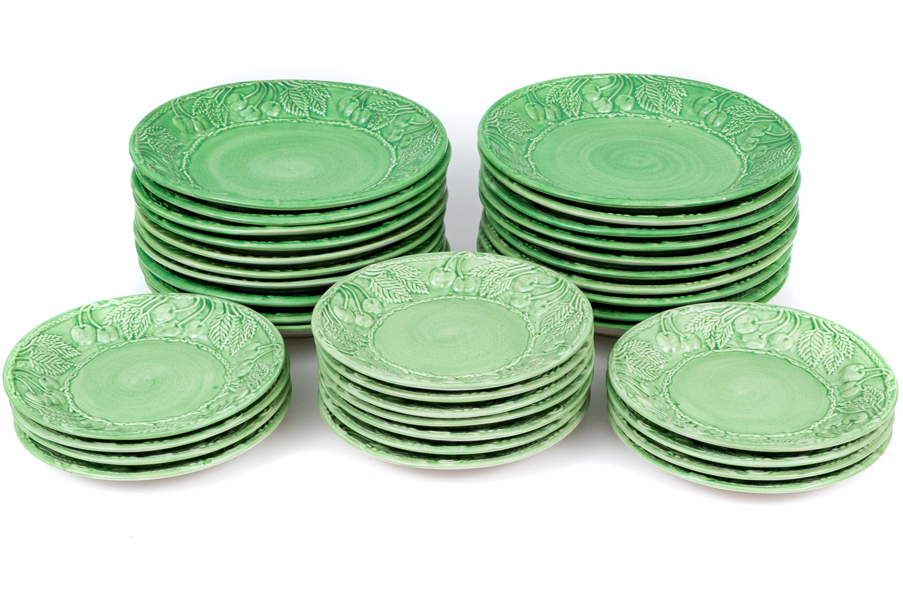 Comprised of fifteen salad plates (9" diameter) and twenty dinner plates (11 1/2" diameter).
