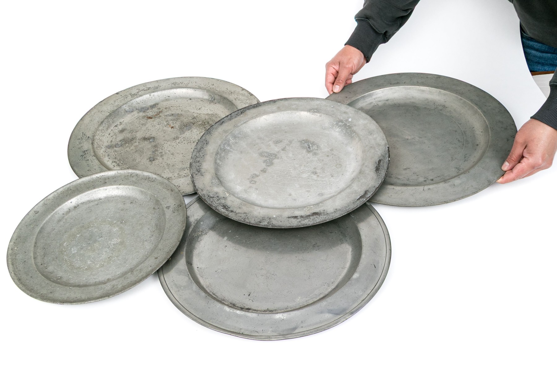Five Antique Pewter Chargers #444452. Black Rock Galleries provides high end estate liquidation services through online estate auctions and a 50,000 sq ft designer showroom. estate liquidator, estate sale, online auction, antiques, fine art, liquidation, clean outs, auction, consignment, interior design, fine jewelry, collectibles, appraisals, estate appraisals, estate services, decor, furniture, furniture consignment, antique center, consignment shop. We offer appraisal services and specialize in fine art, jewelry, antiques and decorative arts. Sell with us. Black Rock Galleries is the tri-state's largest estate liquidator serving New England and the greater New York City area. We are the trusted source for expert appraisals, auction services, estate sales, and consignments. Black Rock Galleries is the east coast's largest and most trusted estate liquidator, with locations in Connecticut, greater Boston, MA and Raleigh, NC, Fairfield, Southport, Apex, TX. We are the best source for expert appraisals, auction services, estate sales and consignments. We have served thousands of families and estates with compassion, professionalism and expertise. BRG works with attorneys, executors, realtors and families to bring the greatest return on personal and estate property in the current market. Our unique combination of services make us the easy choice to get the job done in a timely and stress-free manner. We are with you from the initial consultation to the final clean out. Our house-built online auction software platform offers clients a dynamic approach to liquidating their personal property. This venue is most successful in bringing the best return with the least amount of disruption for our clients. See our services page for a complete description of this offering. Five Antique Pewter Chargers #444452