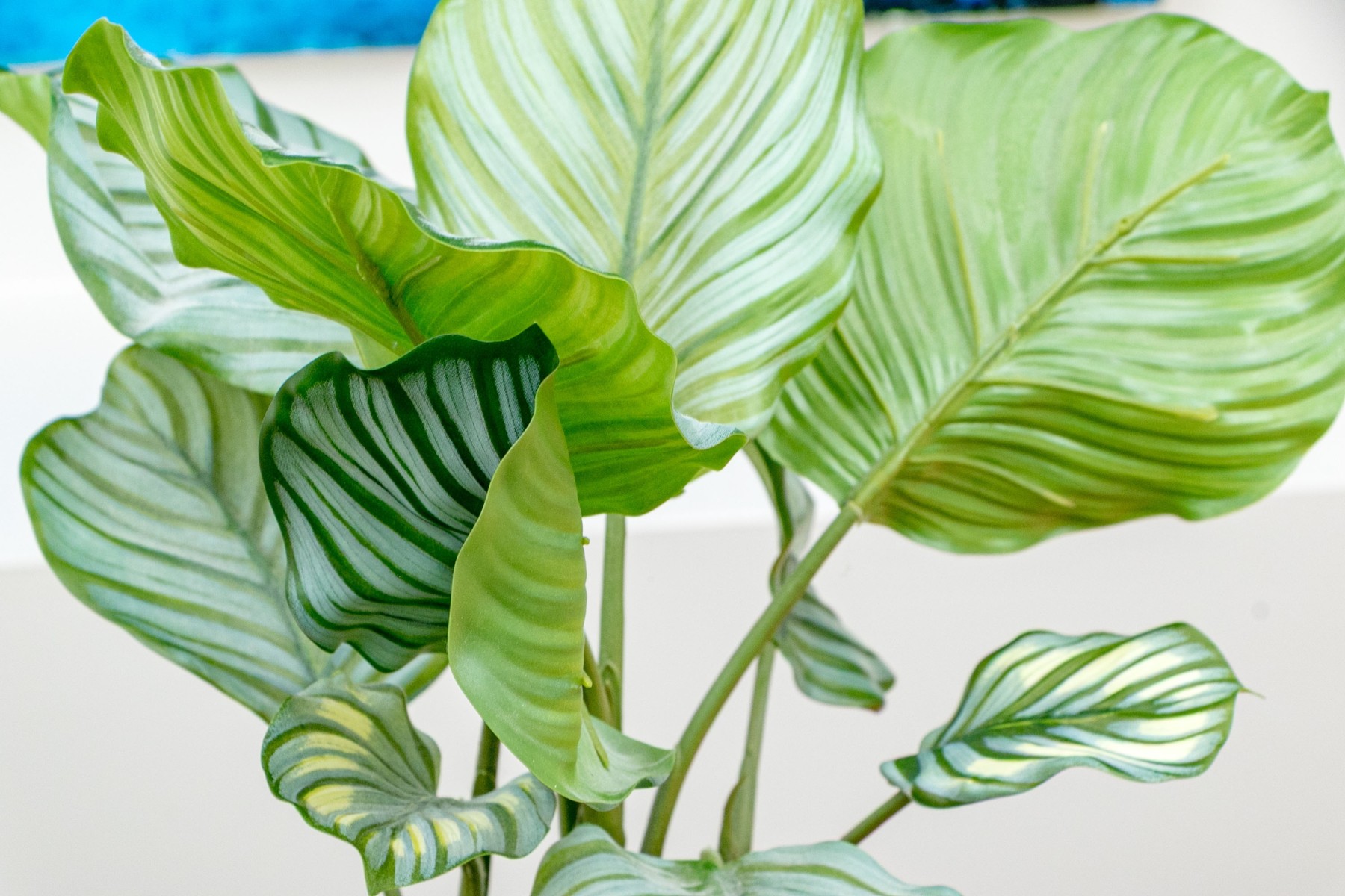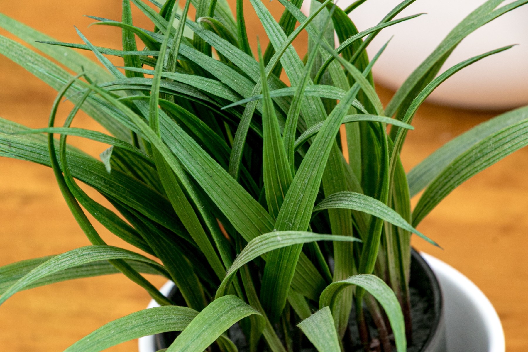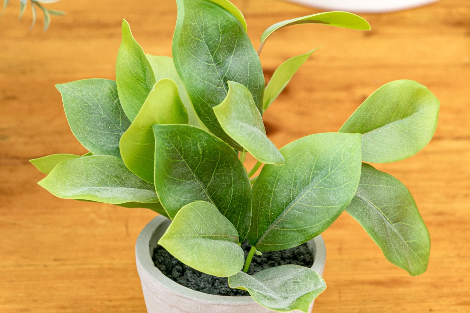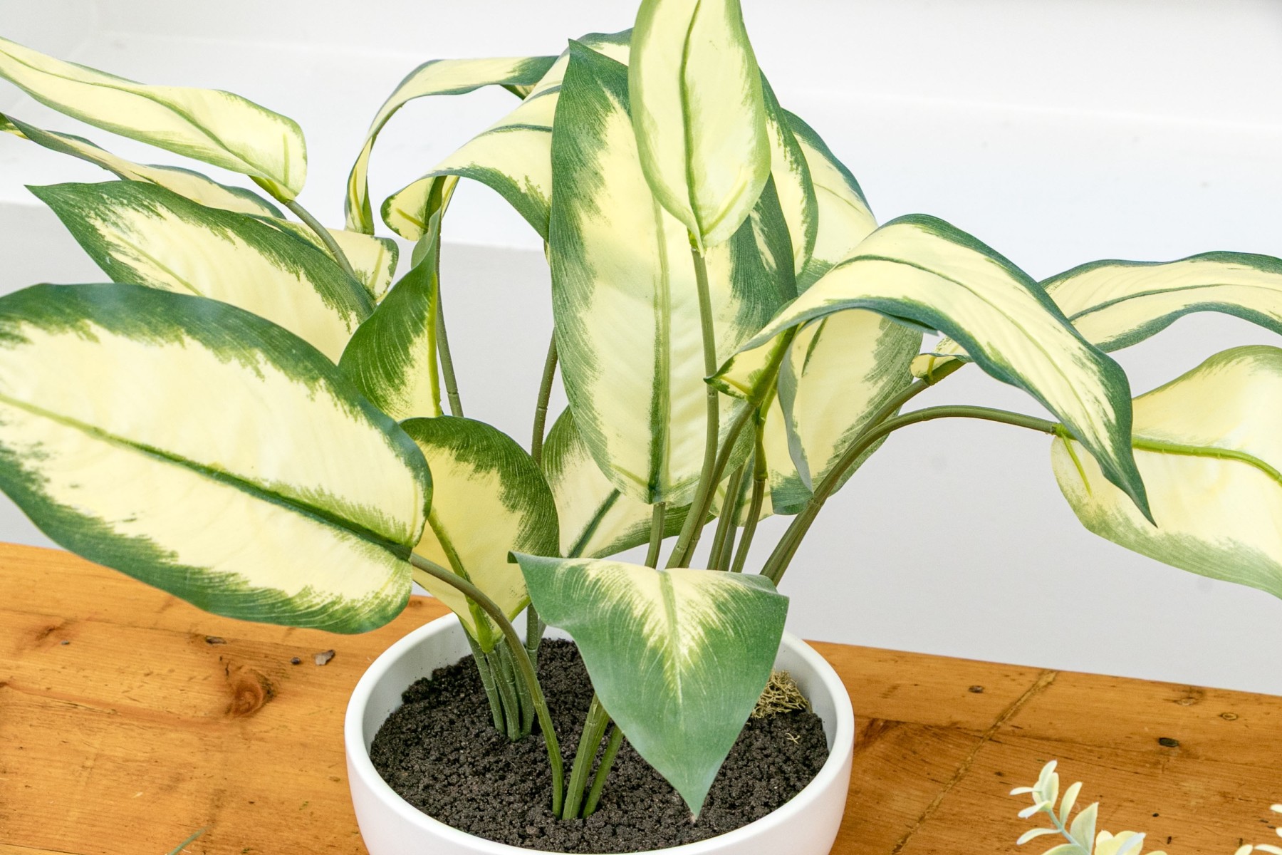 Comprised of decorative faux plants and ceramic planters of differing form and size.