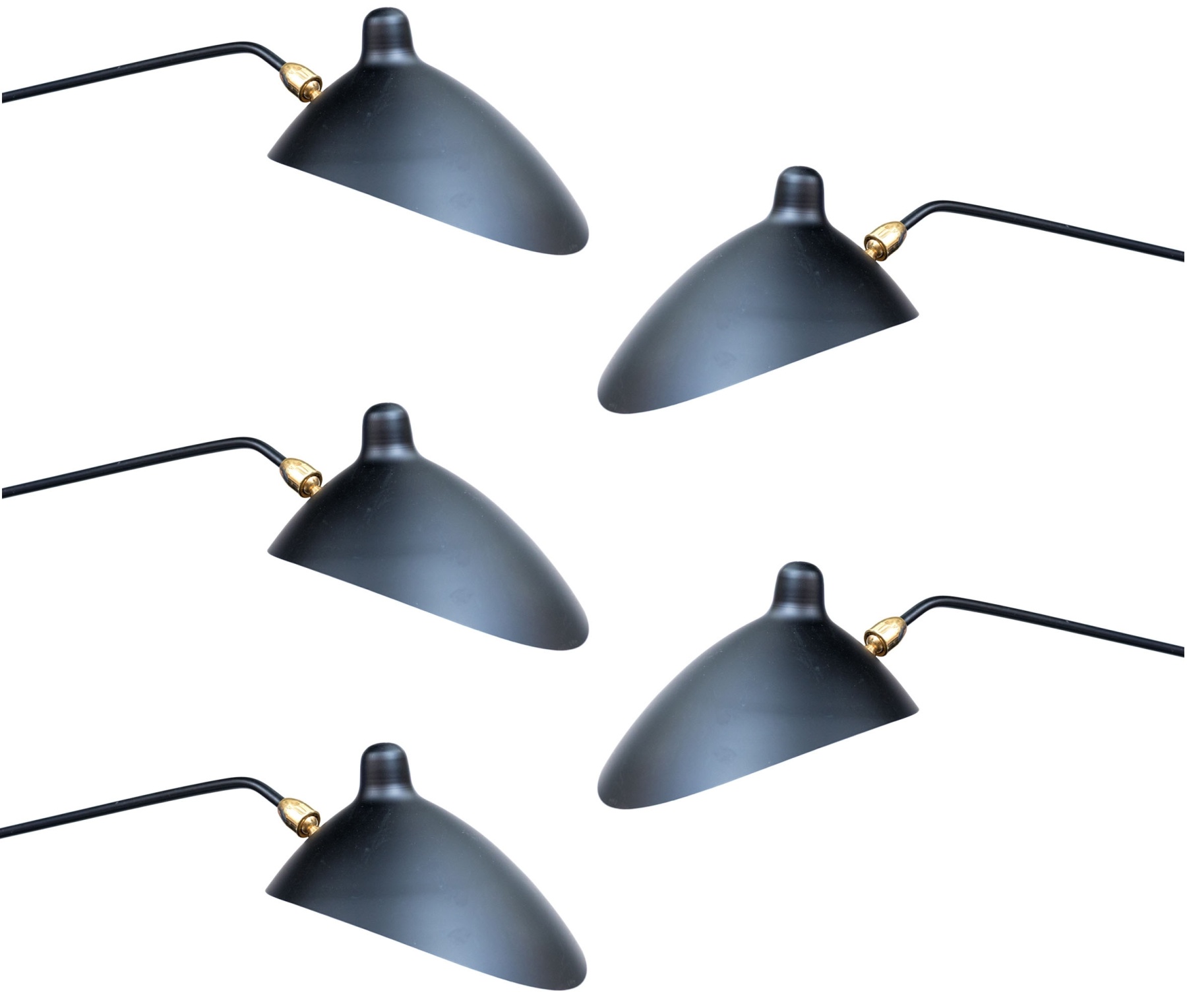 No central fixture. All of varied length. Ranging from 61 1/2" L x 28 1/2" L total with nipple form shade and arms.