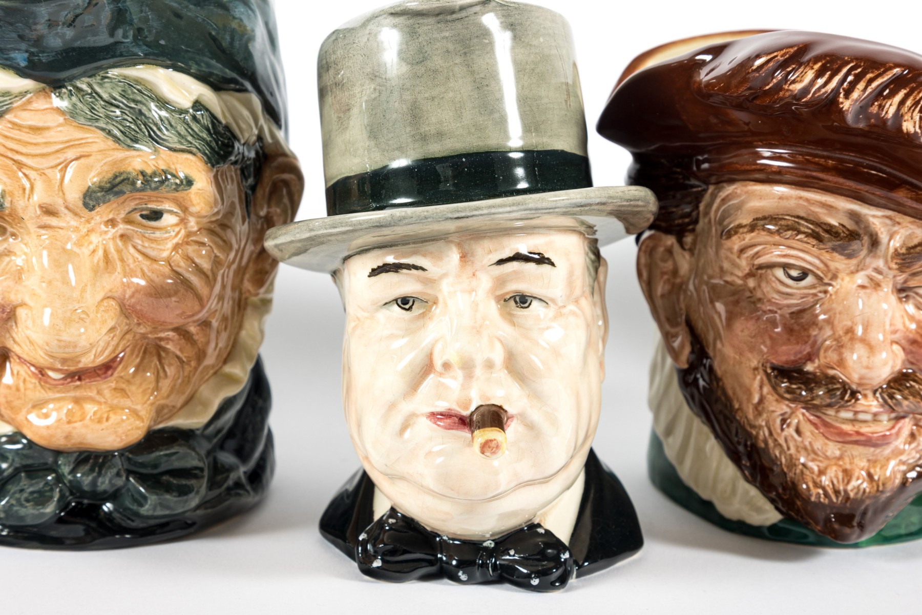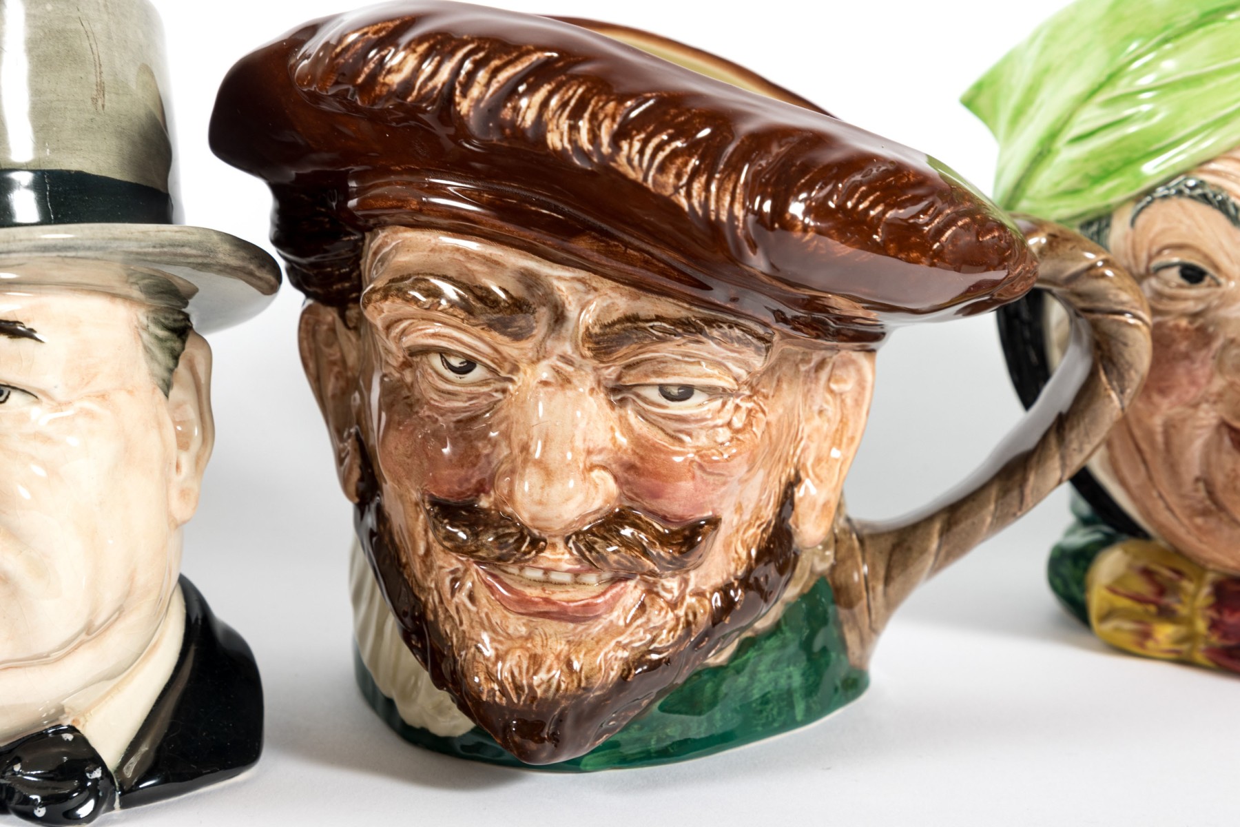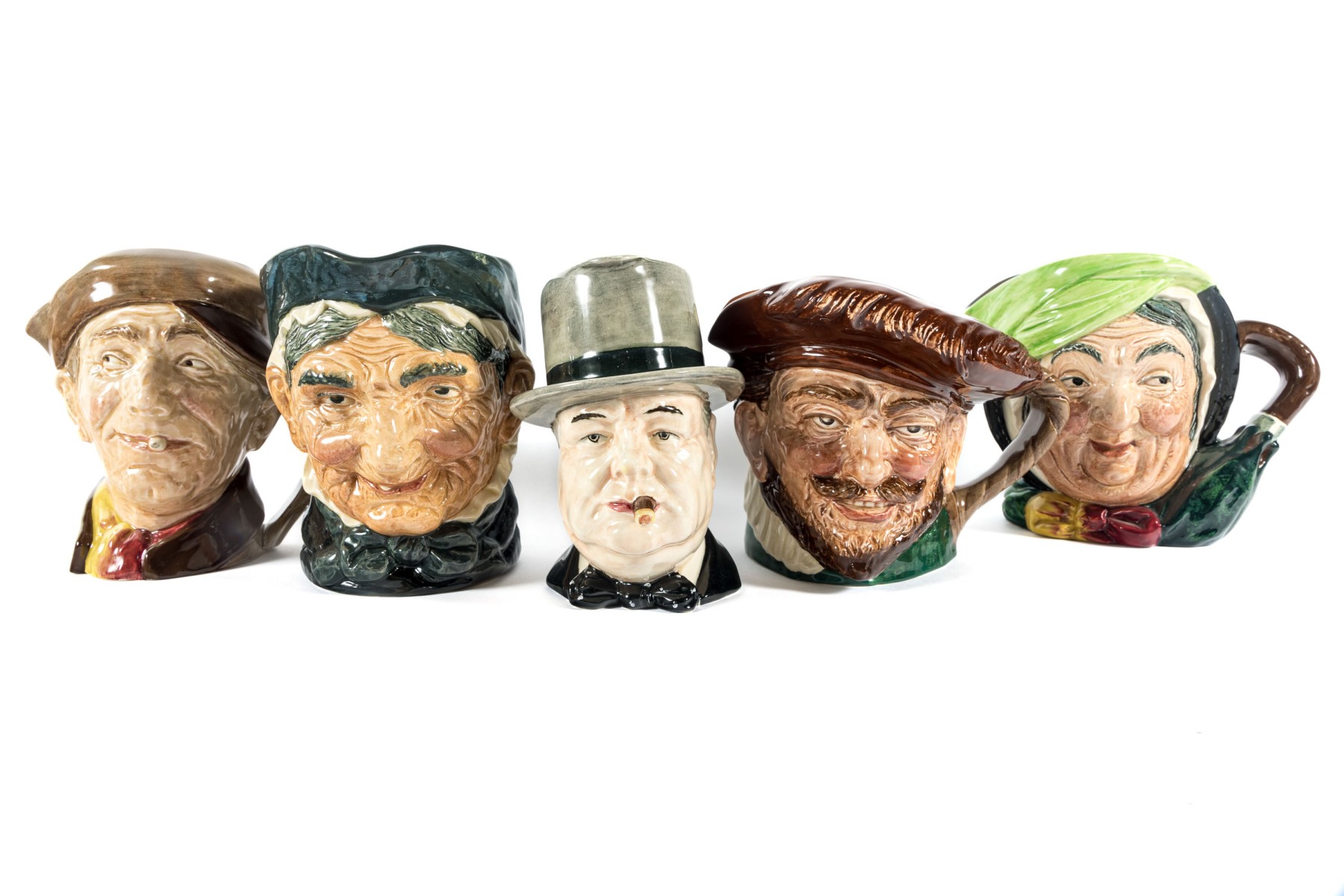 A selection of five vintage hand-painted caricature Toby mugs, each one unique and marked on the underside. Refer to photos for details.