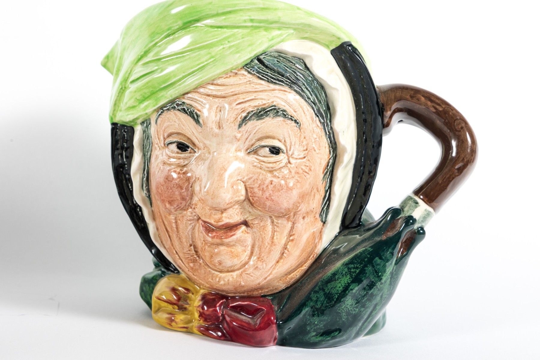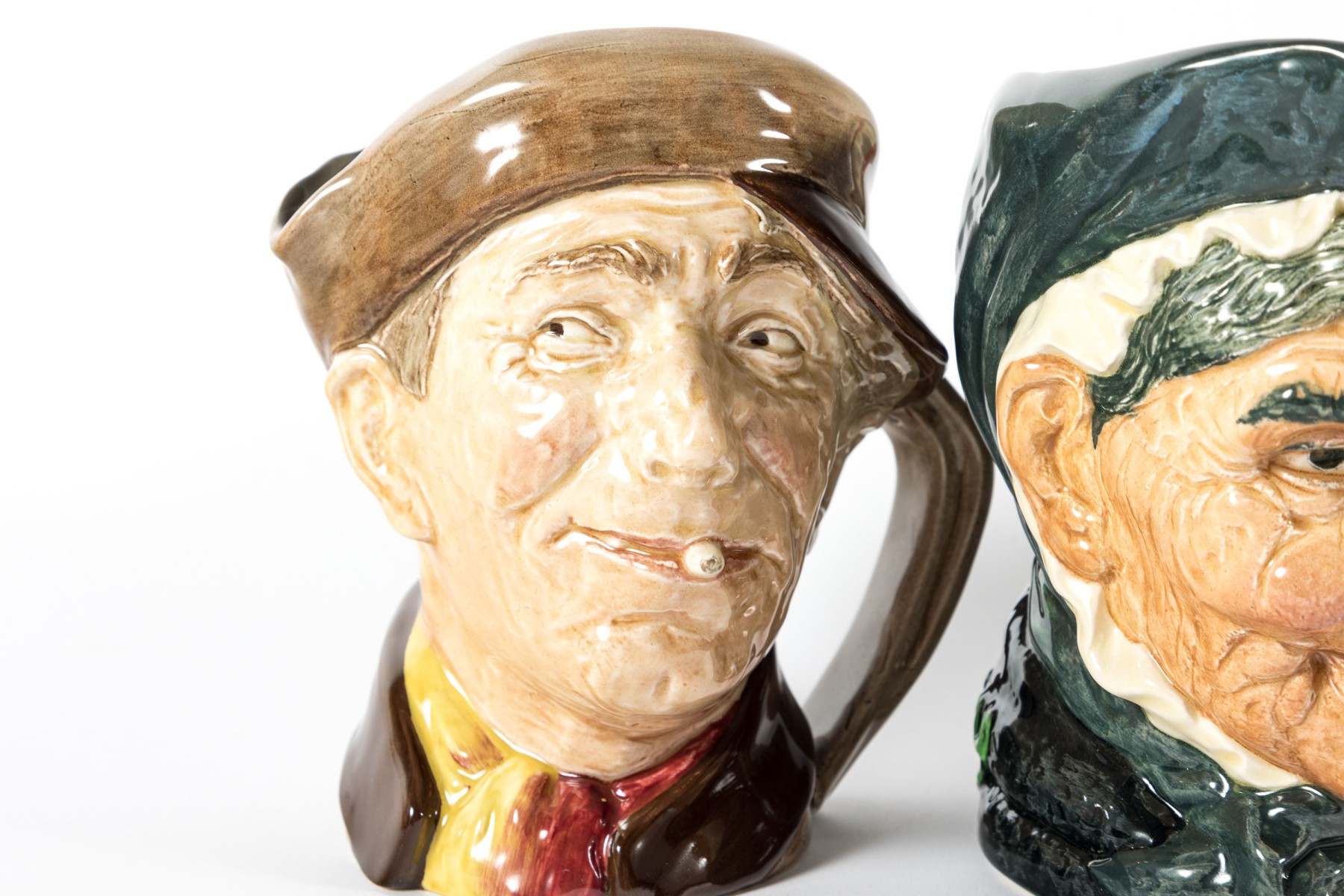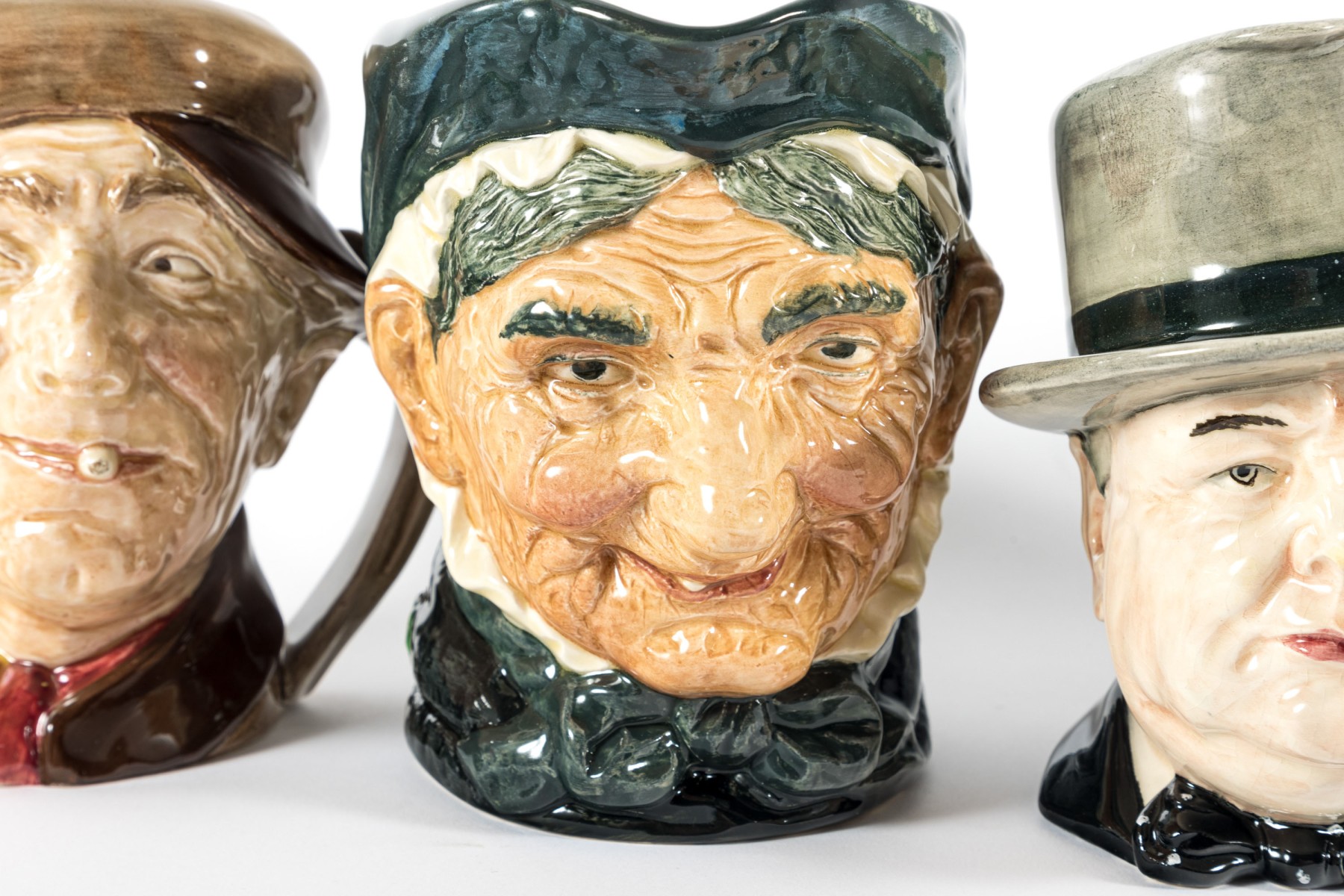 A selection of five vintage hand-painted caricature Toby mugs, each one unique and marked on the underside. Refer to photos for details.