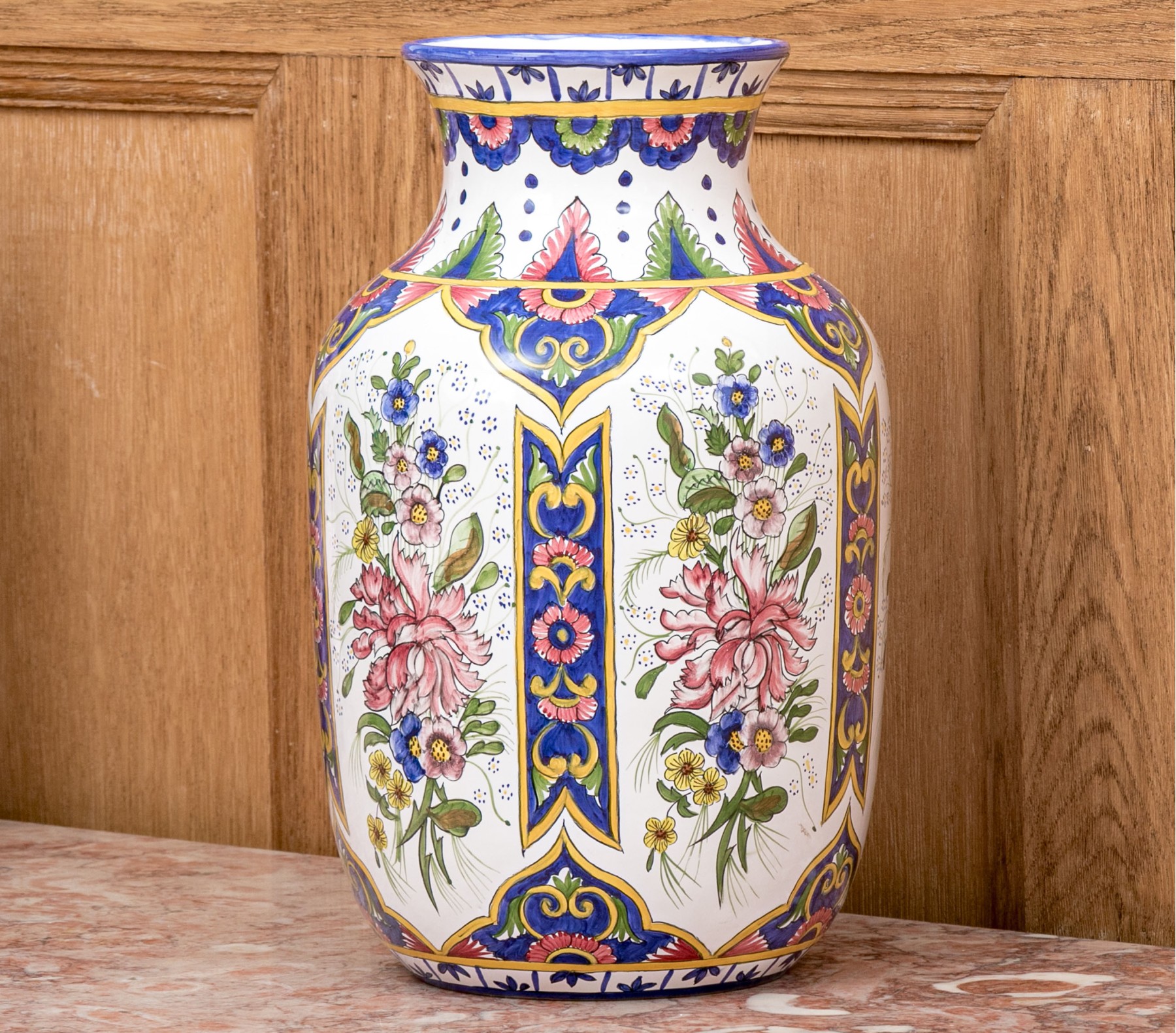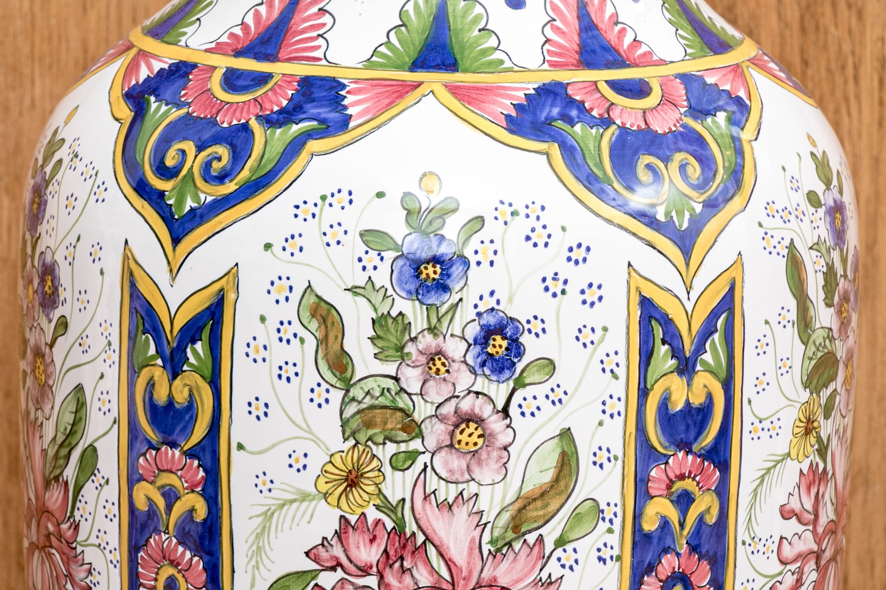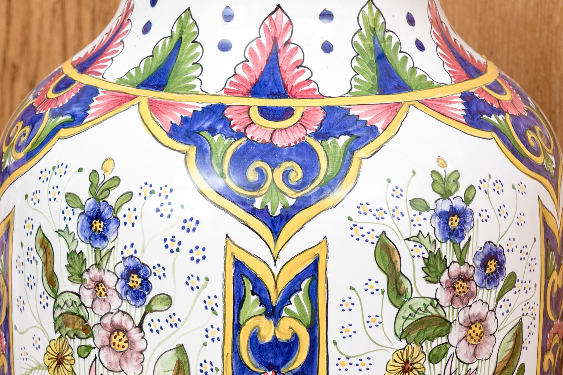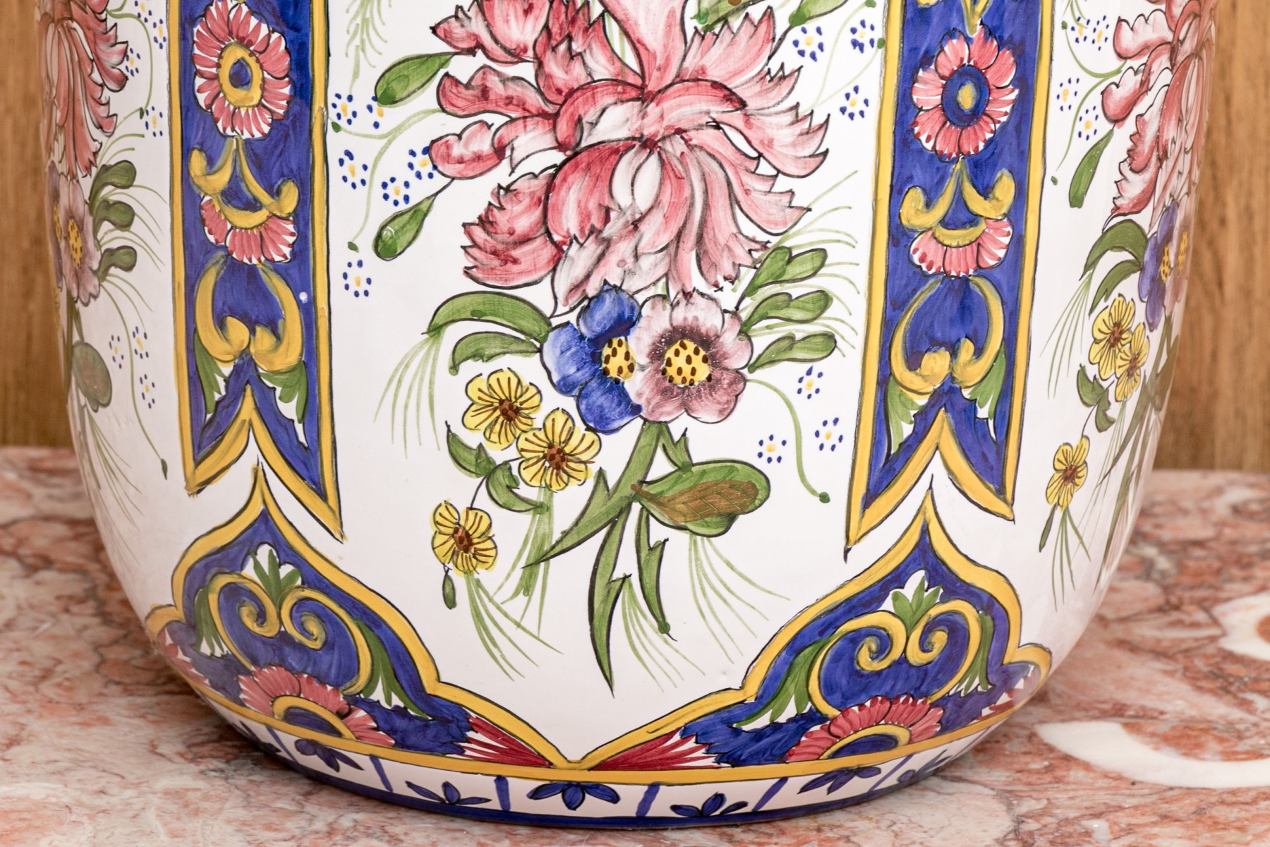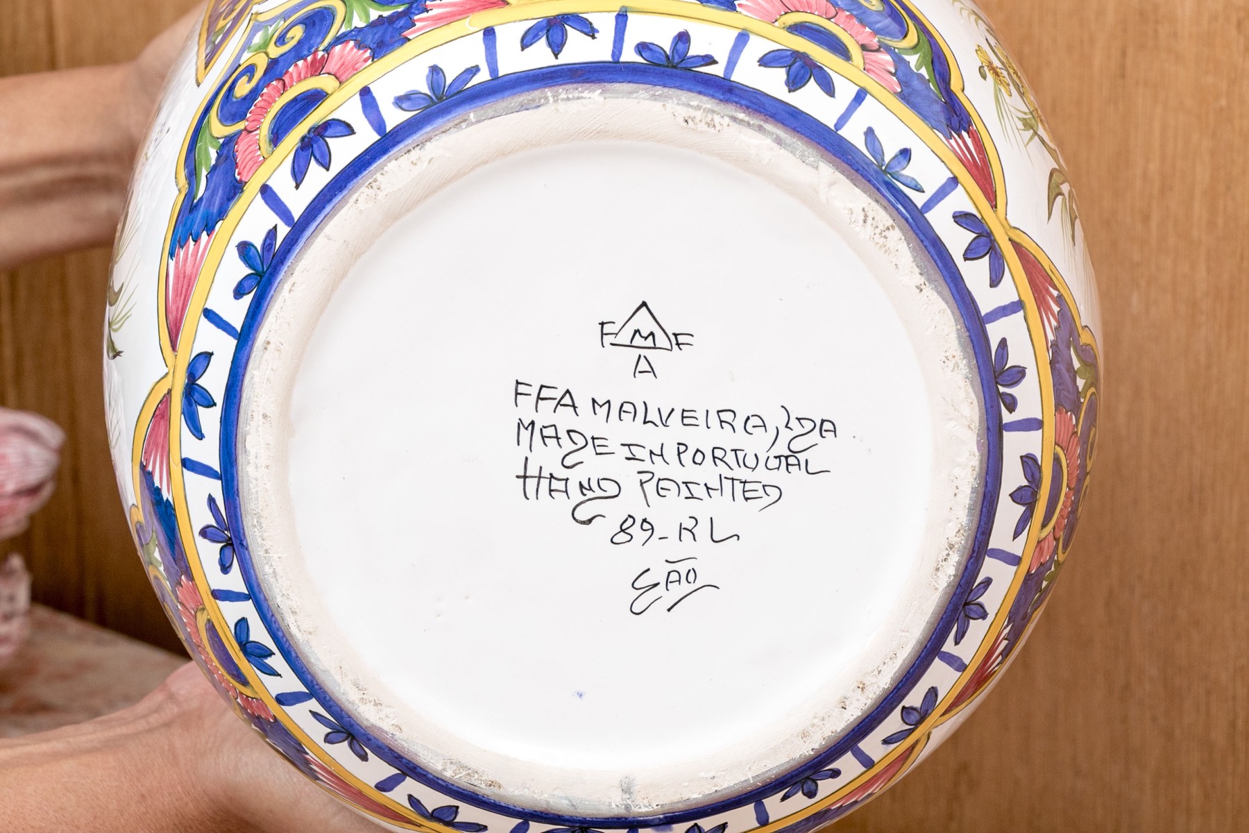 Executed in multi-colored floral pattern. Bottom marked "FMFA Malveira ,Made in Portugal 89-Rl EAO.