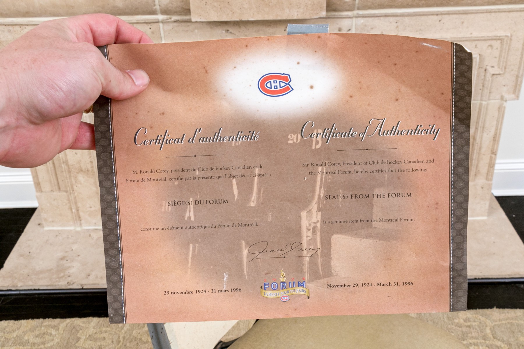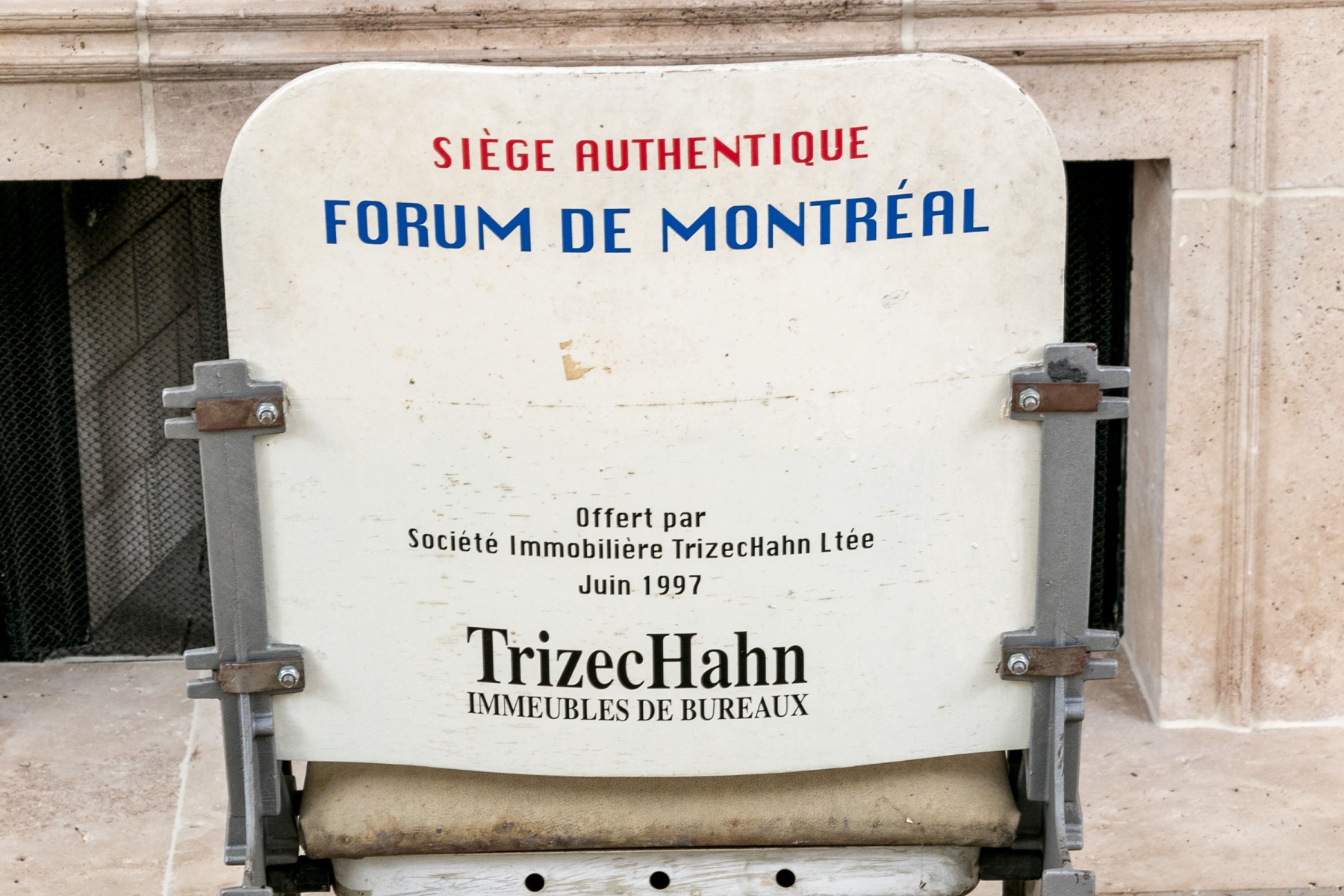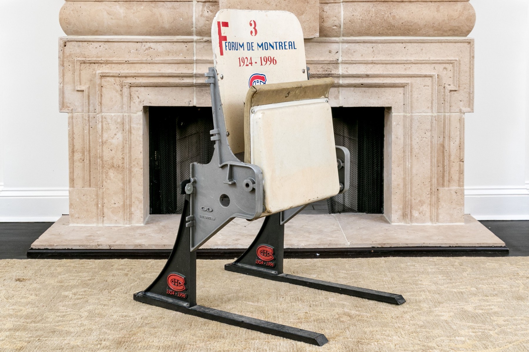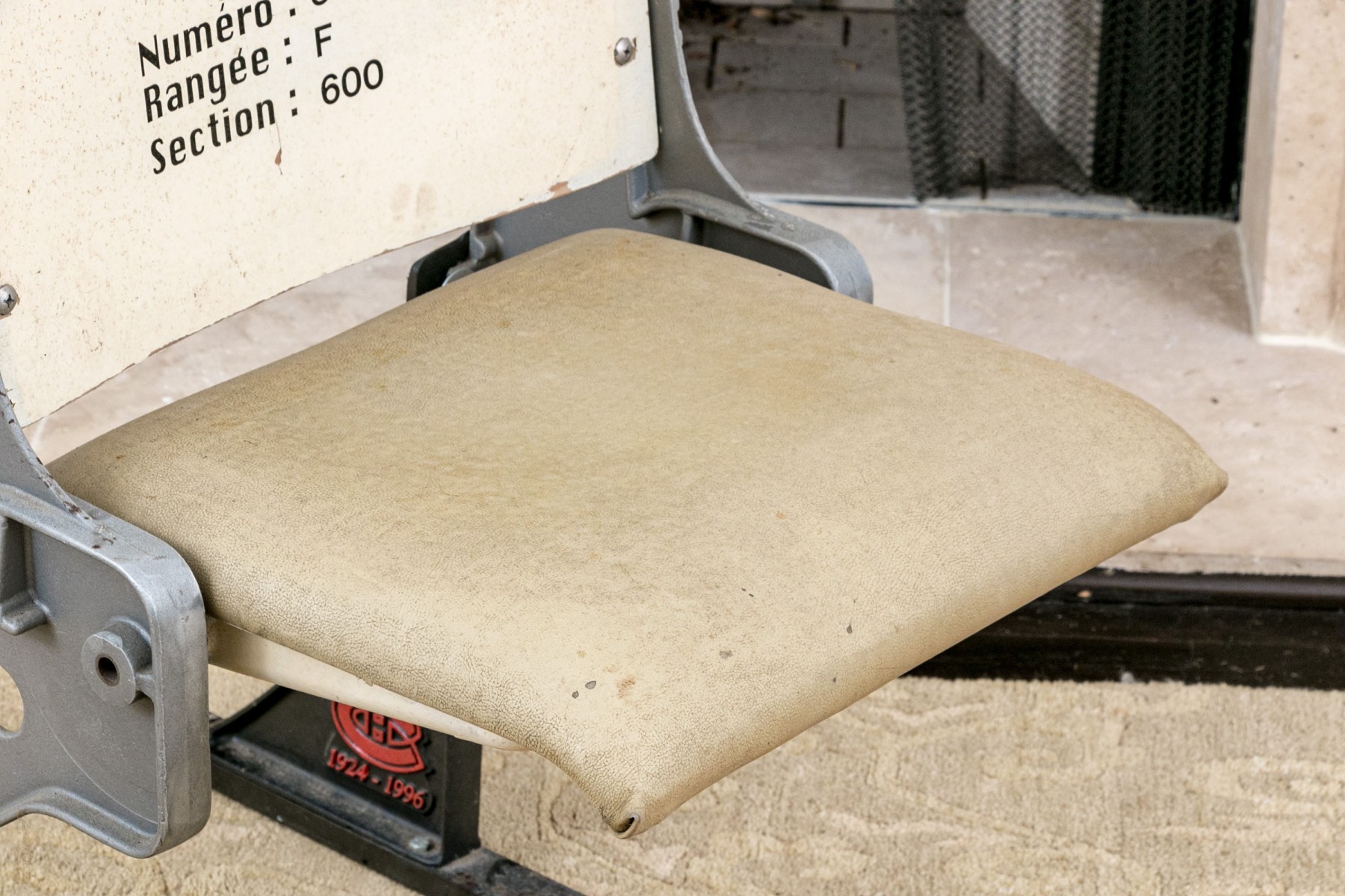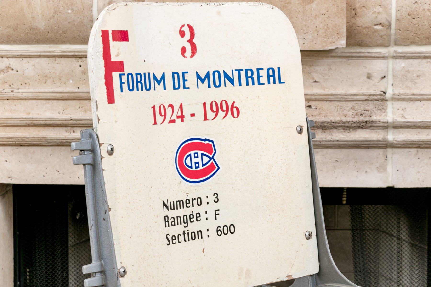 This historic stadium seat from the iconic Forum de Montreal, home to countless memorable events from 1924 to 1996, features its original number, range, and section details: Number 3, Rangee F, Section 600. The seat captures the essence of Montreal's rich sporting history and offers a nostalgic connection to the city's vibrant past. Perfect for collectors and sports enthusiasts alike.