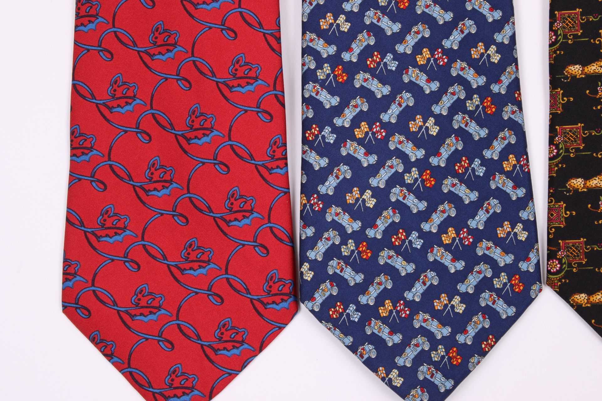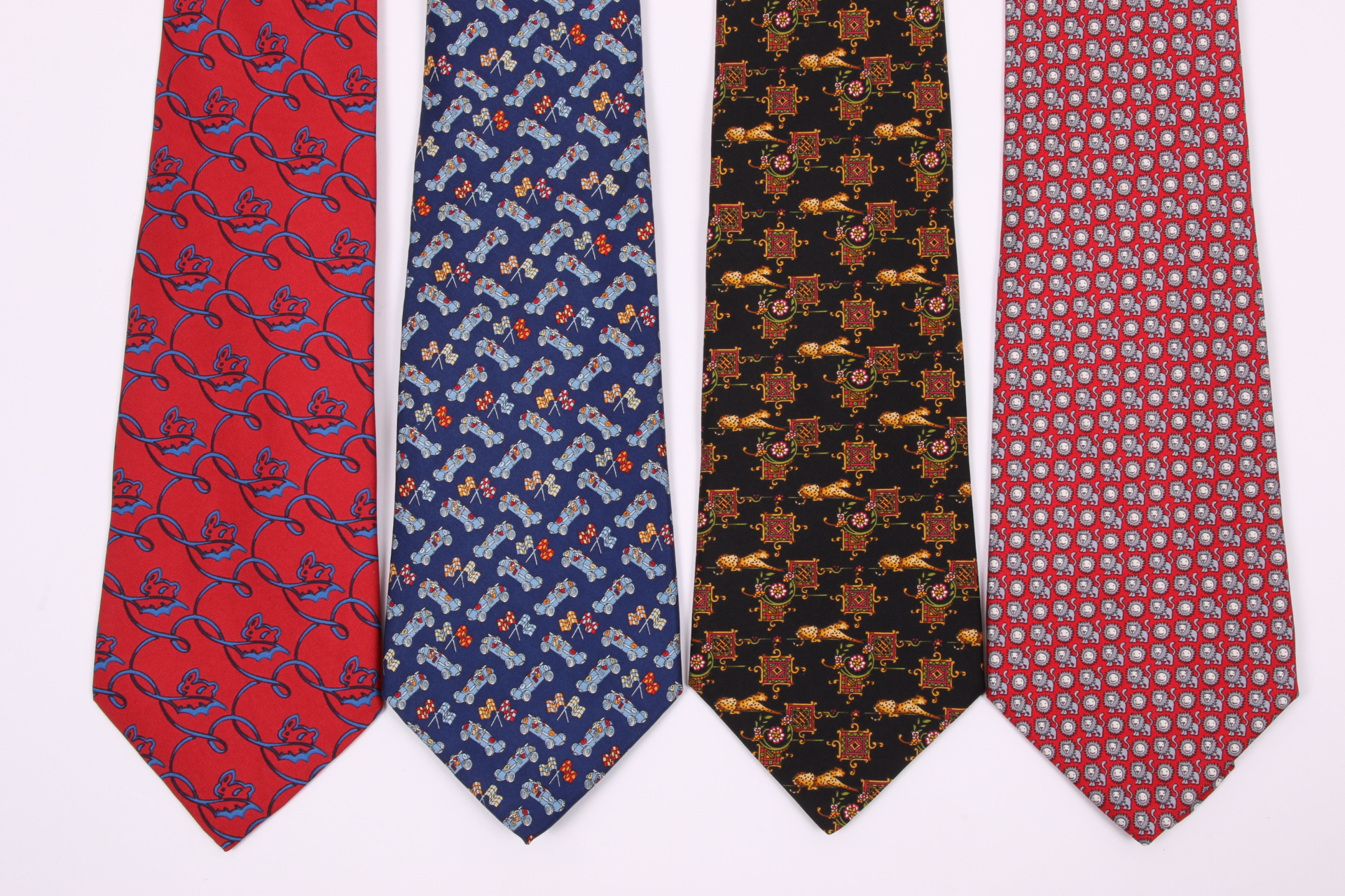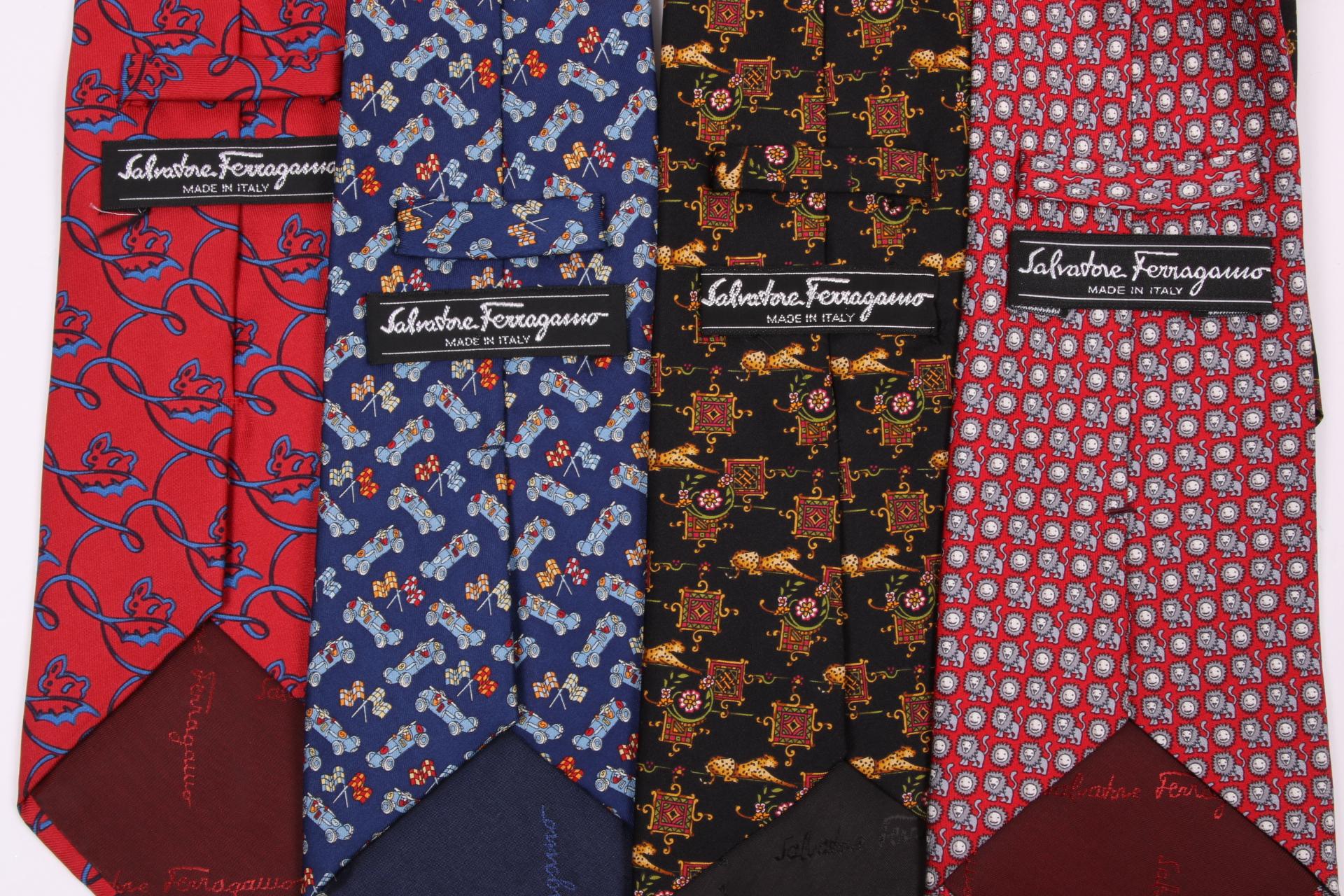 Four Beautiful Salvatore Ferragmo Mens Silk Neck Ties, Made In Italy