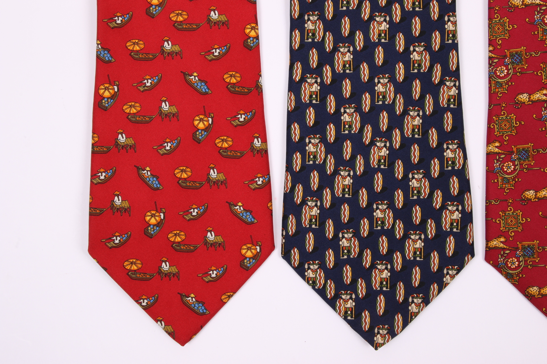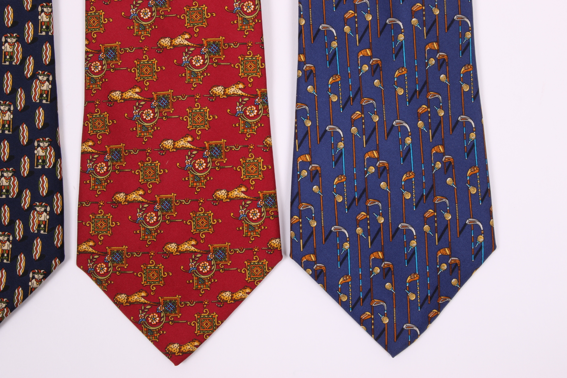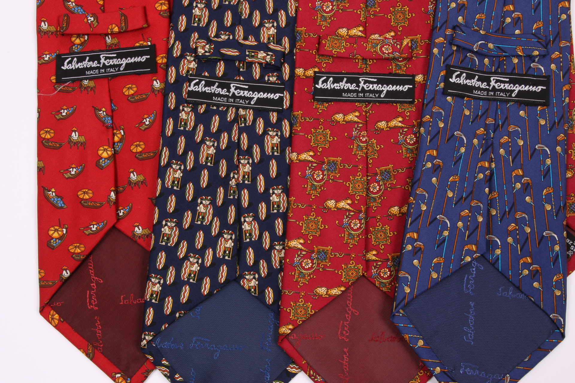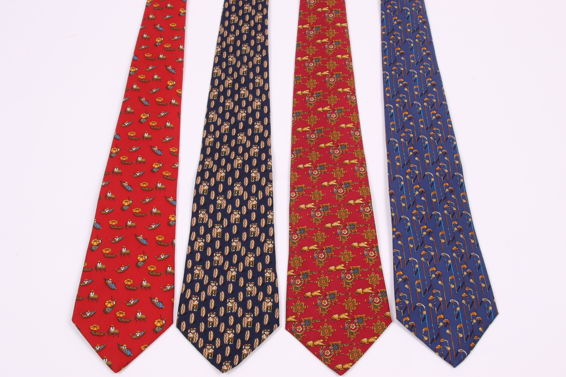 Four Beautiful Salvatore Ferragmo Mens Silk Neck Ties, Made In Italy (golf)