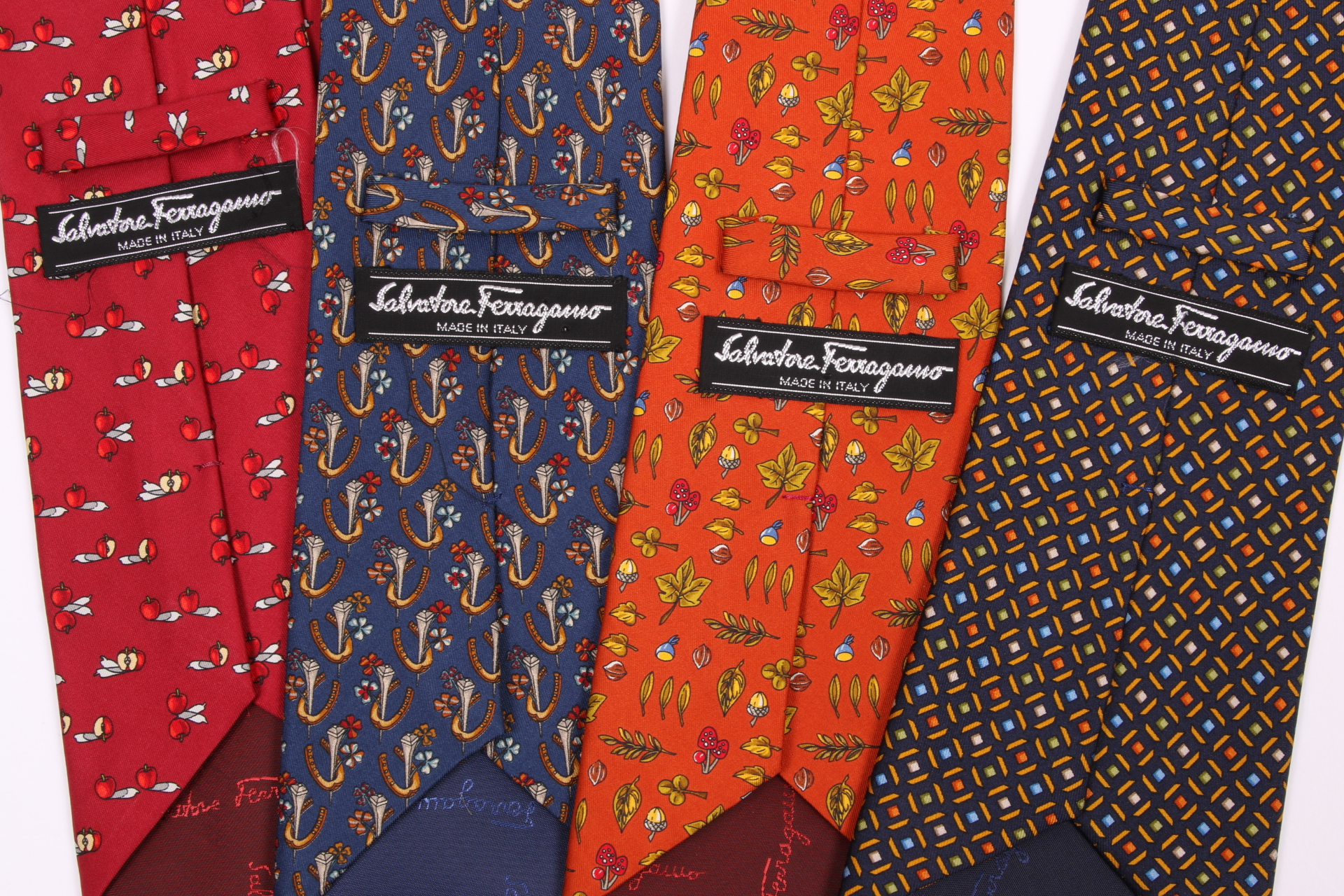 Four Beautiful Salvatore Ferragmo Mens Silk Neck Ties, Made In Italy (Orange)