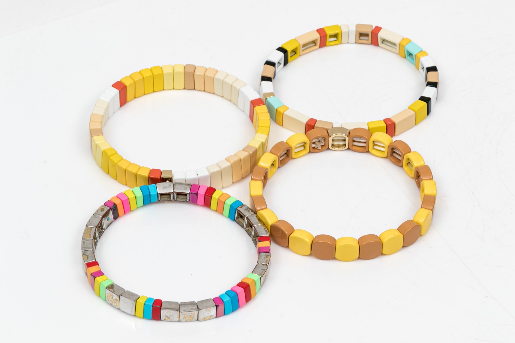 Four colorfully beaded stretch bracelets by Roxanne Assoulin. Retail approximately $240-$350.