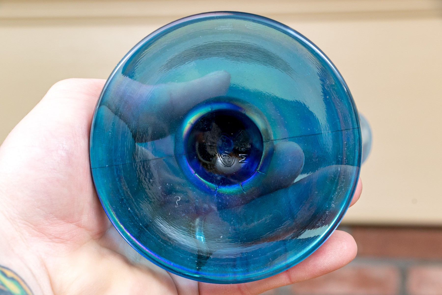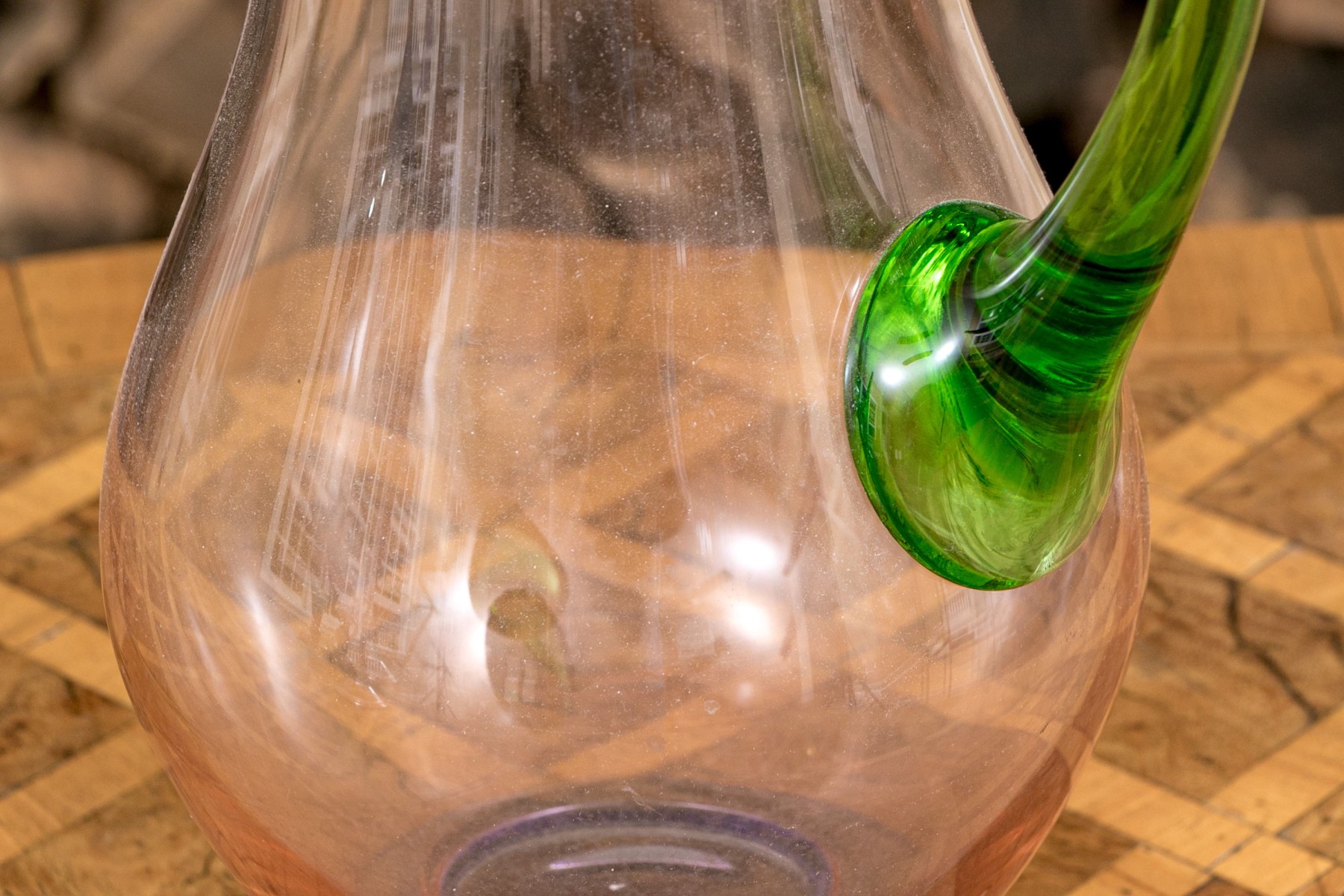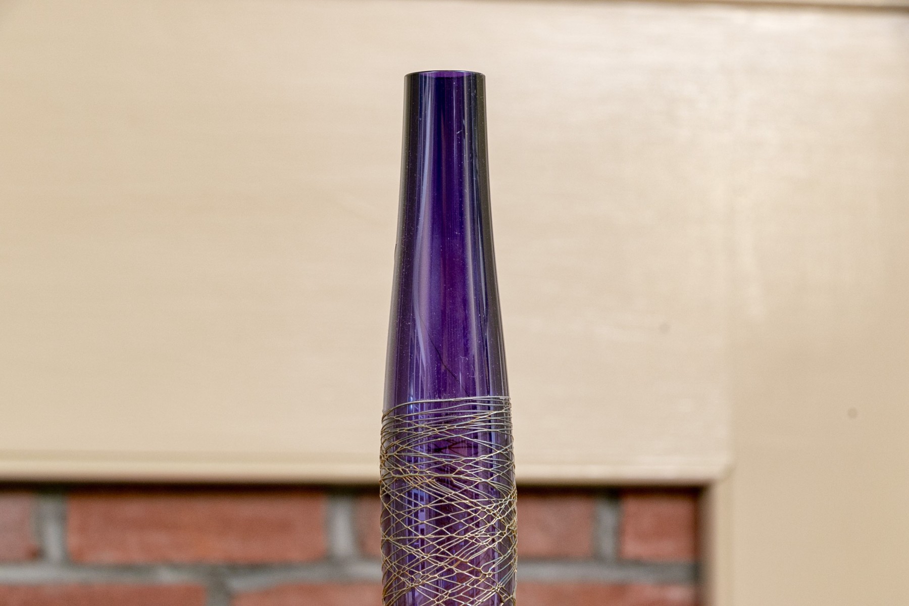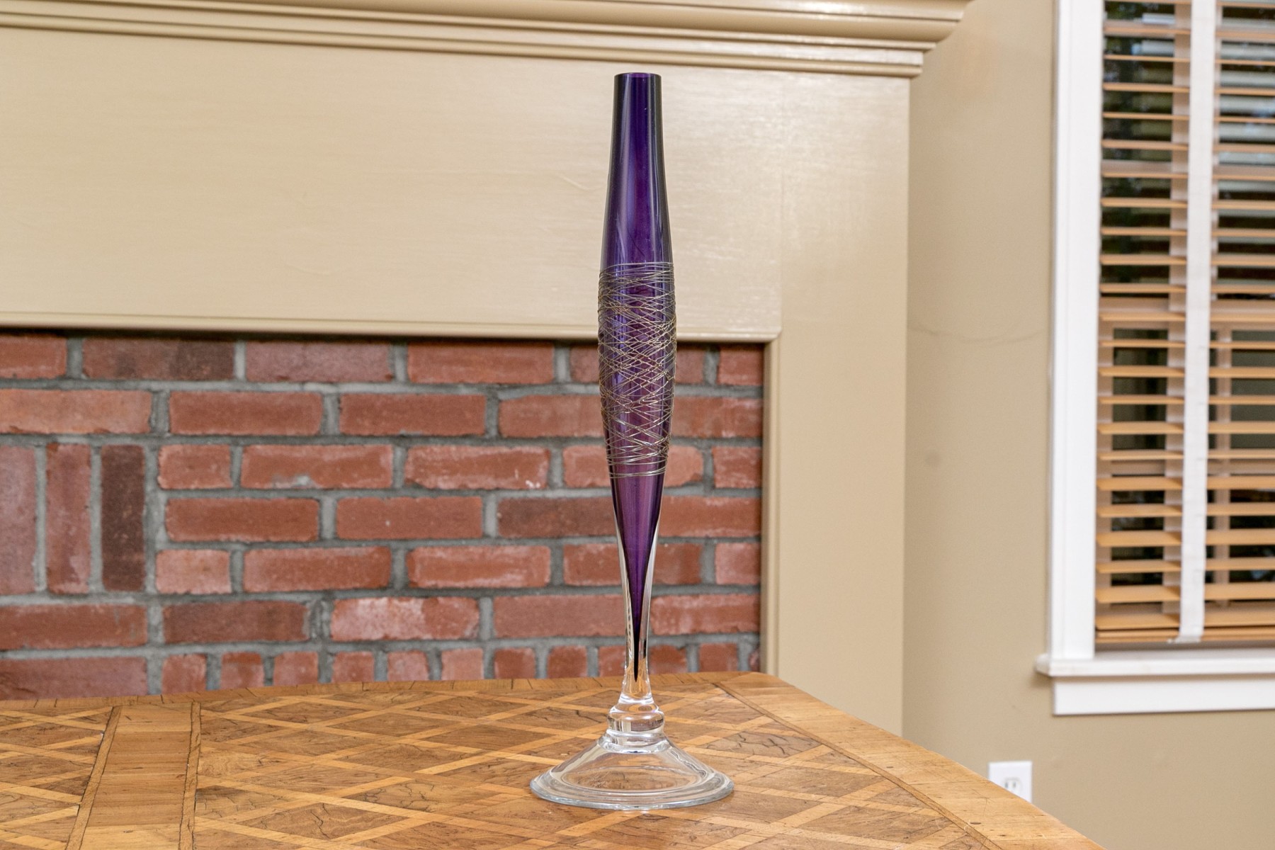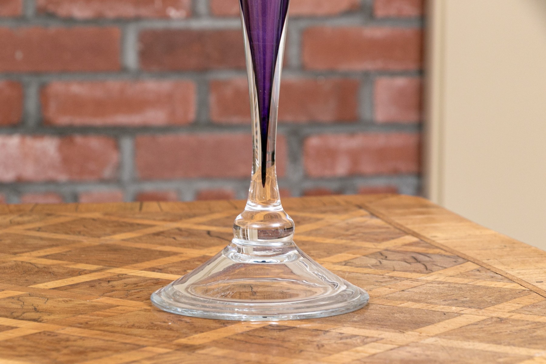 The tall purple vase is signed on the base, 14 1/2” high, pitcher is signed 11” high, blue hand blown vase 5”, stretch glass vintage fan vase 8 1/2”