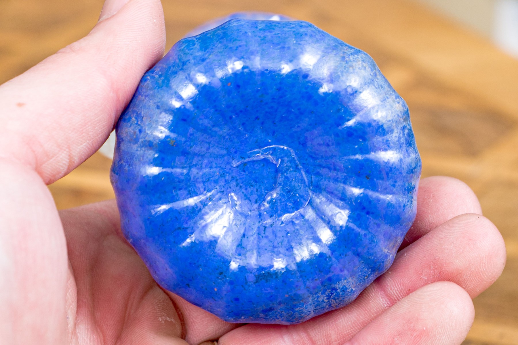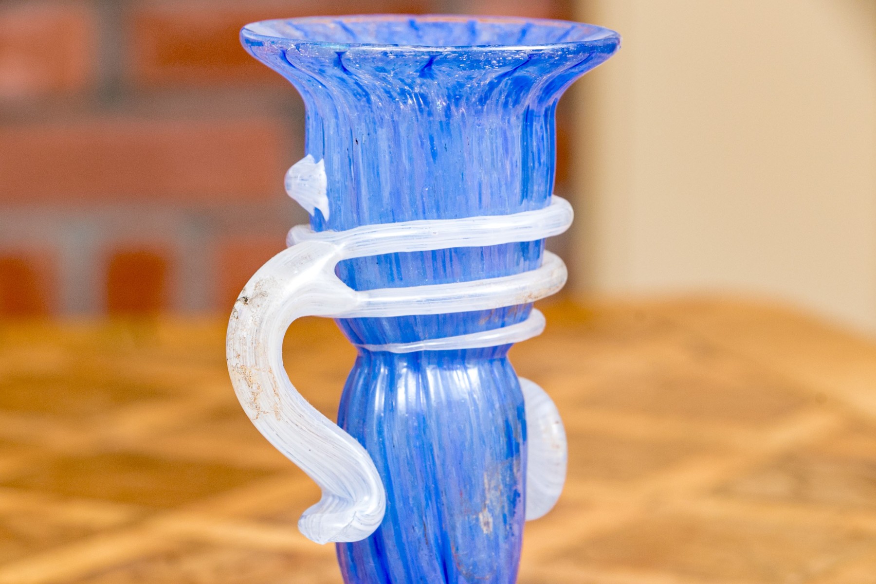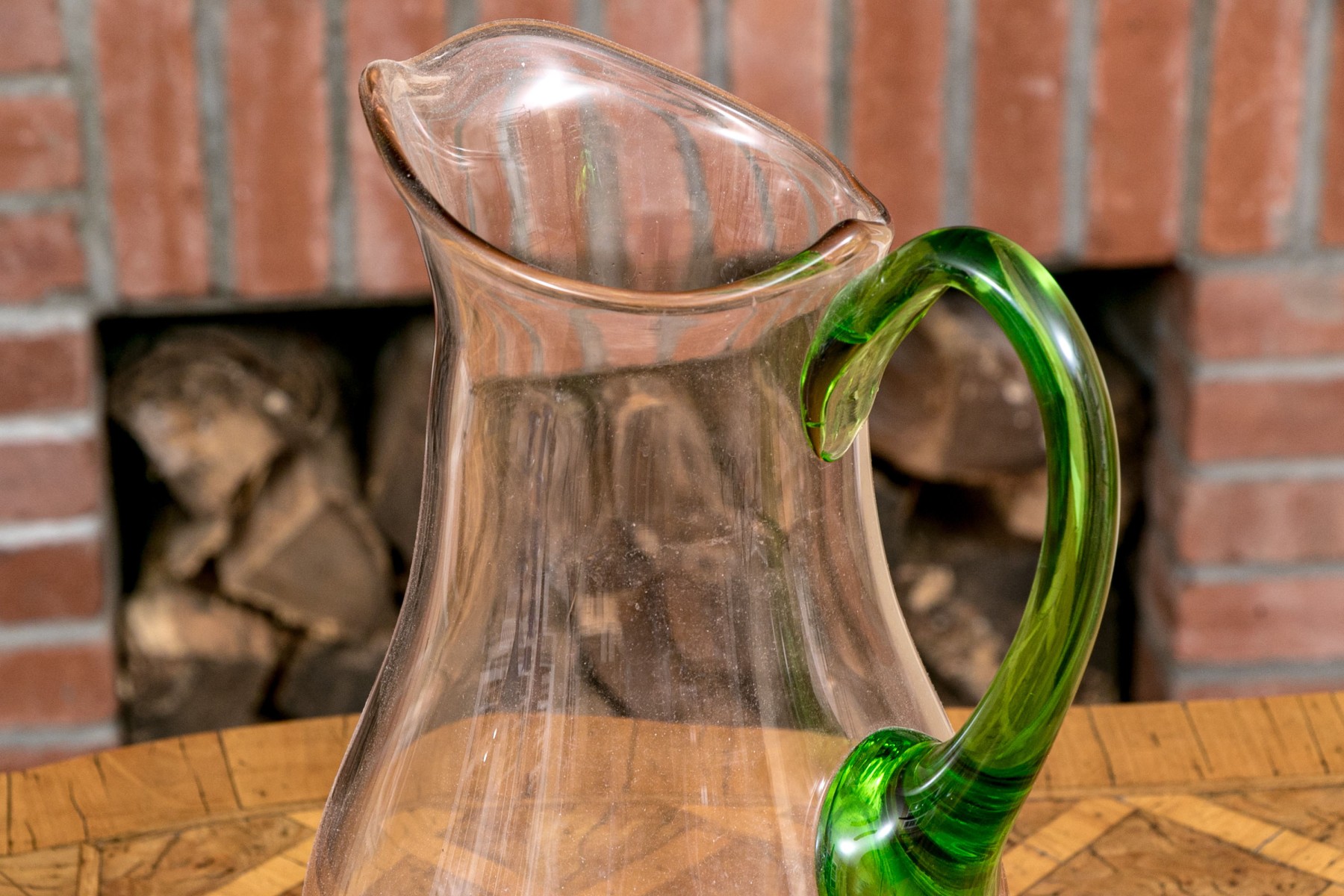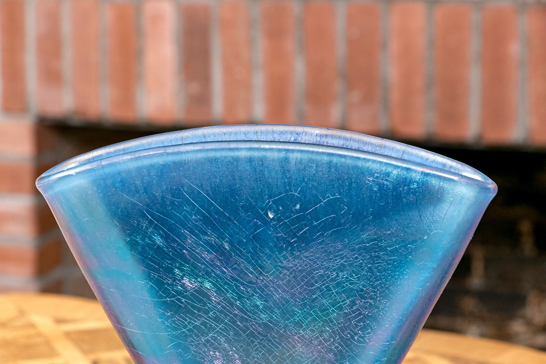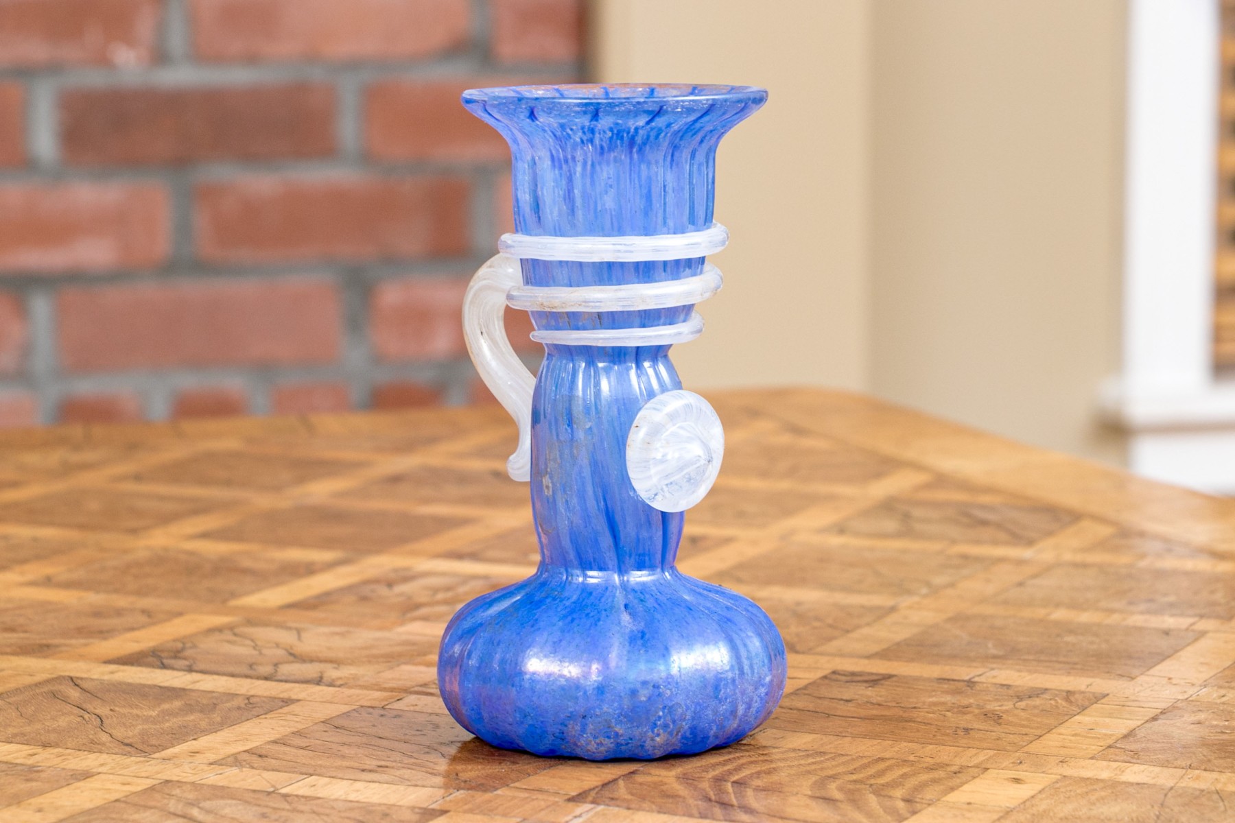 The tall purple vase is signed on the base, 14 1/2” high, pitcher is signed 11” high, blue hand blown vase 5”, stretch glass vintage fan vase 8 1/2”