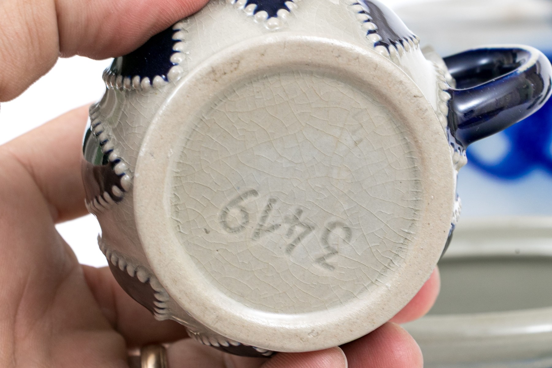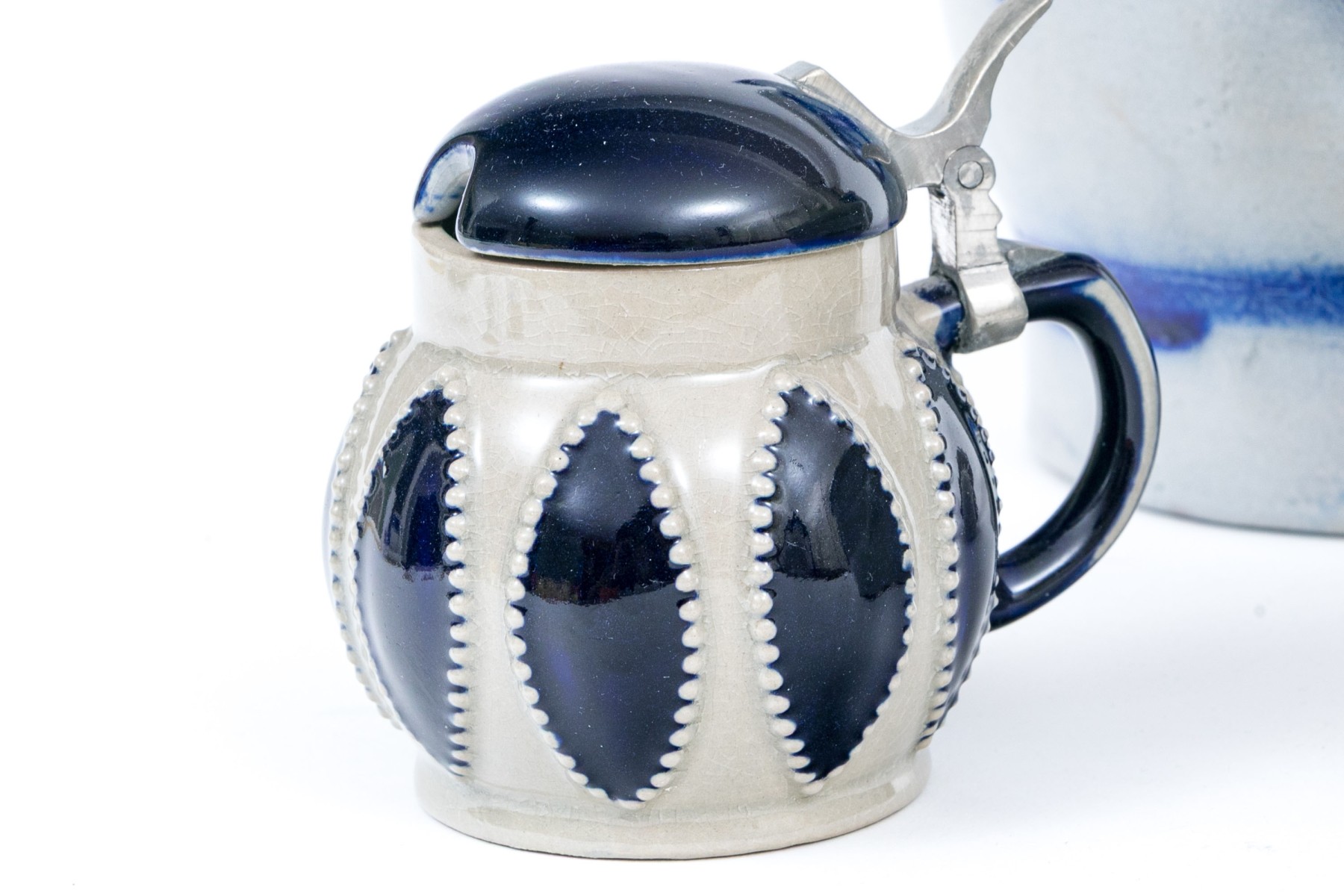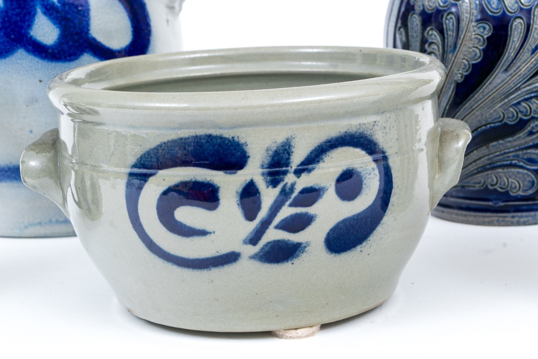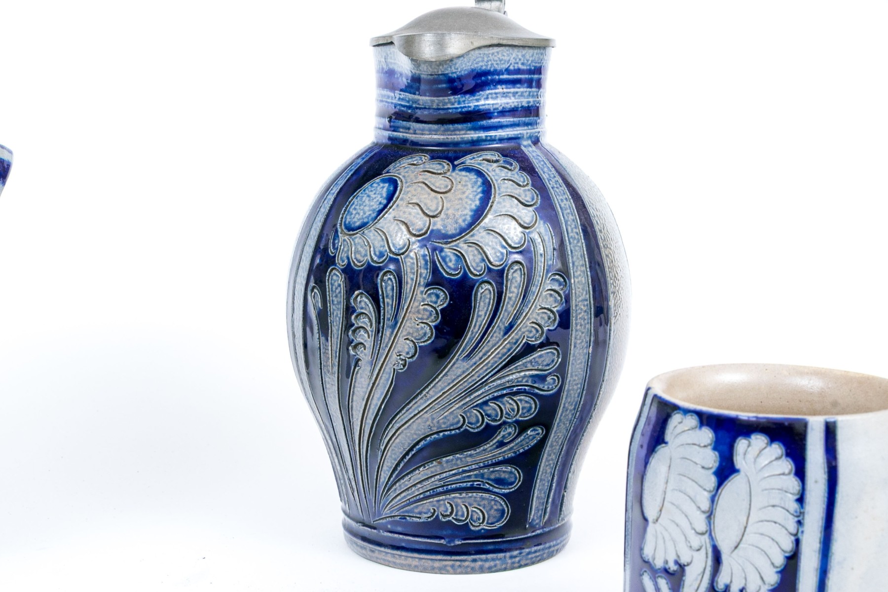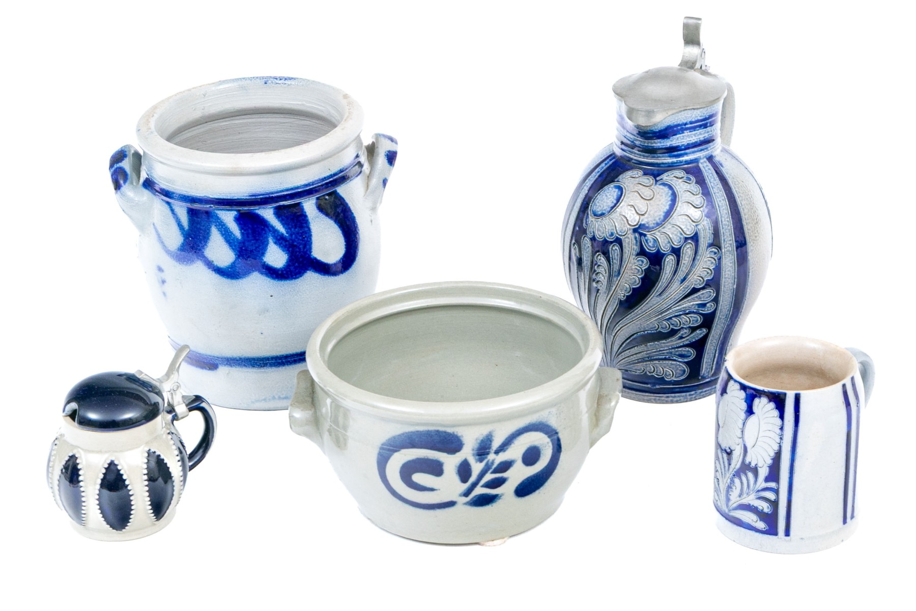 A wonderful collection of vintage Landert pottery comprised of a twin handled jar, twin handled bowl, mug, and lidded ewer.