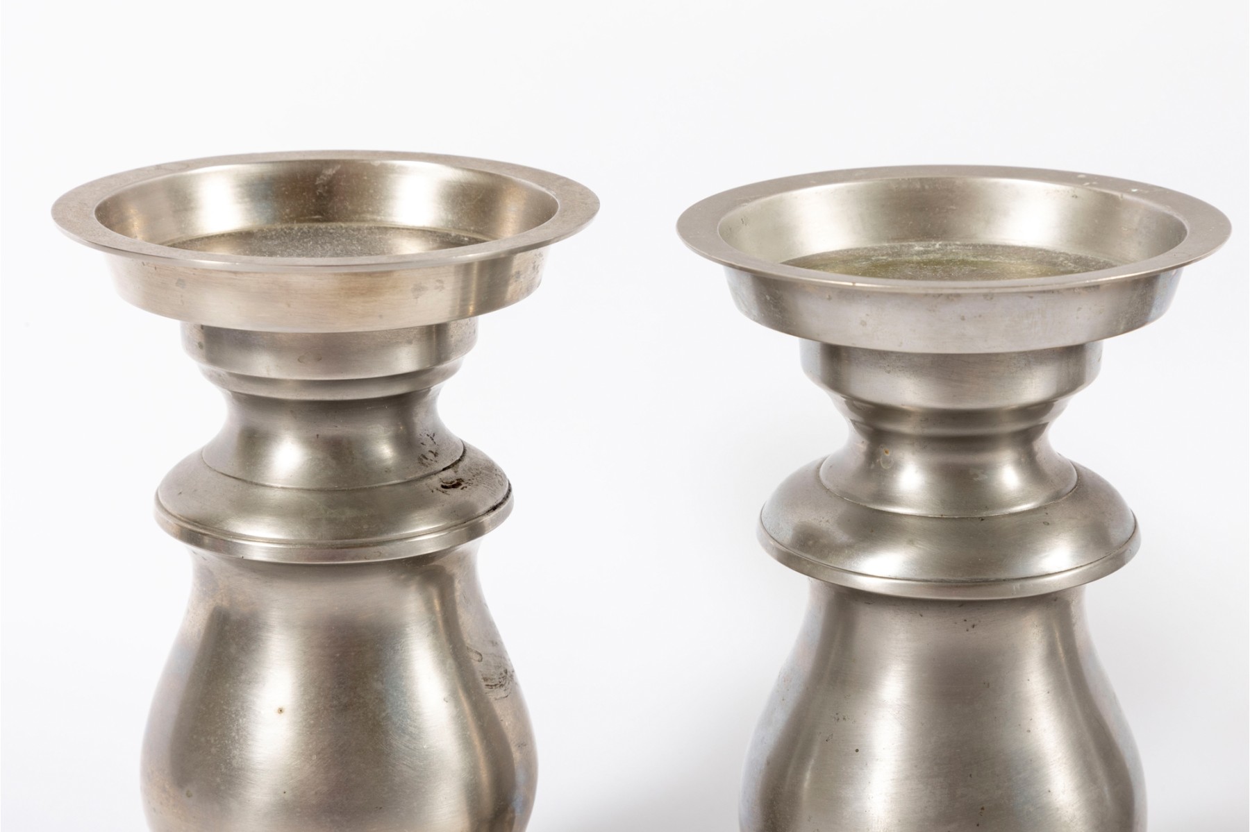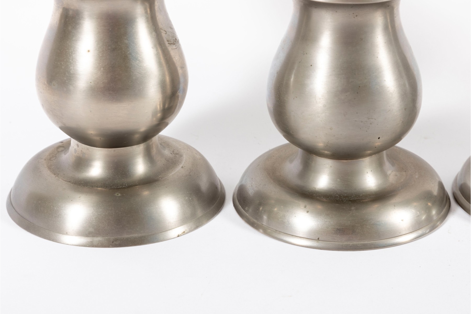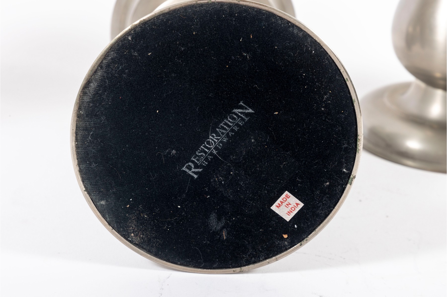 A set of four 7.5" tall bulbous baluster column candlestick holders produced by Restoration Hardware.