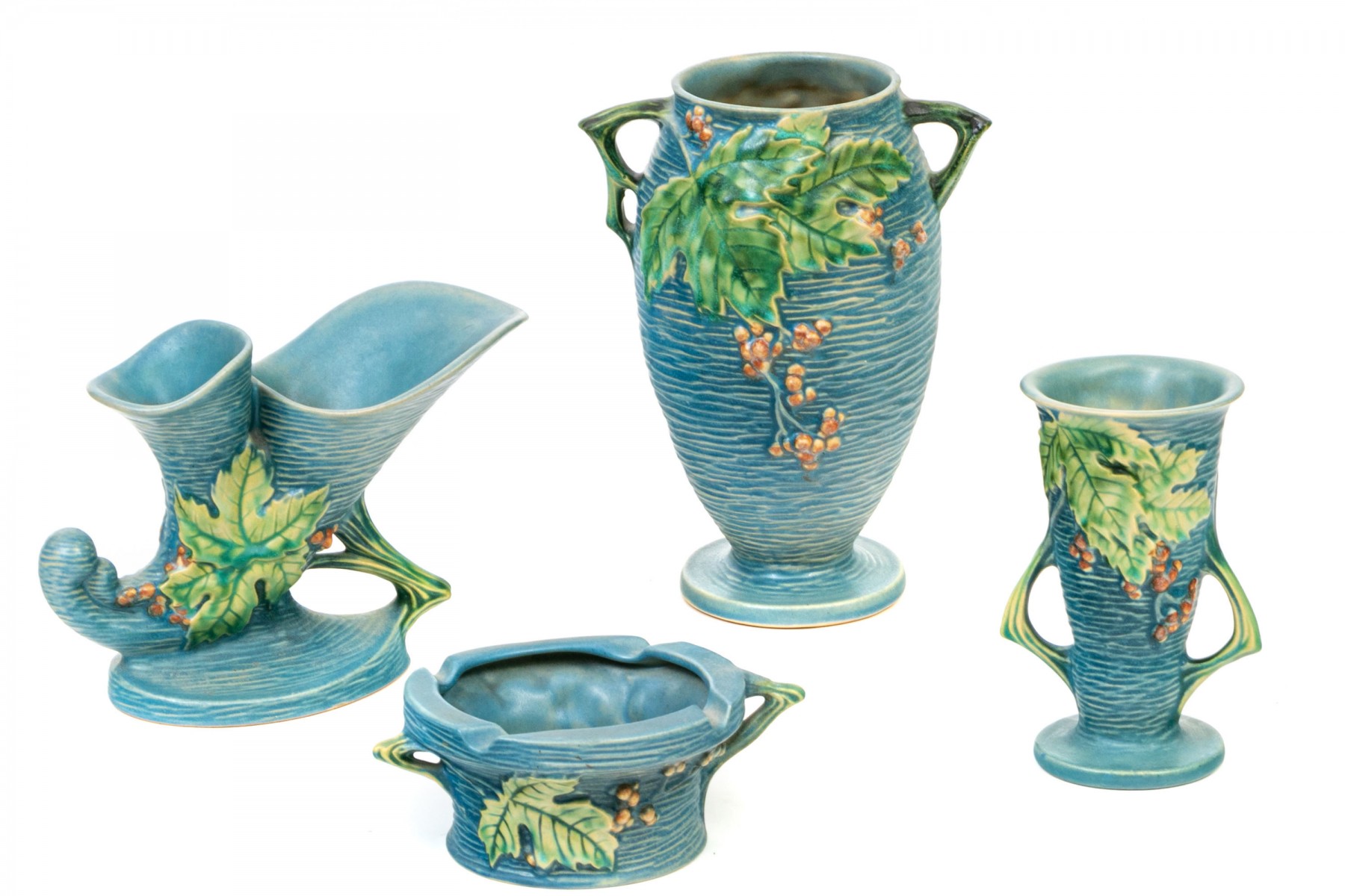 Four Roseville Pottery Bushberry Pottery Vessels #230947. Black Rock Galleries provides high end estate liquidation services through online estate auctions and a 50,000 sq ft designer showroom. estate liquidator, estate sale, online auction, antiques, fine art, liquidation, clean outs, auction, consignment, interior design, fine jewelry, collectibles, appraisals, estate appraisals, estate services, decor, furniture, furniture consignment, antique center, consignment shop. We offer appraisal services and specialize in fine art, jewelry, antiques and decorative arts. Sell with us. Black Rock Galleries is the tri-state's largest estate liquidator serving New England and the greater New York City area. We are the trusted source for expert appraisals, auction services, estate sales, and consignments. Black Rock Galleries is the east coast's largest and most trusted estate liquidator, with locations in Connecticut, greater Boston, MA and Raleigh, NC, Fairfield, Southport, Apex, TX. We are the best source for expert appraisals, auction services, estate sales and consignments. We have served thousands of families and estates with compassion, professionalism and expertise. BRG works with attorneys, executors, realtors and families to bring the greatest return on personal and estate property in the current market. Our unique combination of services make us the easy choice to get the job done in a timely and stress-free manner. We are with you from the initial consultation to the final clean out. Our house-built online auction software platform offers clients a dynamic approach to liquidating their personal property. This venue is most successful in bringing the best return with the least amount of disruption for our clients. See our services page for a complete description of this offering. Four Roseville Pottery Bushberry Pottery Vessels #230947
