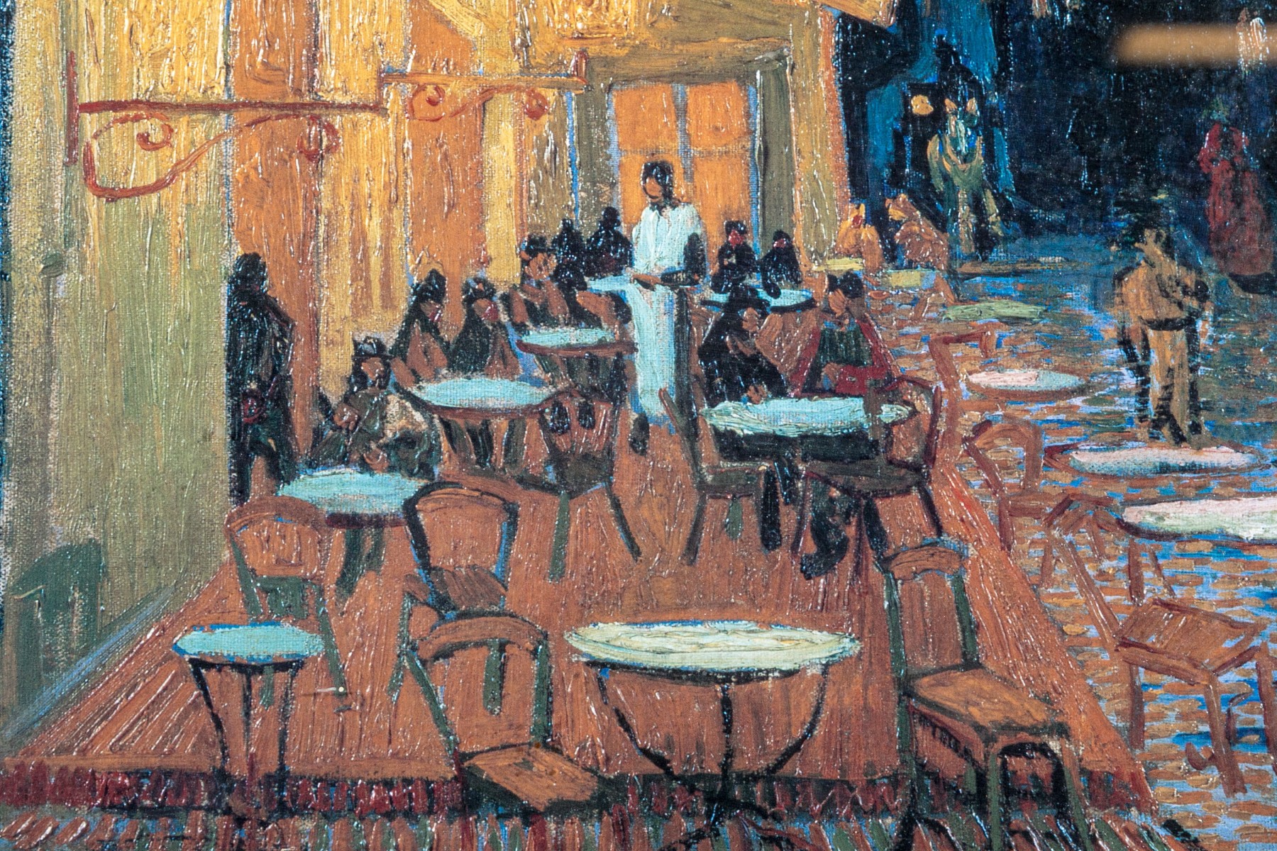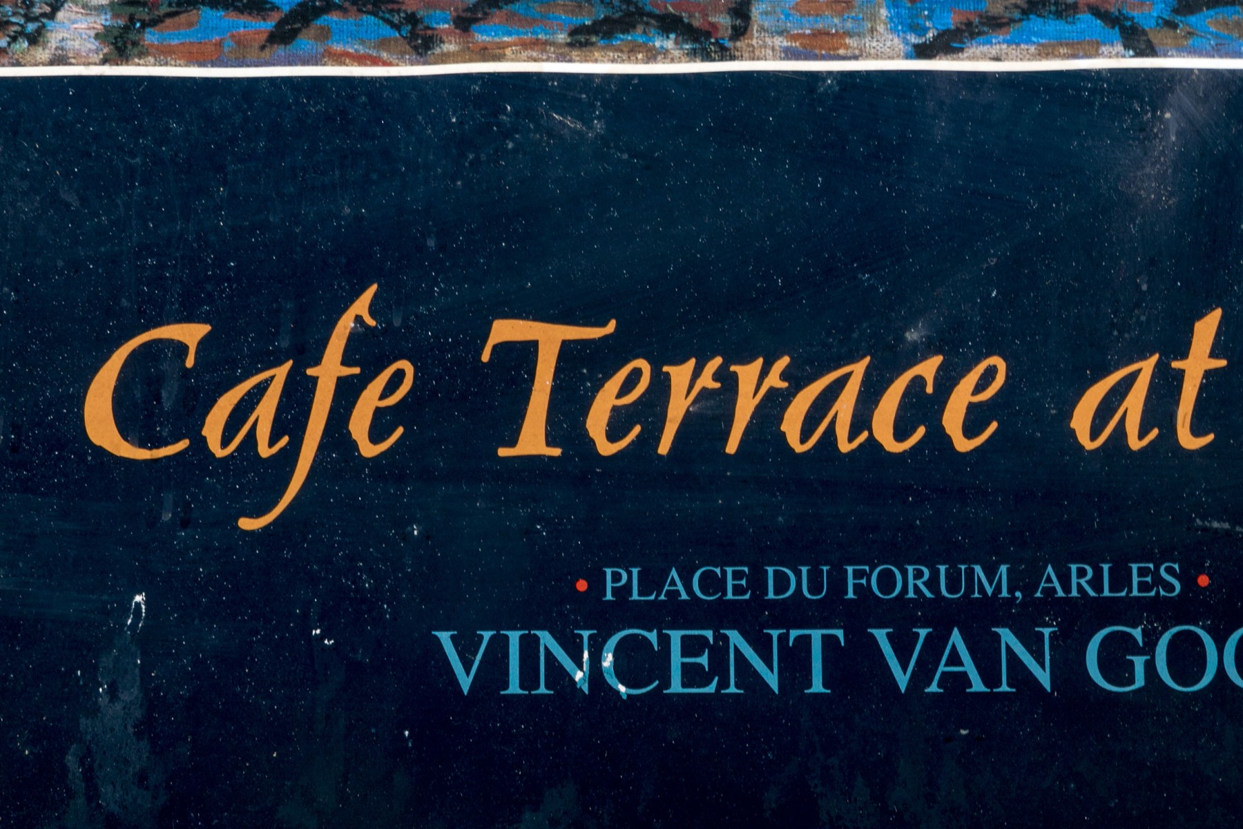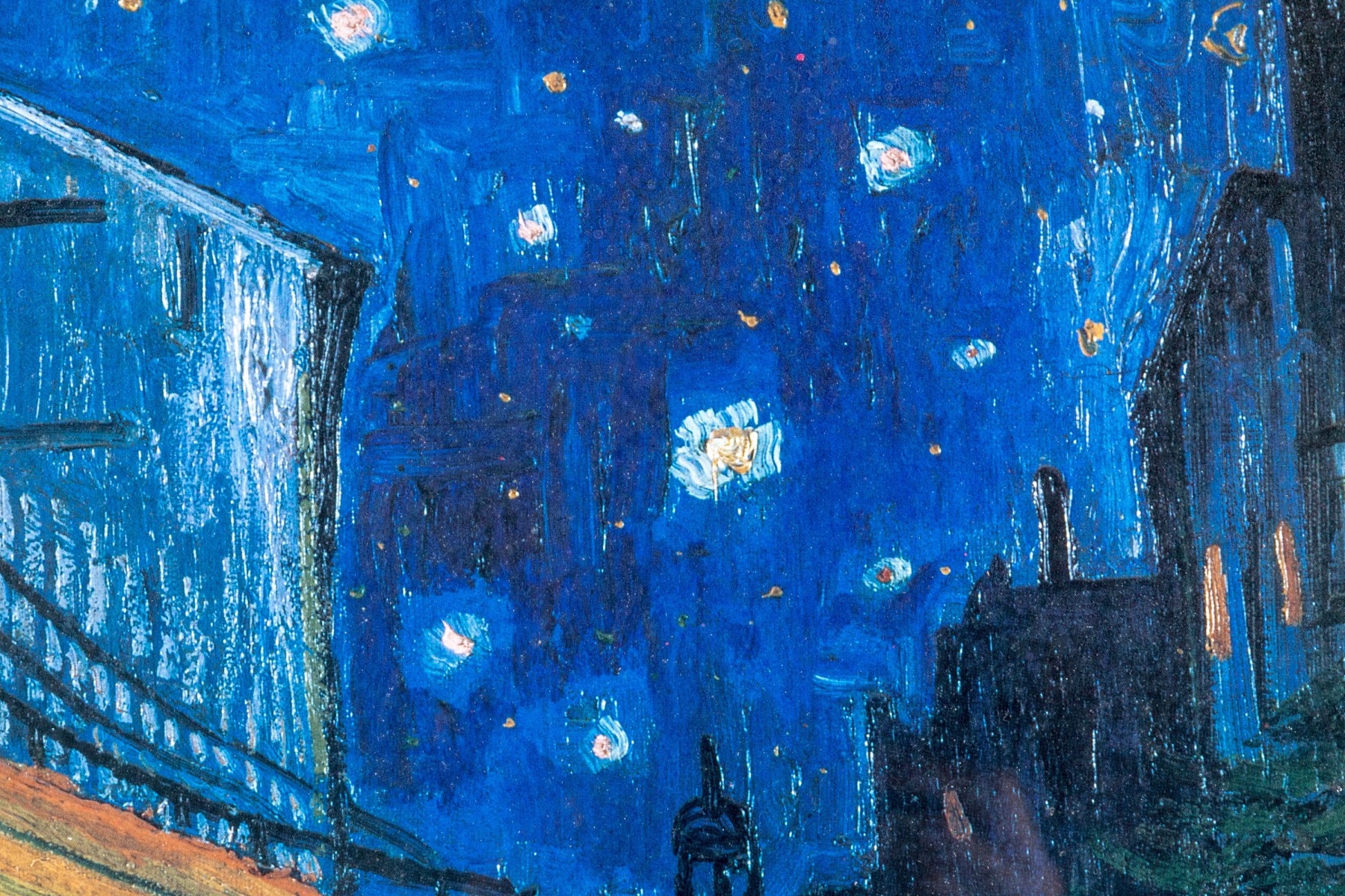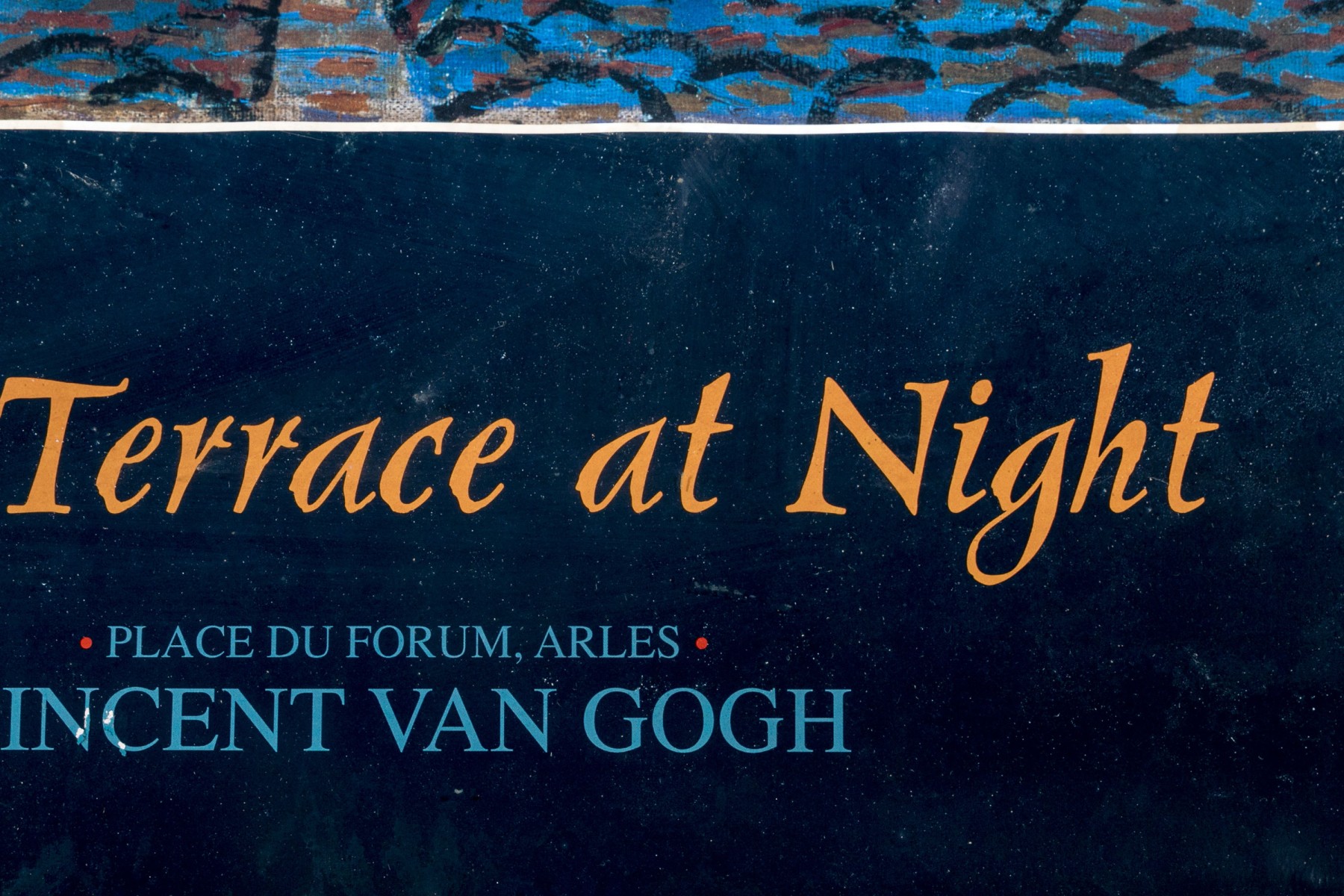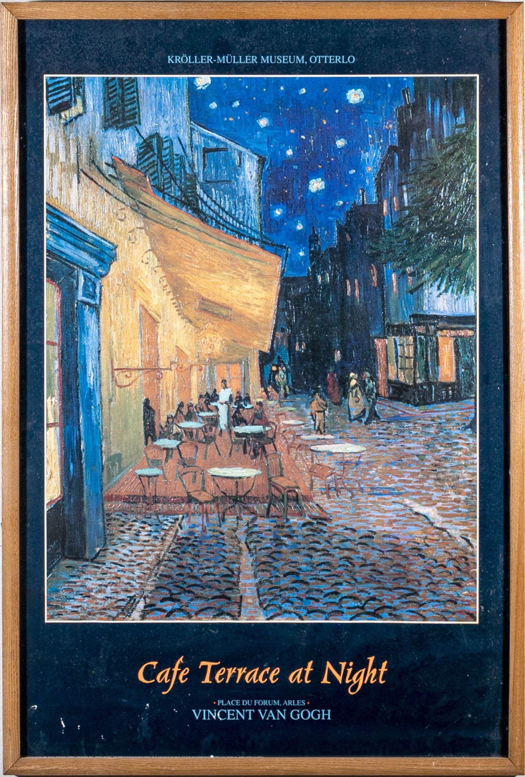 Featuring the lovely image of the golden tone cafe in Arles under the stars. Presented in a wood frame with glass.