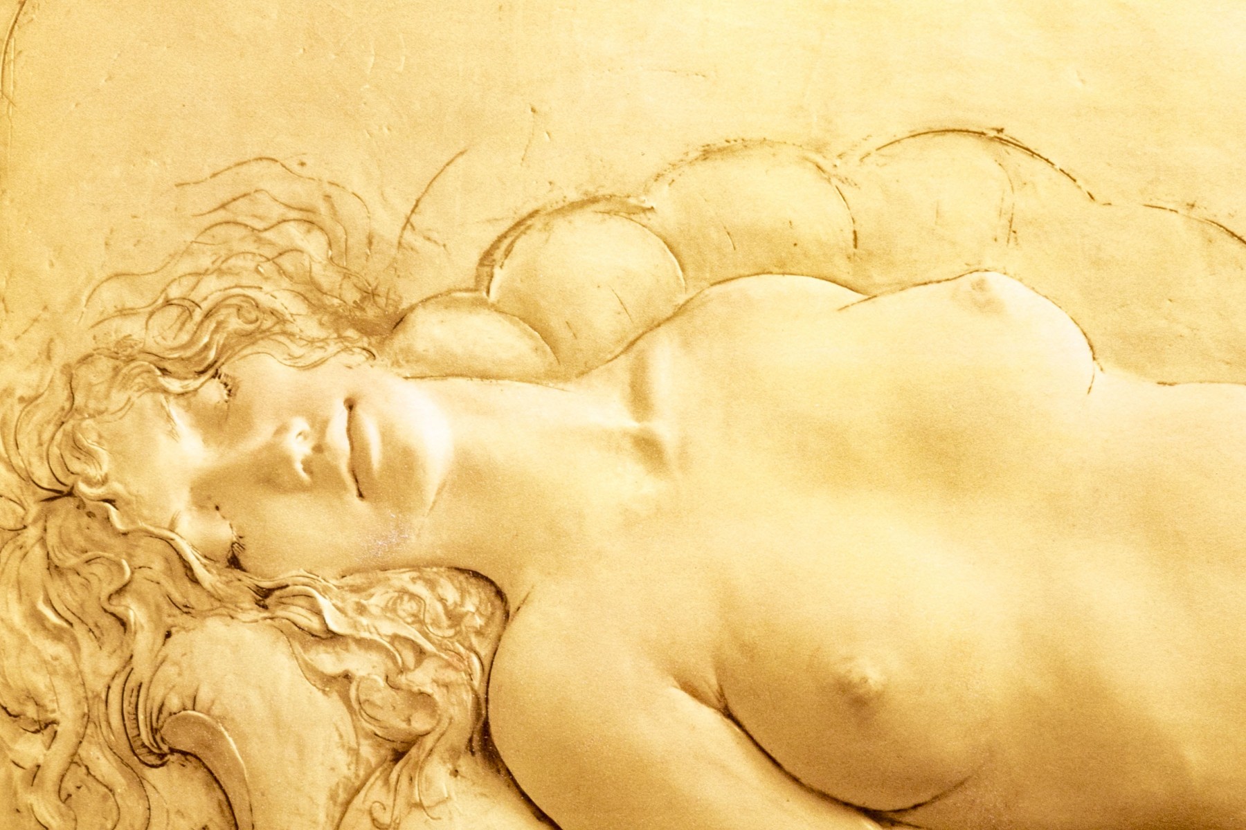 Frank Gallo (born 1933) Pencil Signed Lithograph - "The Faint" - Depicting a reclining nude female, this pencil signed lithograph by the American artist Frank Gallo is numbered 12/300 and bears the artist's signature in pencil in the lower right corner. The signature is also visible within the print in the bottom left corner. Artwork, unframed.
