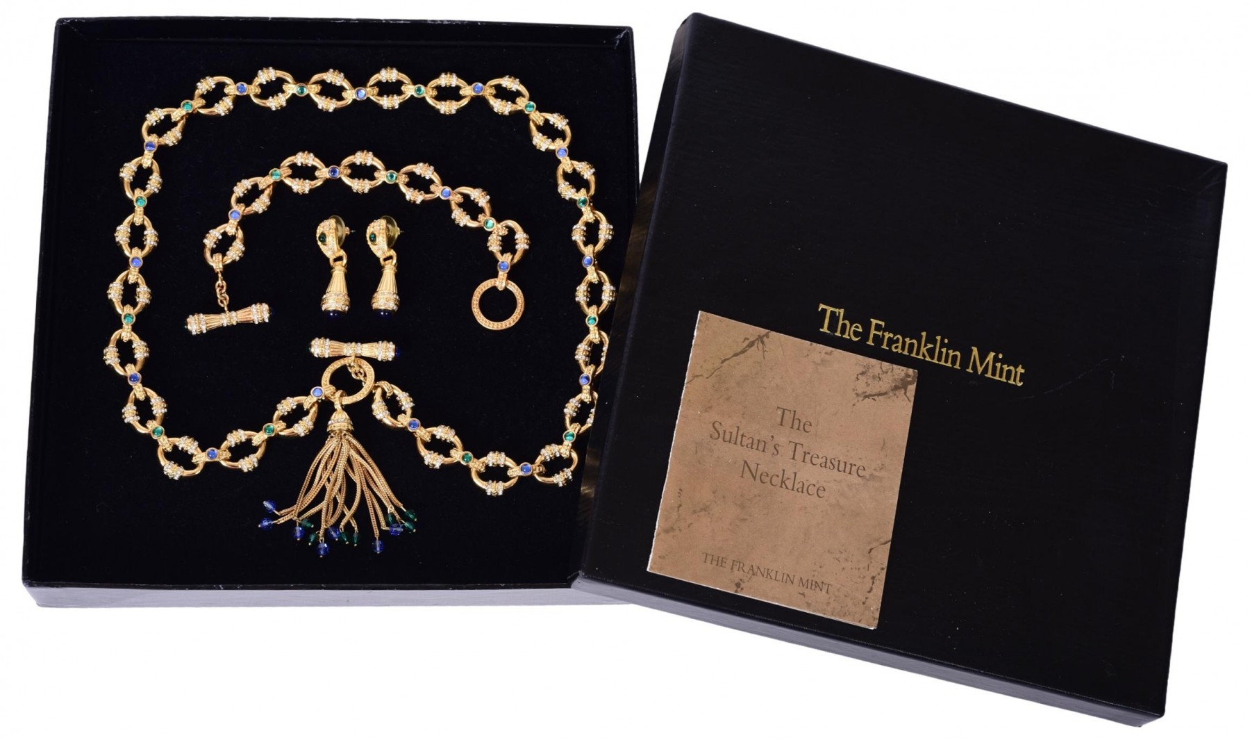 Franklin Mint The Sultan's Treasure 22K Gold Plated Necklace, Bracelet And Earrings Set #296607. Black Rock Galleries provides high end estate liquidation services through online estate auctions and a 50,000 sq ft designer showroom. estate liquidator, estate sale, online auction, antiques, fine art, liquidation, clean outs, auction, consignment, interior design, fine jewelry, collectibles, appraisals, estate appraisals, estate services, decor, furniture, furniture consignment, antique center, consignment shop. We offer appraisal services and specialize in fine art, jewelry, antiques and decorative arts. Sell with us. Black Rock Galleries is the tri-state's largest estate liquidator serving New England and the greater New York City area. We are the trusted source for expert appraisals, auction services, estate sales, and consignments. Black Rock Galleries is the east coast's largest and most trusted estate liquidator, with locations in Connecticut, greater Boston, MA and Raleigh, NC, Fairfield, Southport, Apex, TX. We are the best source for expert appraisals, auction services, estate sales and consignments. We have served thousands of families and estates with compassion, professionalism and expertise. BRG works with attorneys, executors, realtors and families to bring the greatest return on personal and estate property in the current market. Our unique combination of services make us the easy choice to get the job done in a timely and stress-free manner. We are with you from the initial consultation to the final clean out. Our house-built online auction software platform offers clients a dynamic approach to liquidating their personal property. This venue is most successful in bringing the best return with the least amount of disruption for our clients. See our services page for a complete description of this offering. Franklin Mint The Sultan's Treasure 22K Gold Plated Necklace, Bracelet And Earrings Set #296607