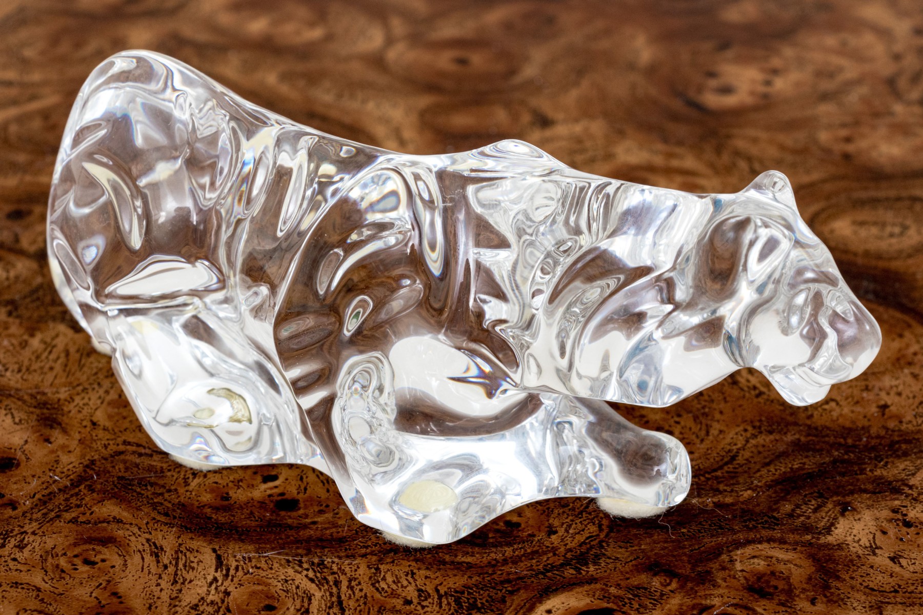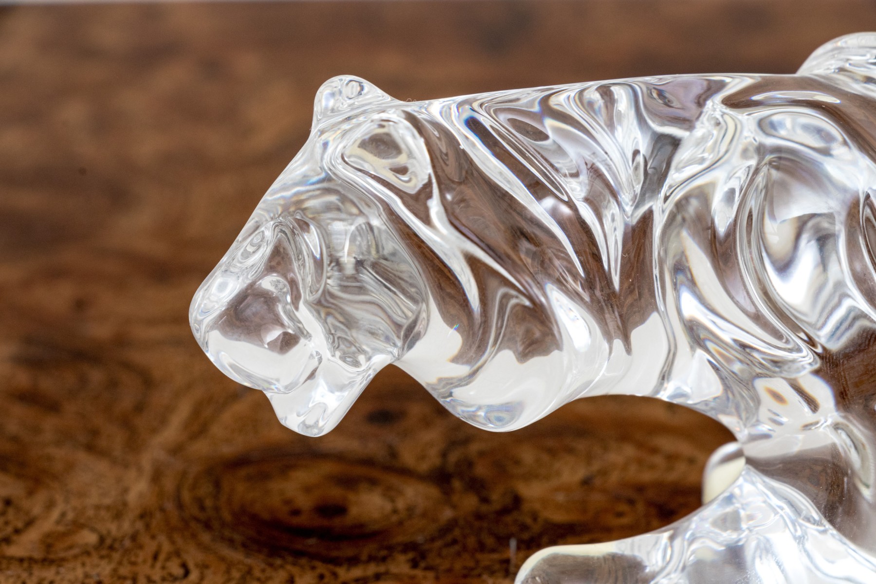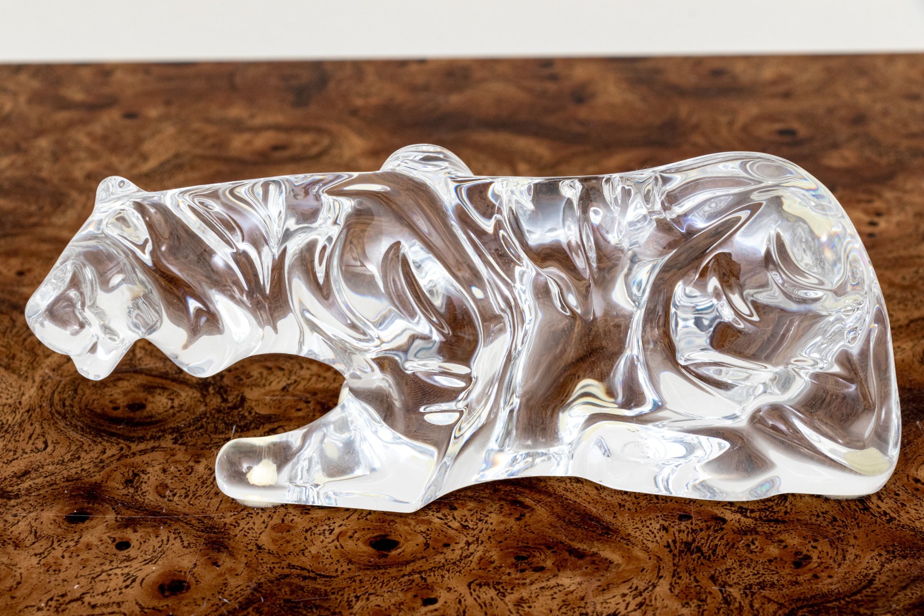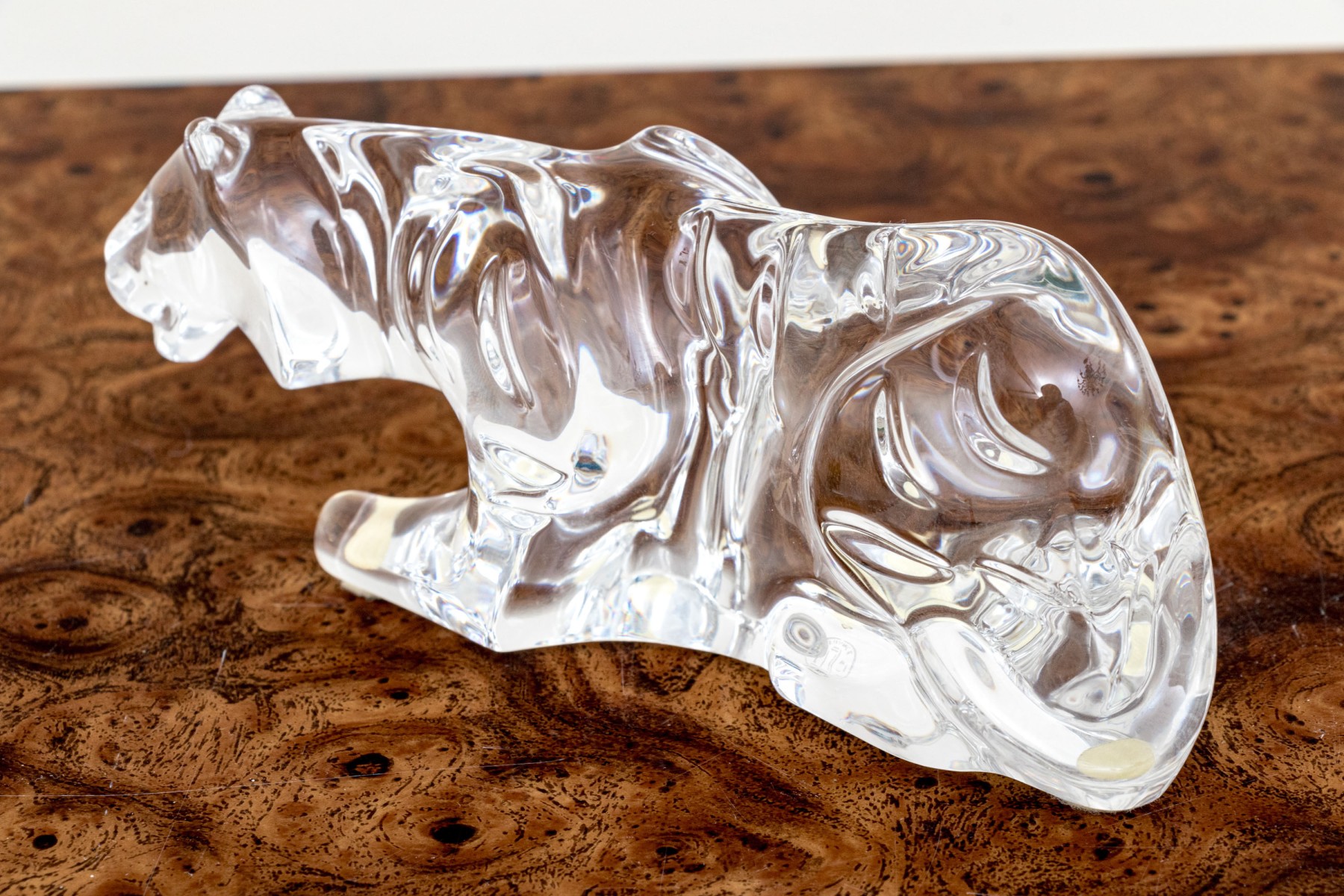 A fabulous French Baccarat crystal figure of a prowling tiger, its undulating form capturing the light beautifully with graceful curves.