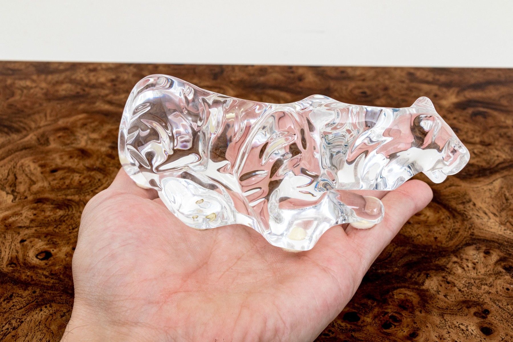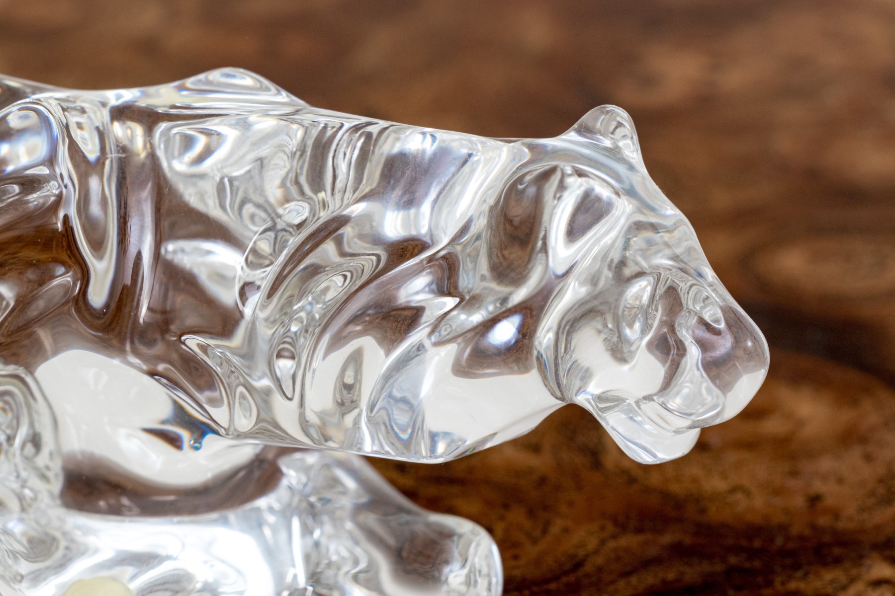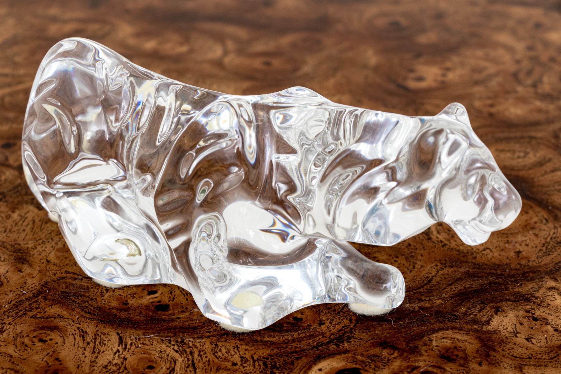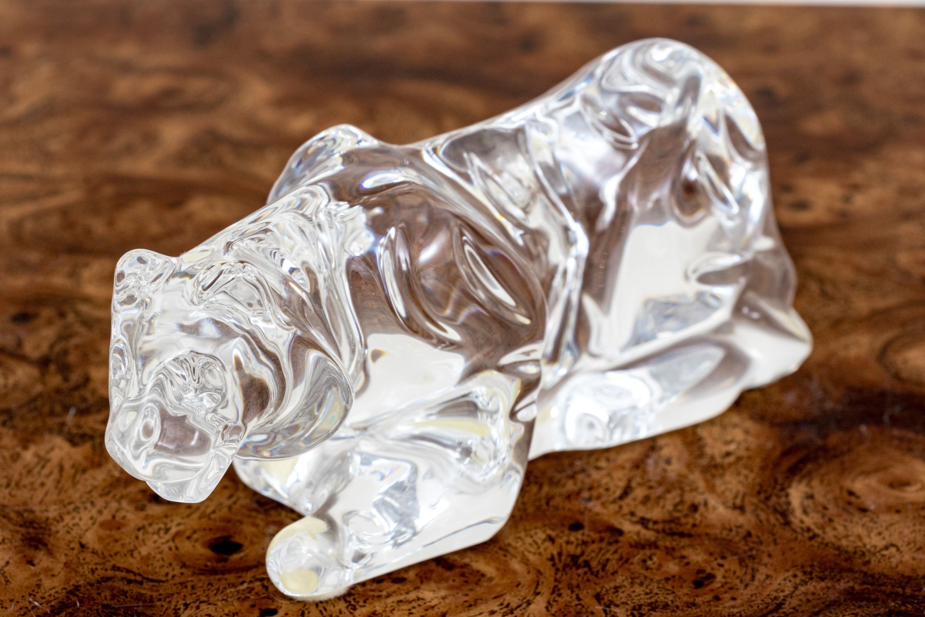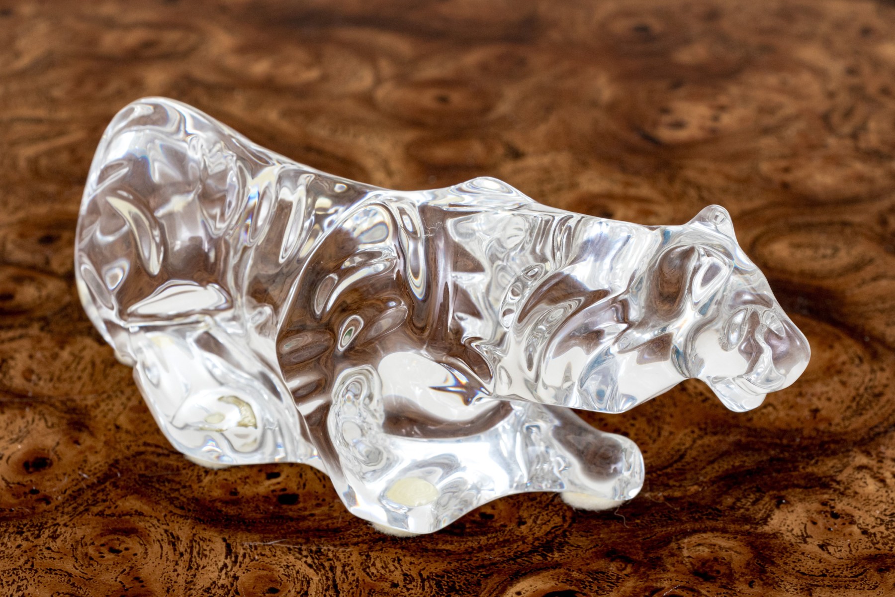 A fabulous French Baccarat crystal figure of a prowling tiger, its undulating form capturing the light beautifully with graceful curves.