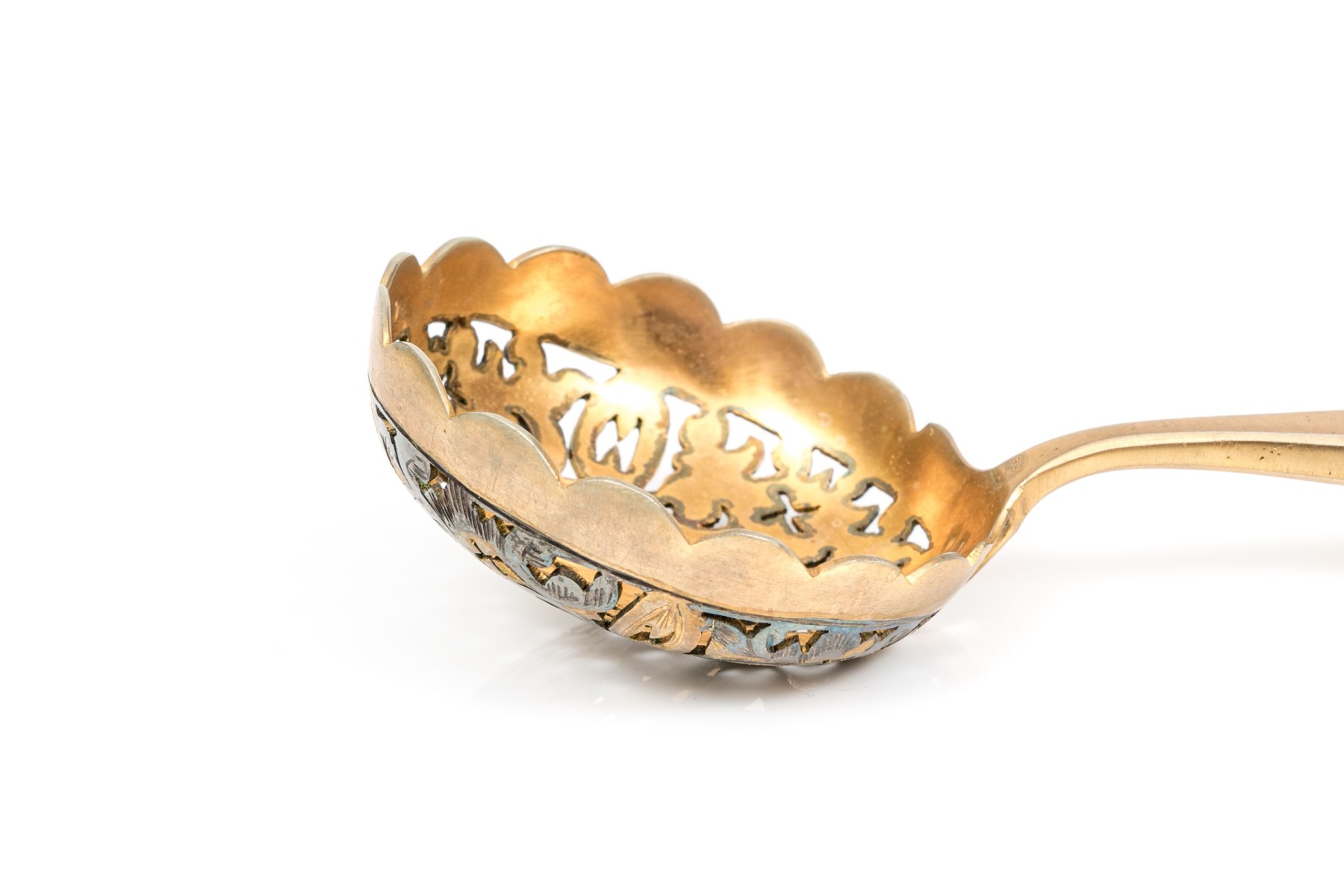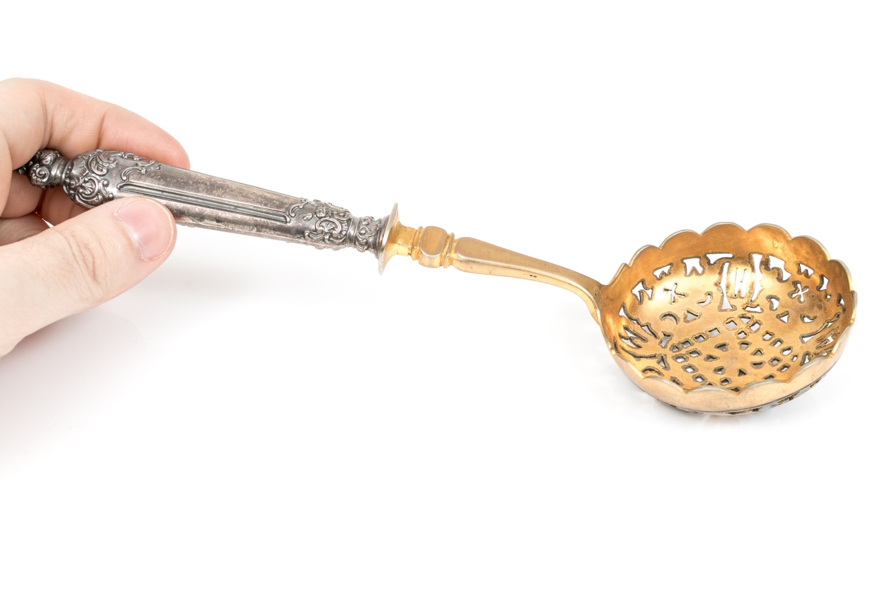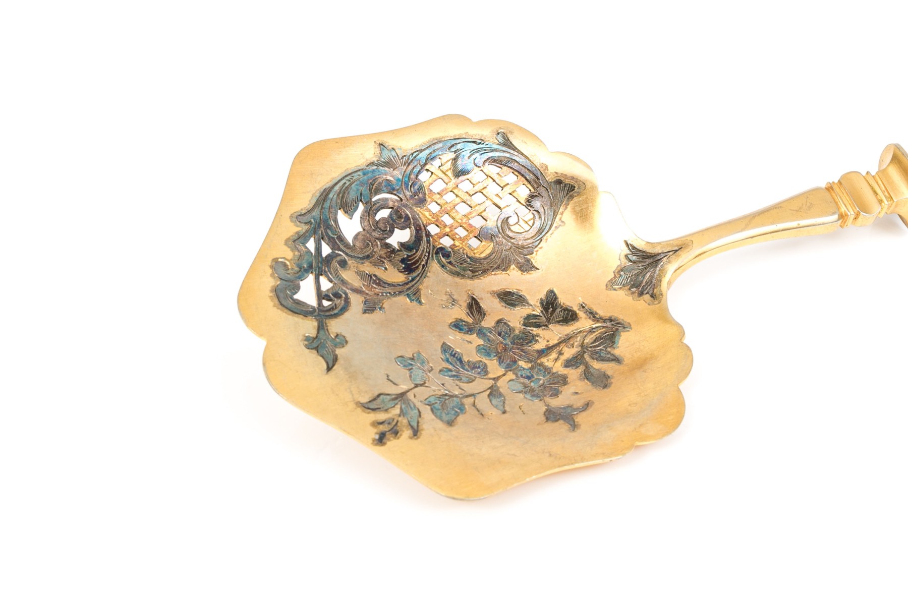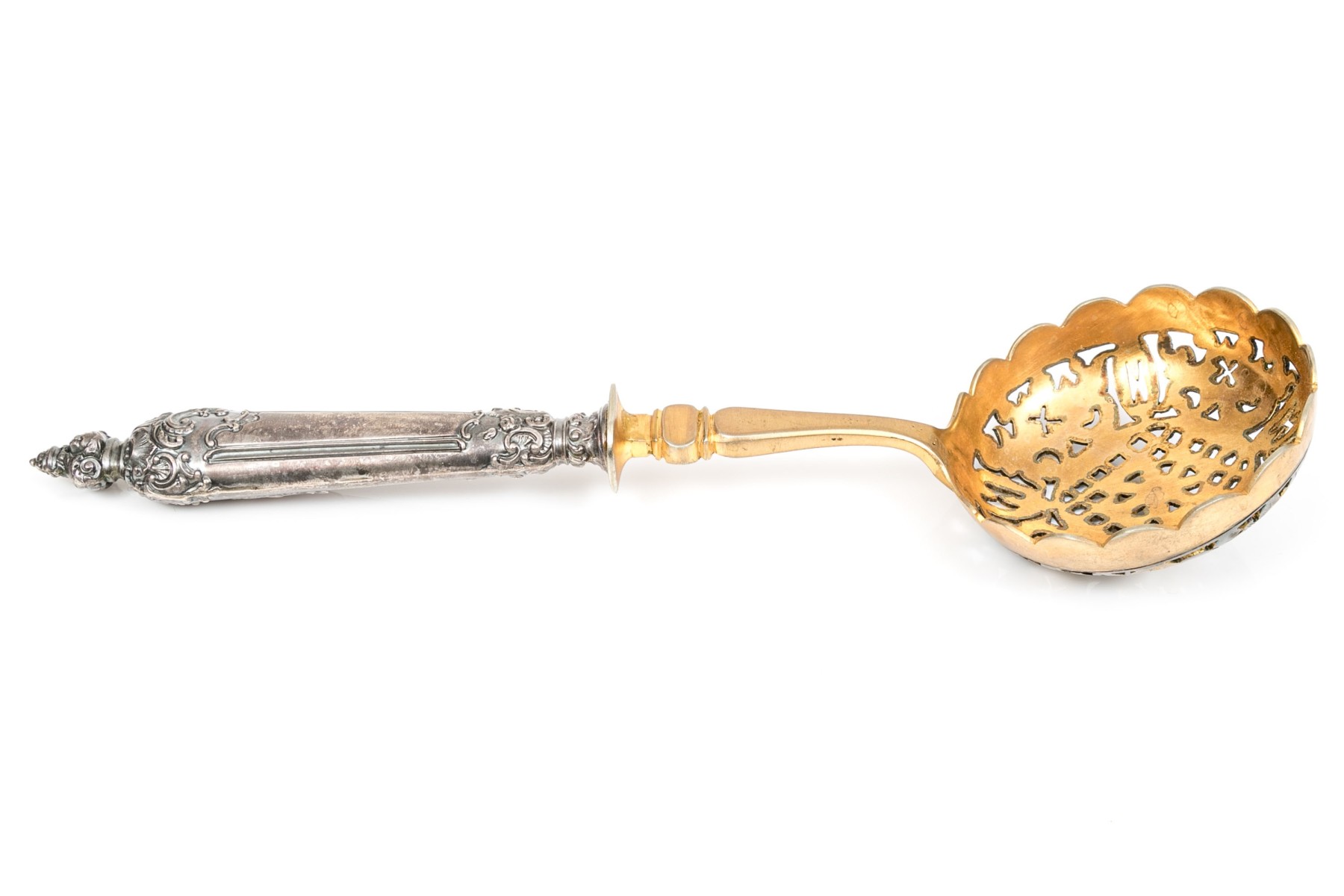 French beautiful pair of ornate vintage 800 silver handled pierced servers