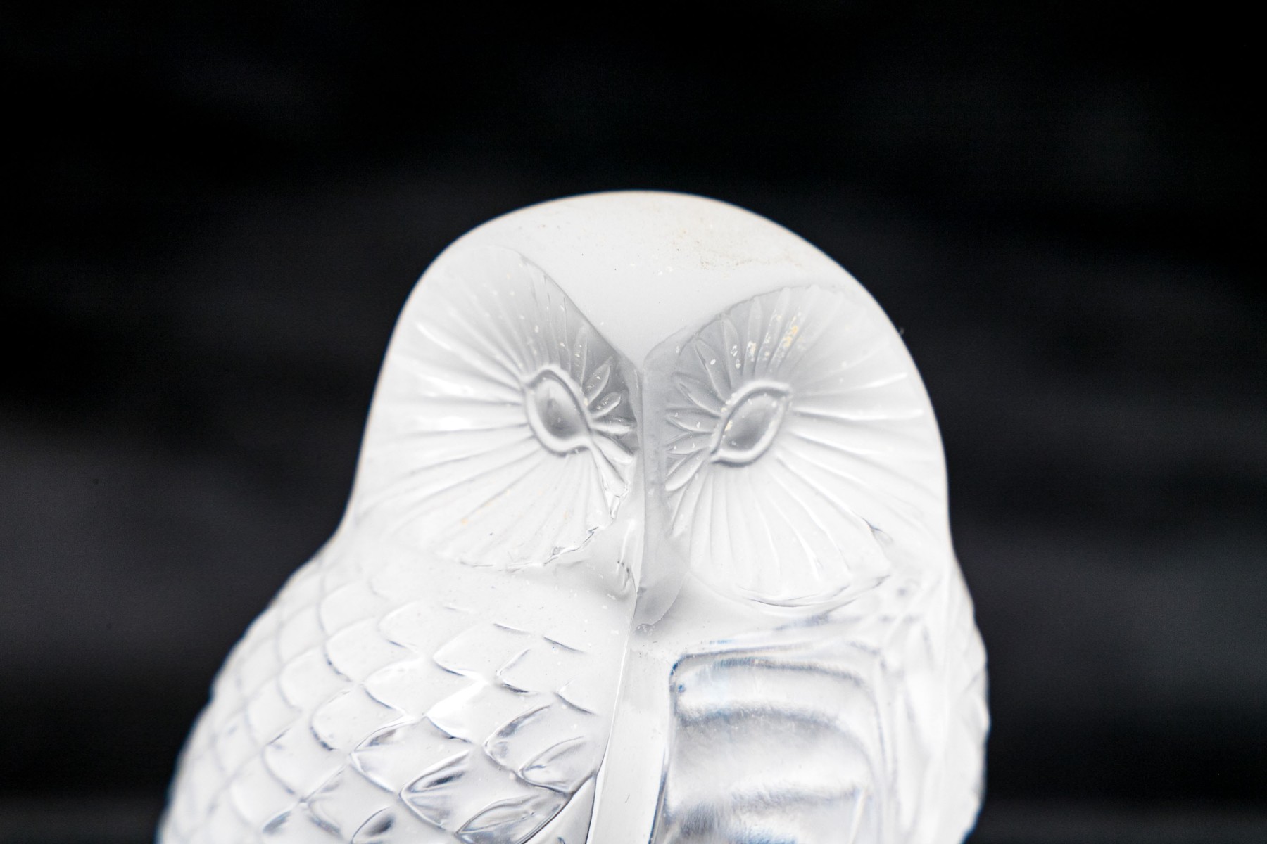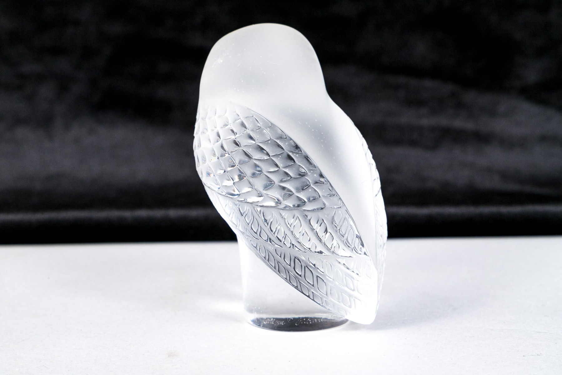 Wonderfully crafted with a cylindrical base and moulded crystal form owl with frosted finish to the owl back.