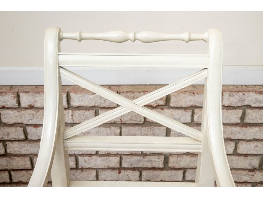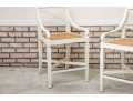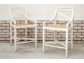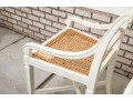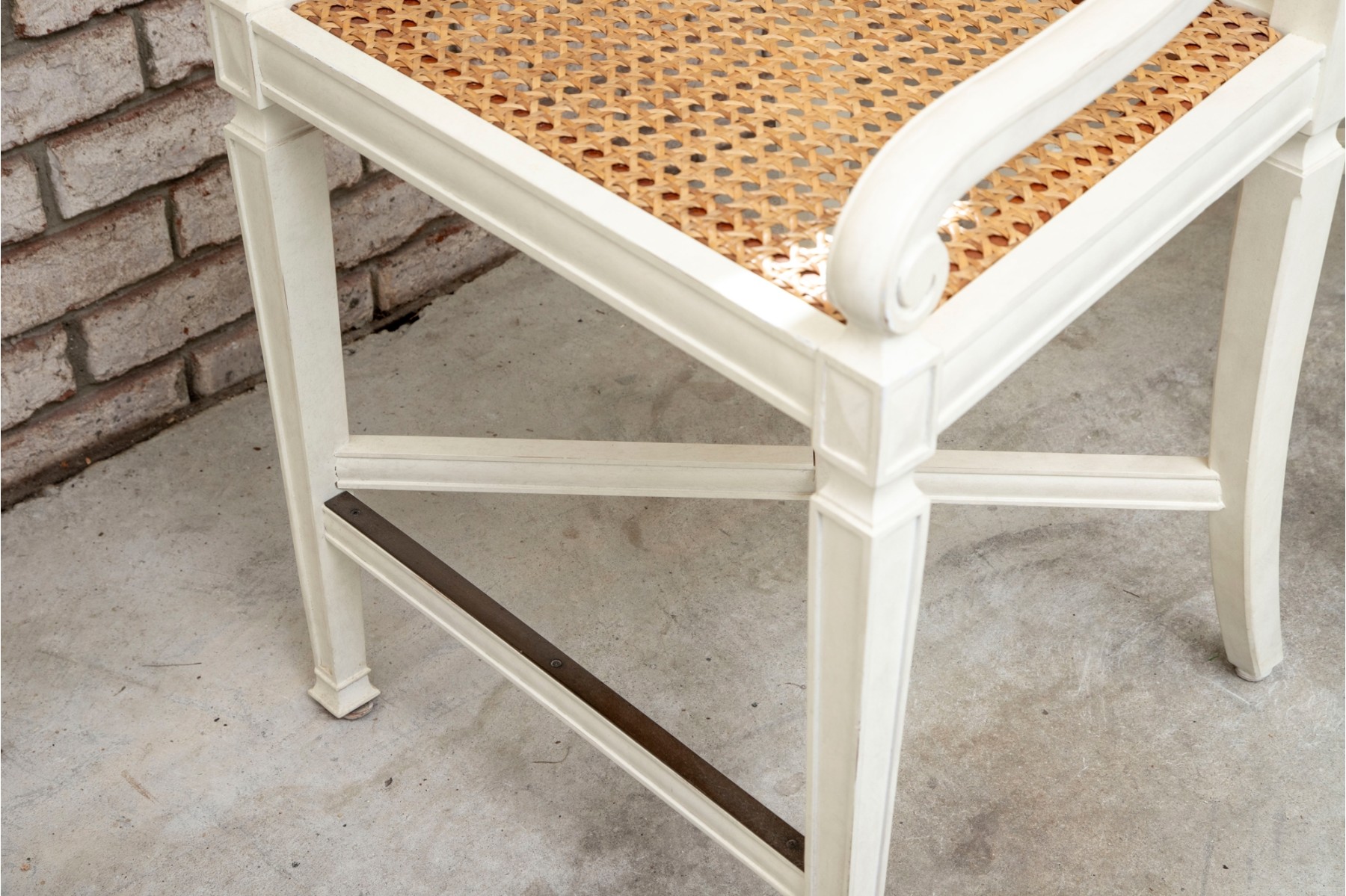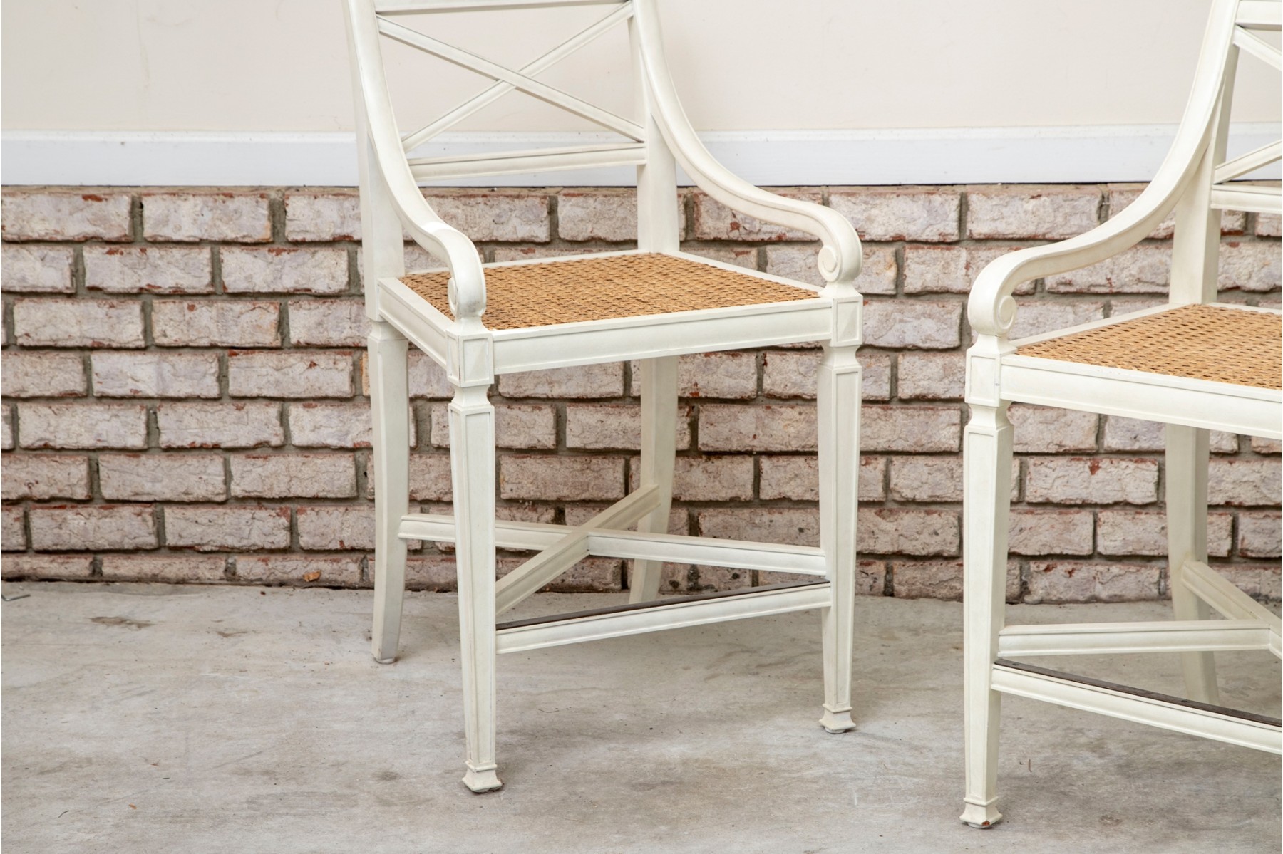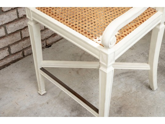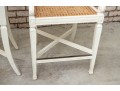 The Frontage bar stools feature a sturdy wooden frame painted white with a woven cane seat for a classic yet airy look. Its pavilion-style backrest adds elegance and support, making it a stylish and comfortable choice for modern kitchen islands or bar areas. No cushions included.