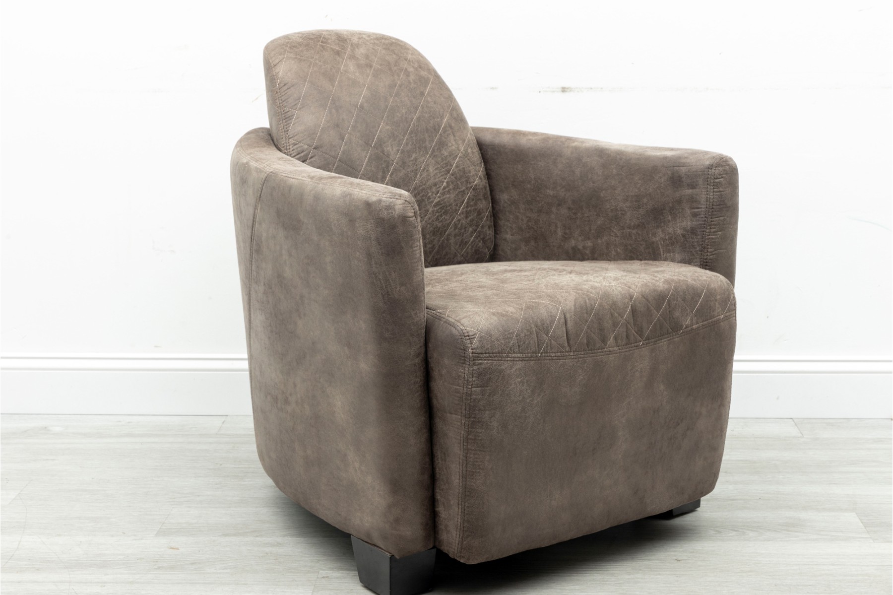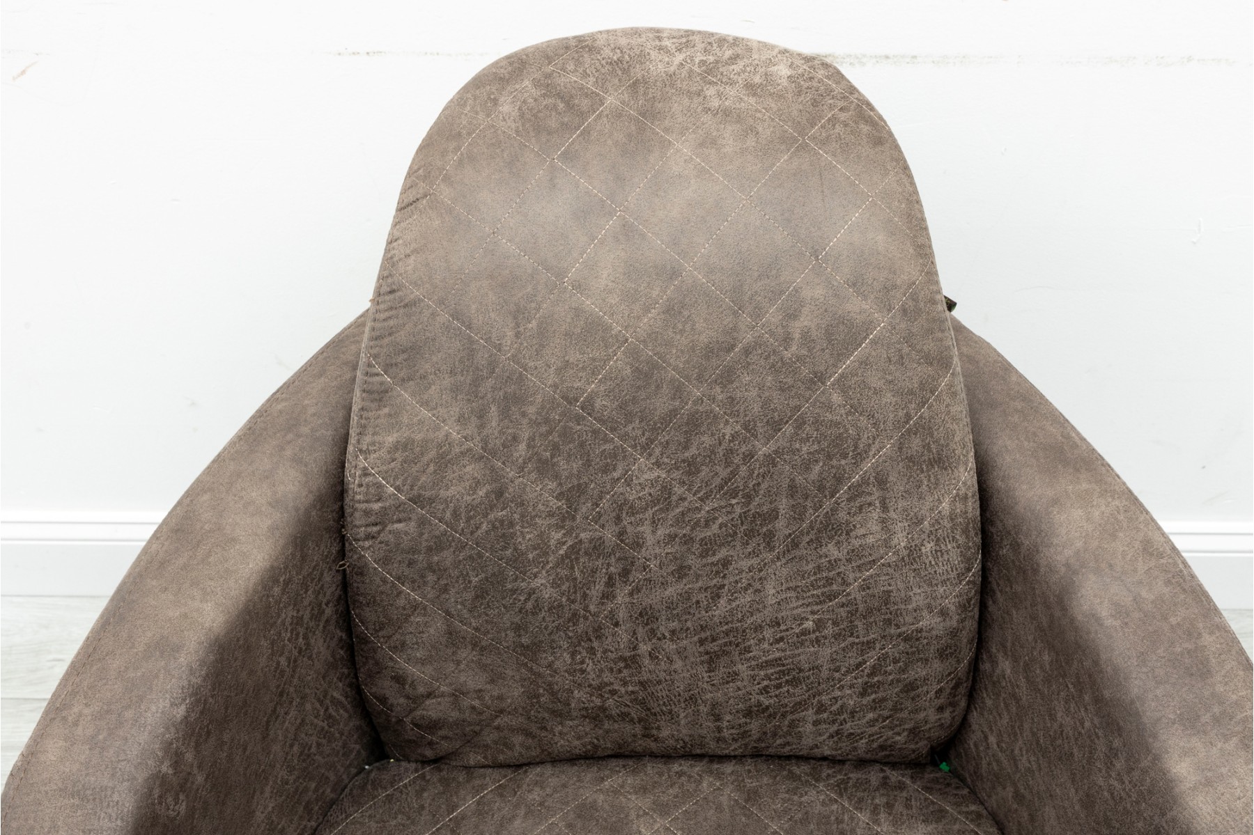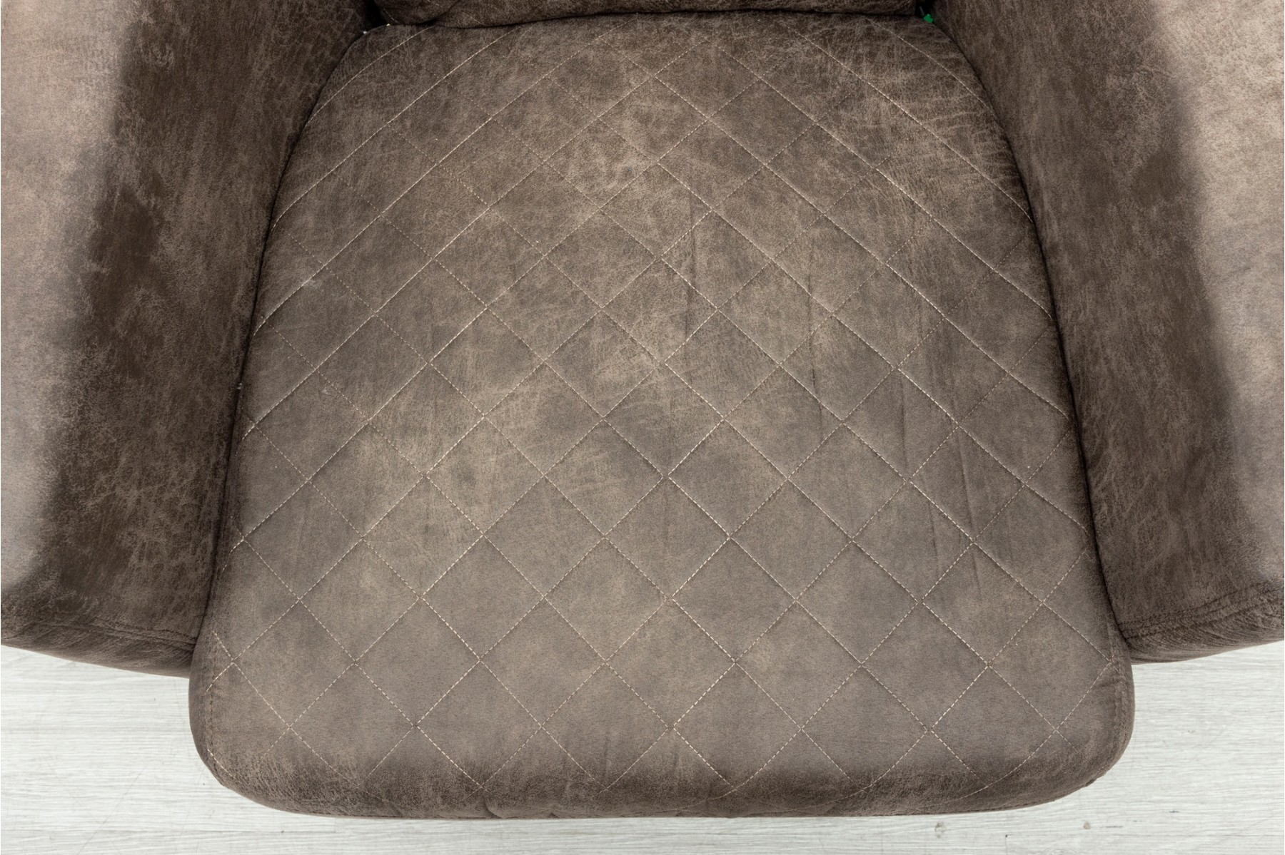 A fabulous Aviator inspired single cheater chair by Opulence Home Furniture. fully upholstered in mottled brown faux leather fabric that is soft to the touch, and complimented by white diamond pattern tailoring for a designer look.