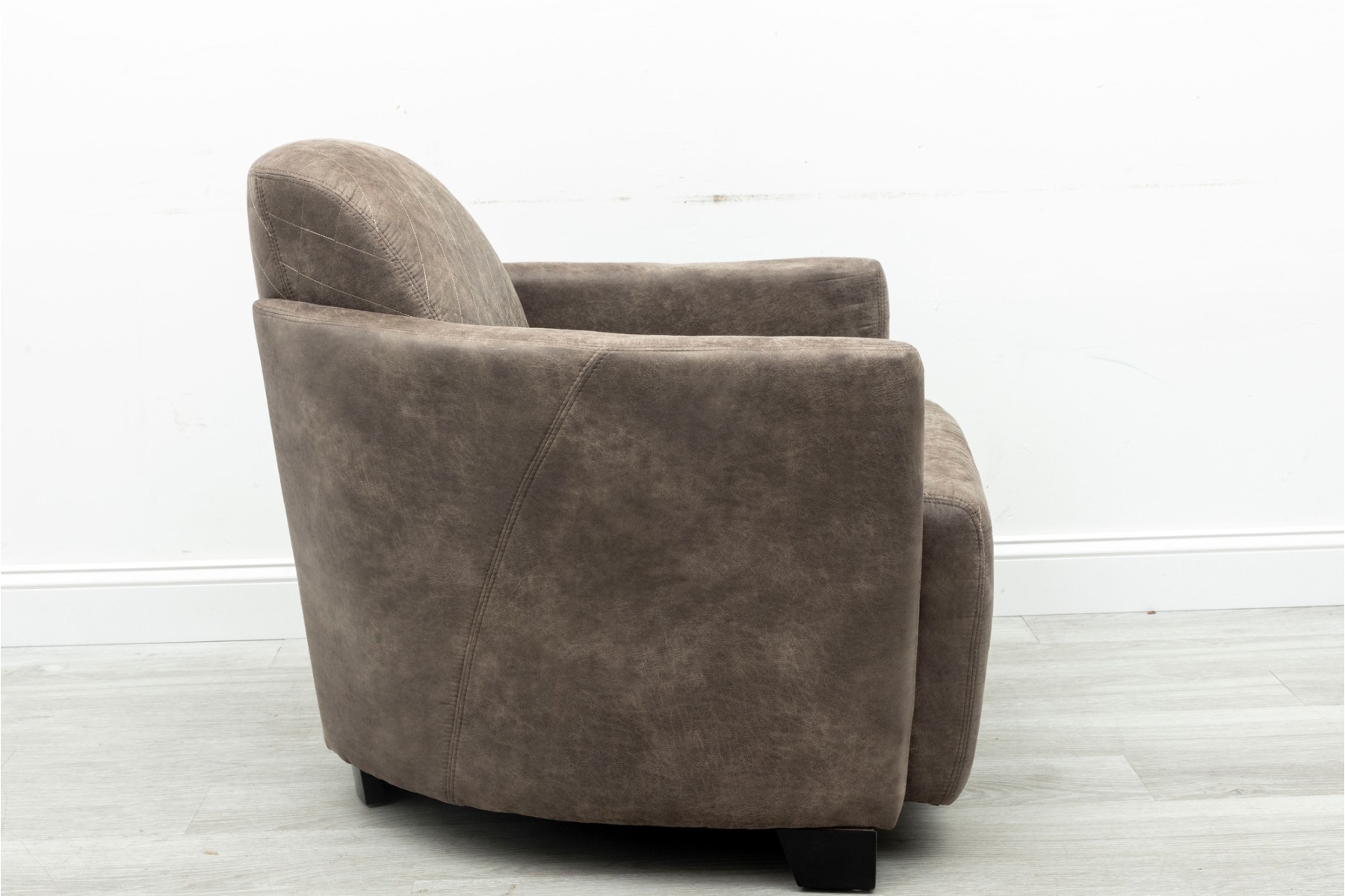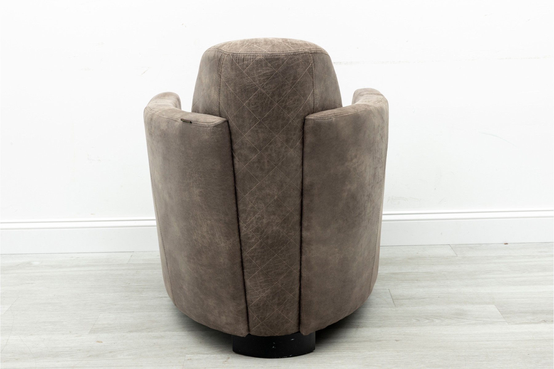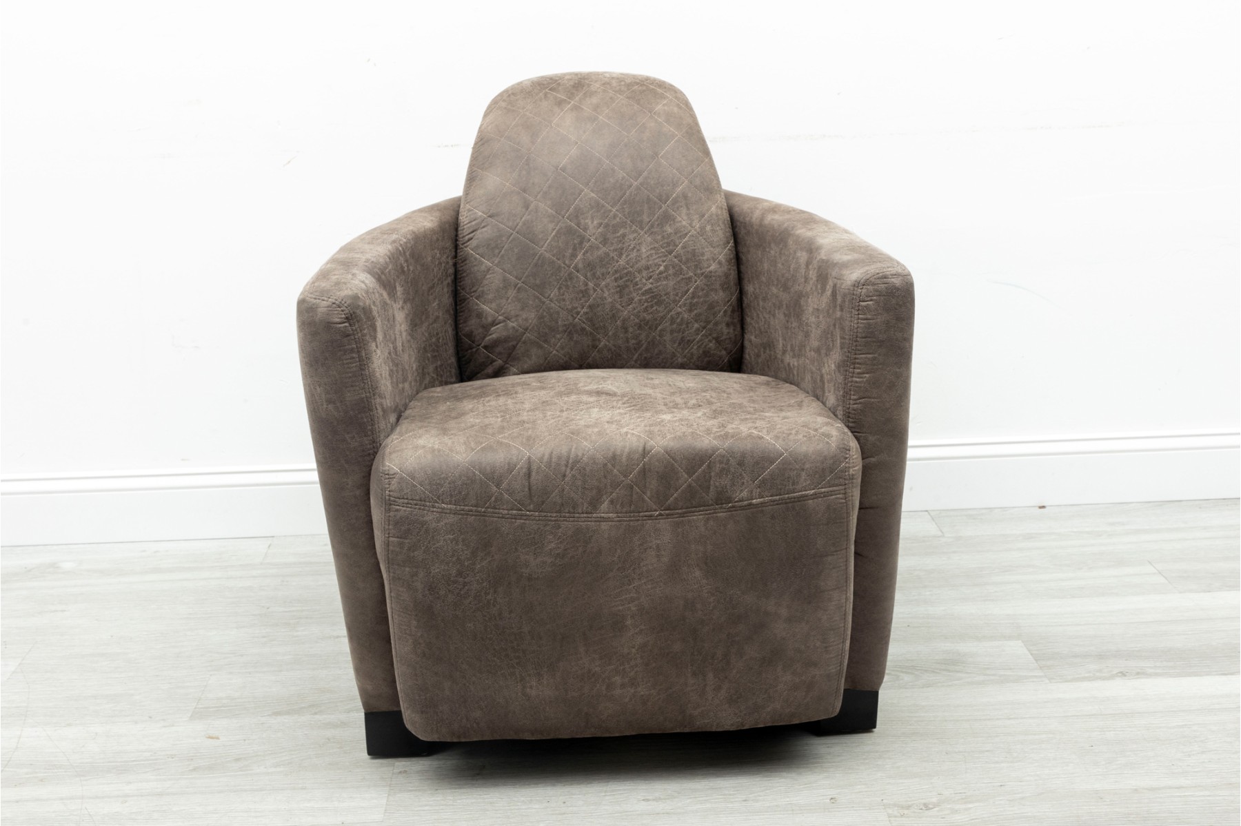 A fabulous Aviator inspired single cheater chair by Opulence Home Furniture. fully upholstered in mottled brown faux leather fabric that is soft to the touch, and complimented by white diamond pattern tailoring for a designer look.