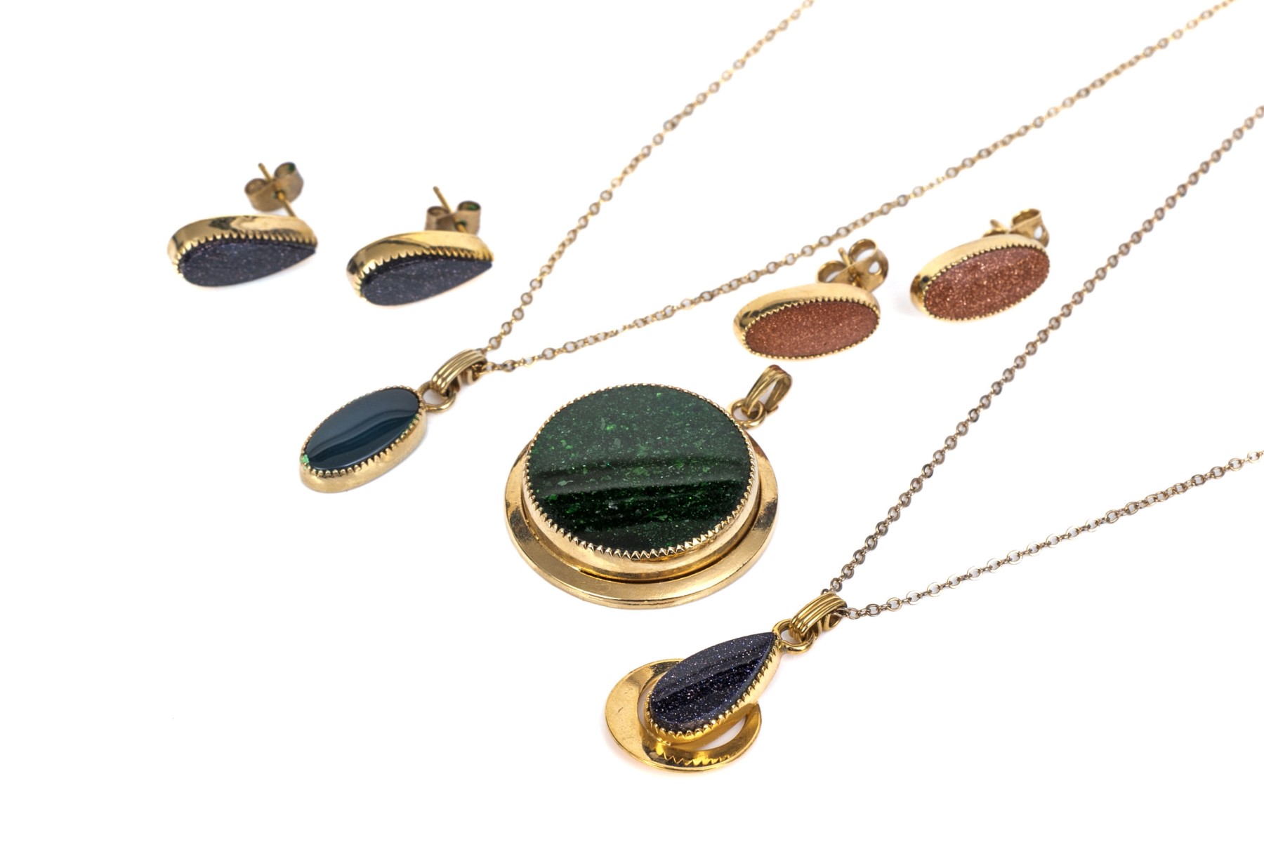 Fun collection of multi color goldstone glass and black onyx gold filled jewelry pieces