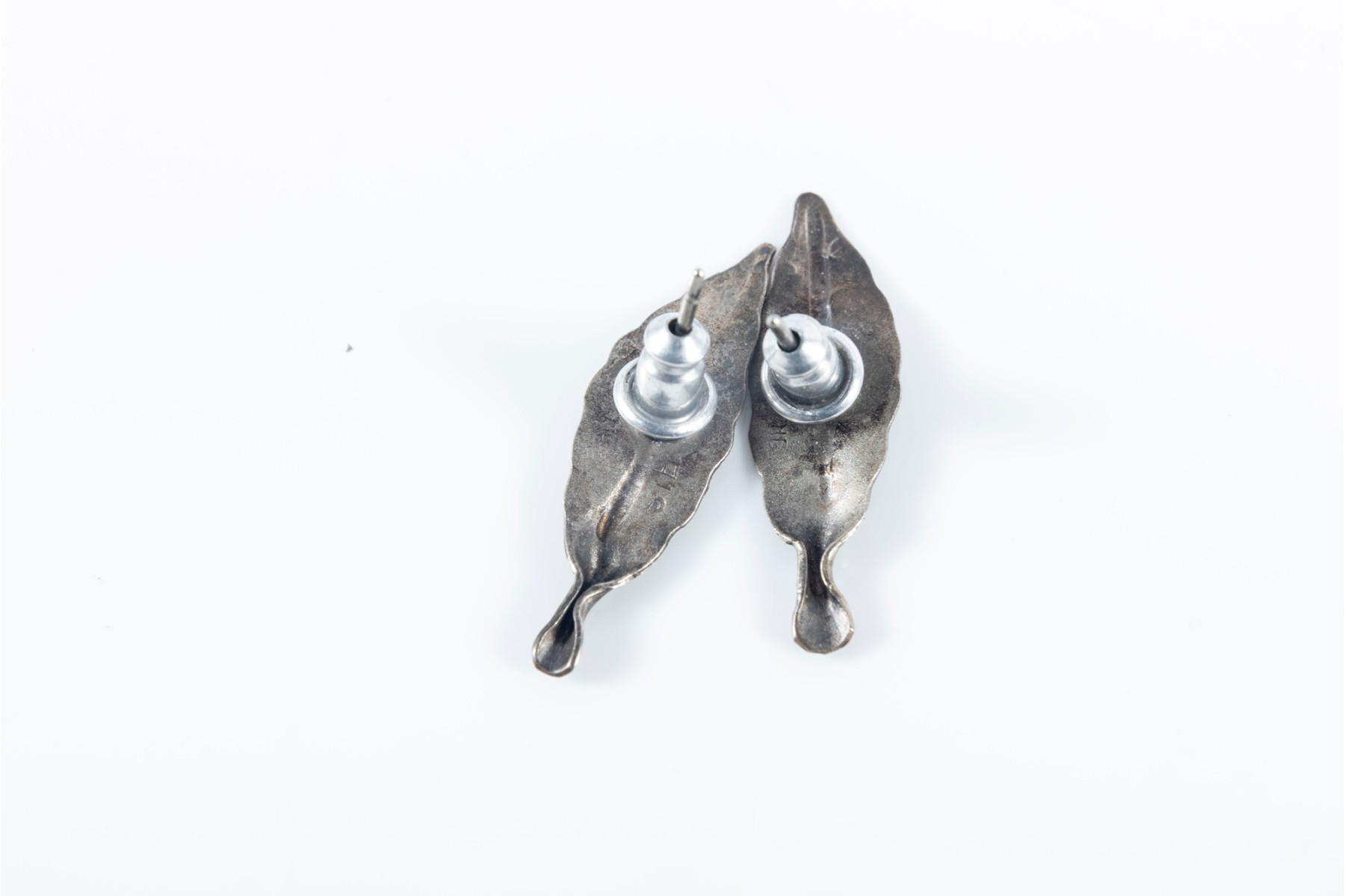Scattered tarnishing. One holly stud does not have a pair. The sphere studs are different sizes. Not all earrings have backings. Some minor bending to the posts.
