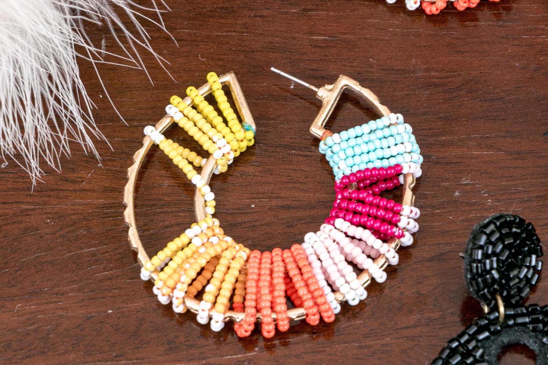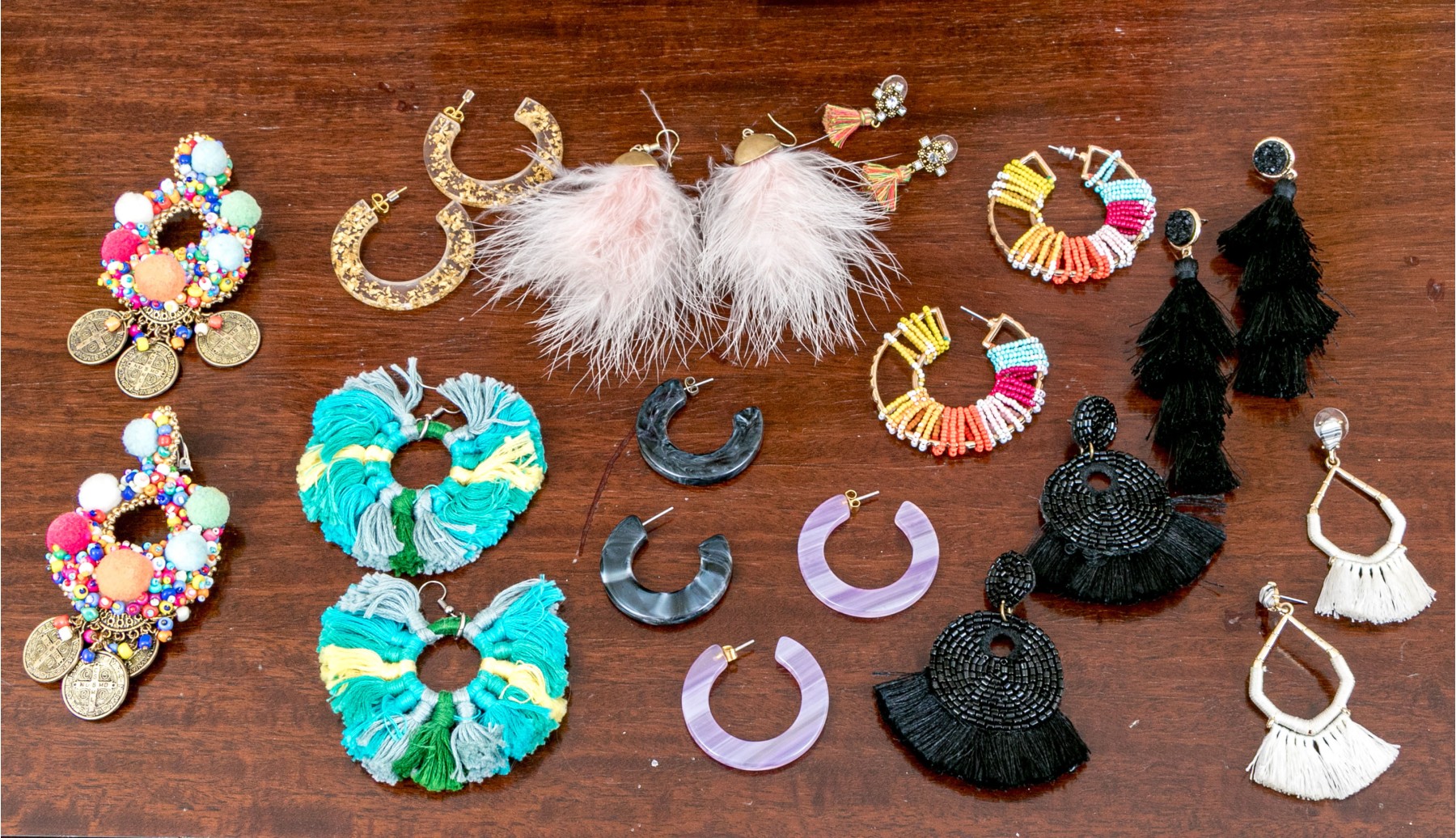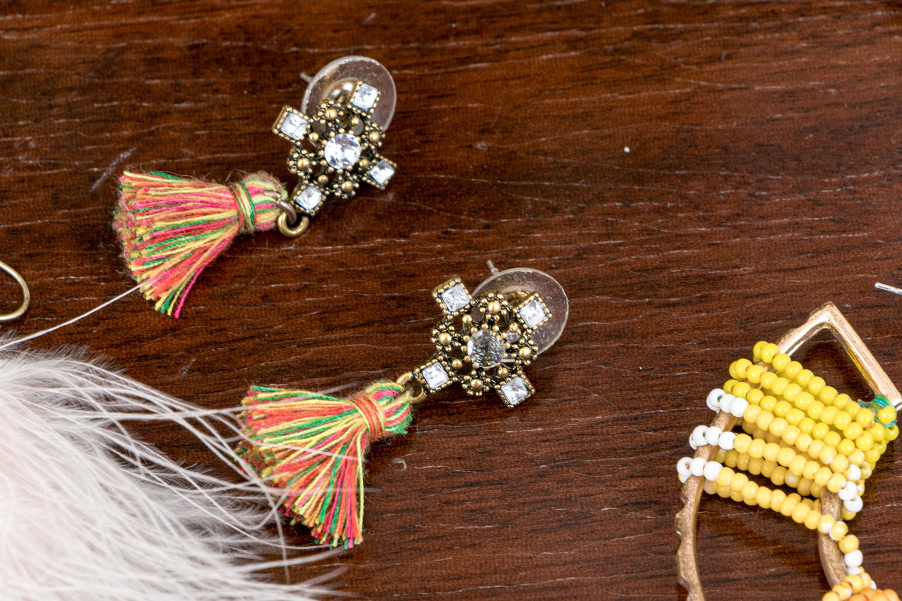 This Fun "Life Of The Party" Group of Colorful Fashion Earrings features an eclectic mix of vibrant designs sure to add a playful touch to any outfit. With various bold colors and unique styles, these earrings are perfect for making a statement or adding flair to everyday wear.