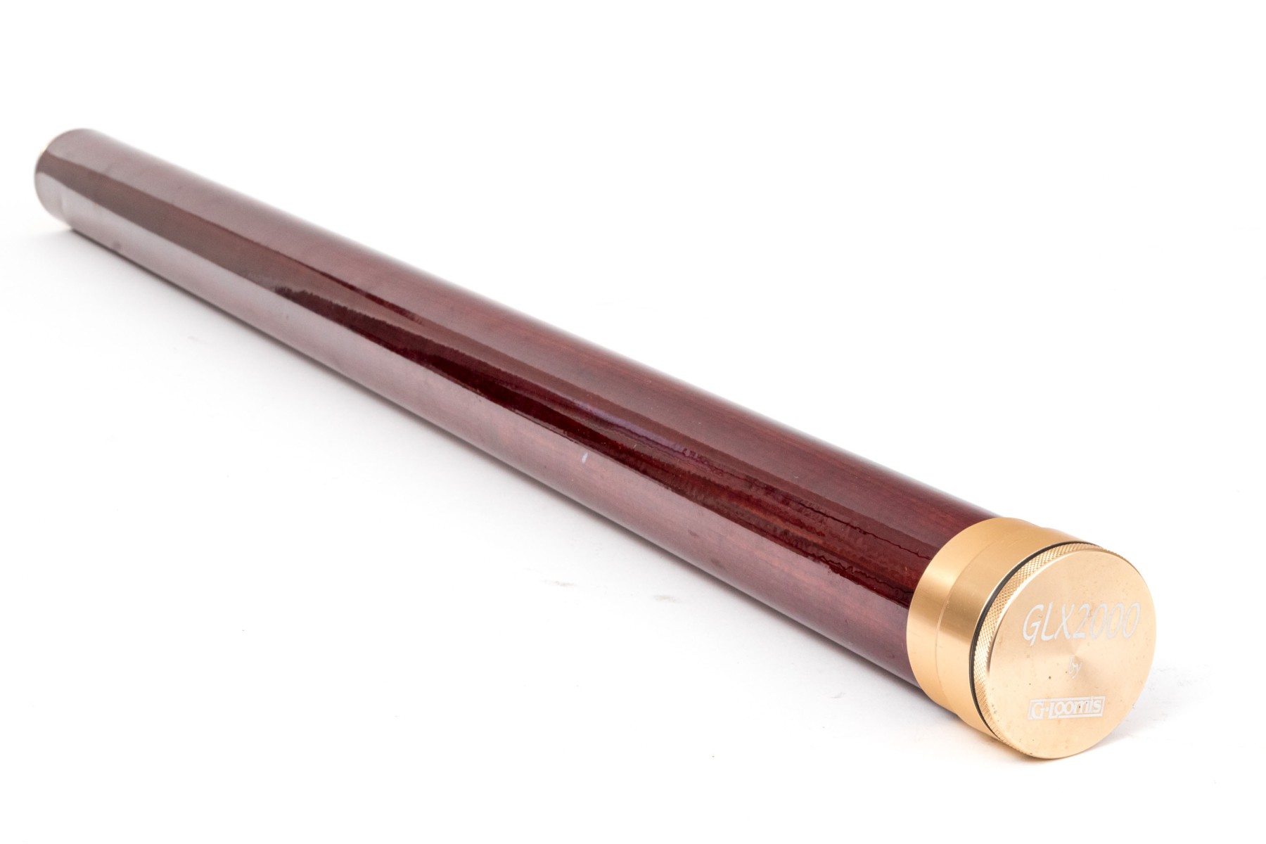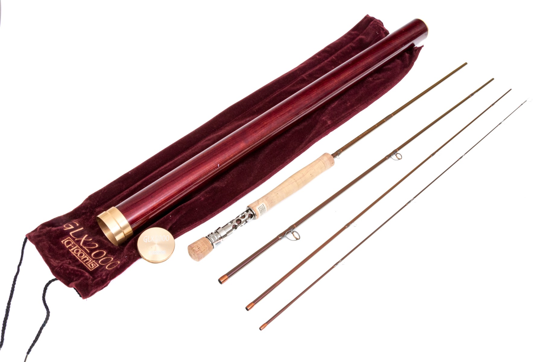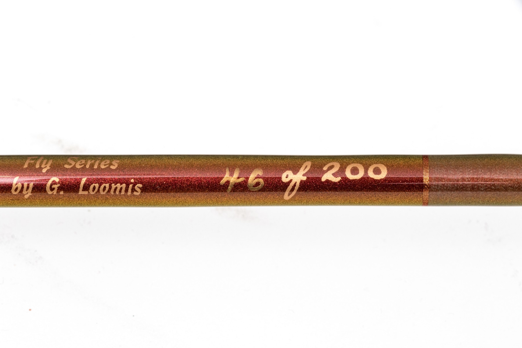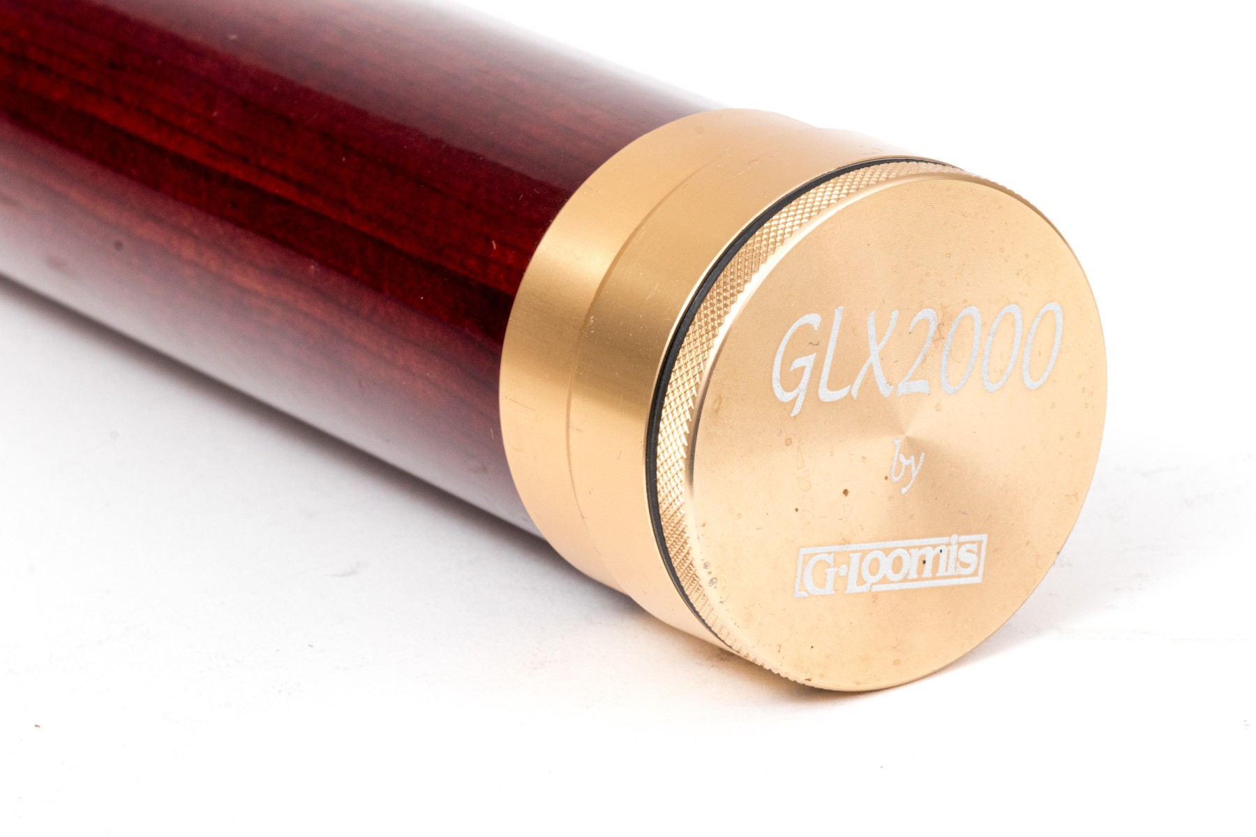 G. Loomis GLX2000 'Fly Series' fly rod. This rod is 46th of only 200 'Fly Series' produced in 2000, commemorating the turn of the century. The nine foot rod breaks into four pieces and comes with the original case and Certificate of Authenticity. Retail price approximately $1150.