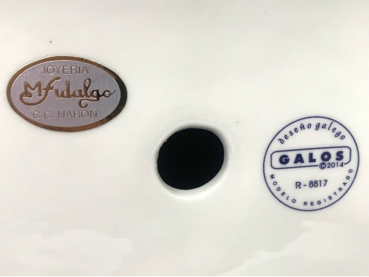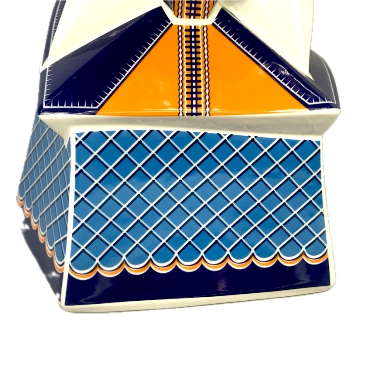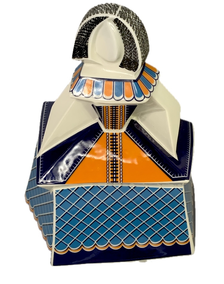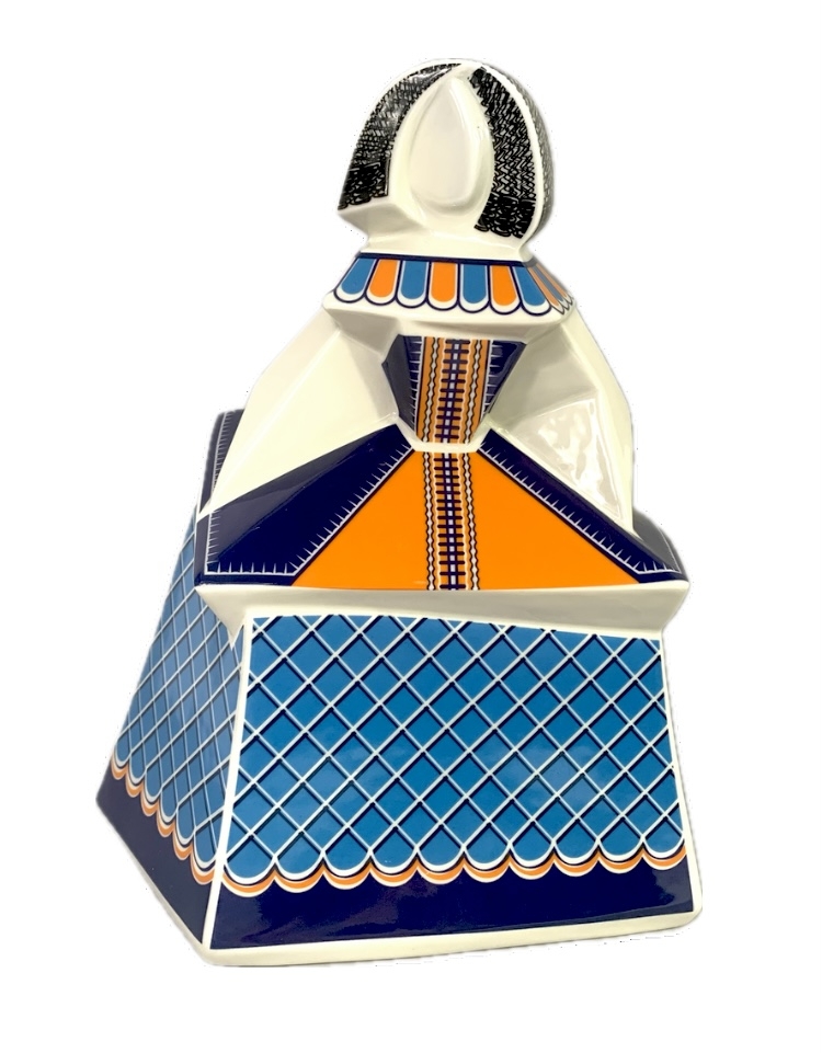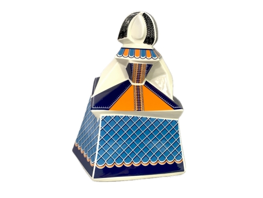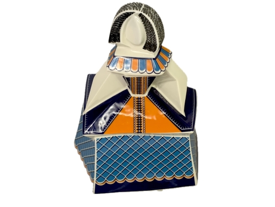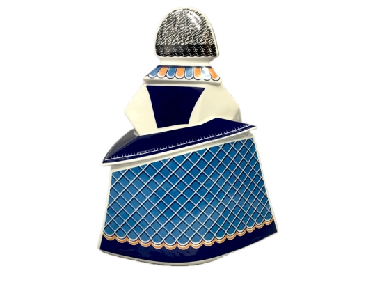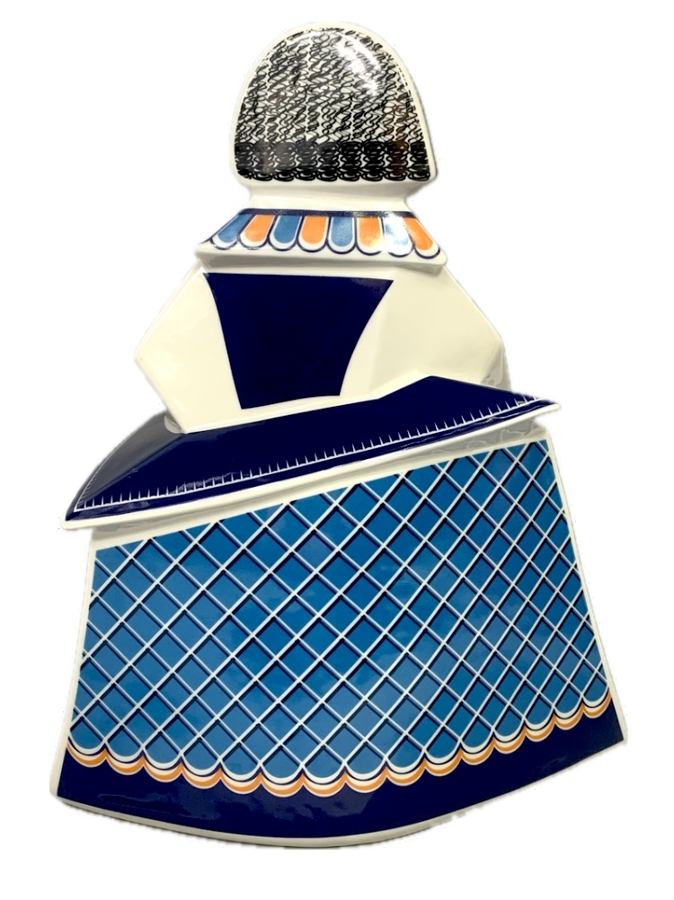 Large porcelain figure of the prestigious and famous Galician brand of ceramics and porcelain Galos, representing a cubist-style menina. Designed and manufactured in Spain. Model #R-8817 registered at the end of 2014. Inspired by the art movement of Pablo Picasso with hand painted geometric lines. Marked on verso.