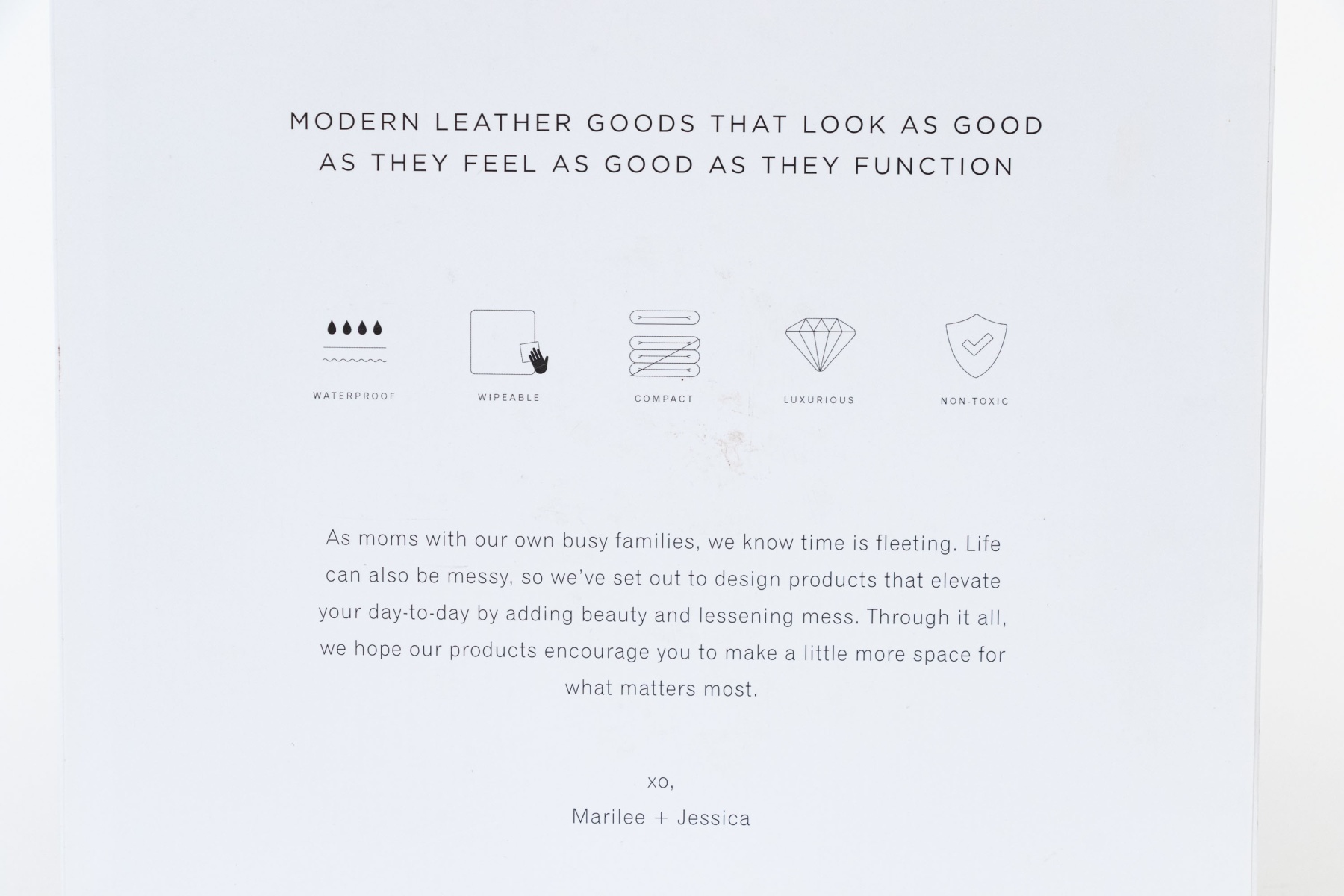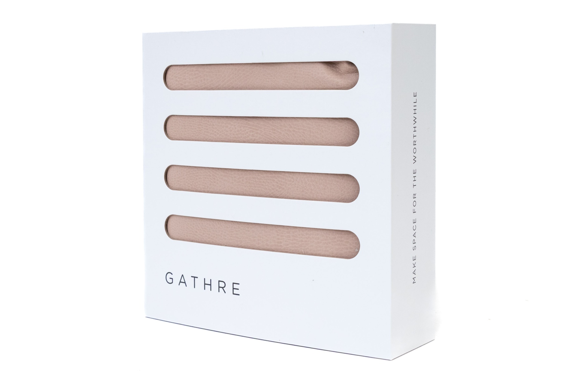A handy and stylish Gathre bonded leather cleanup mat in rosy mauve, perfect for diaper changes on the go, placemats, play mats, and more.