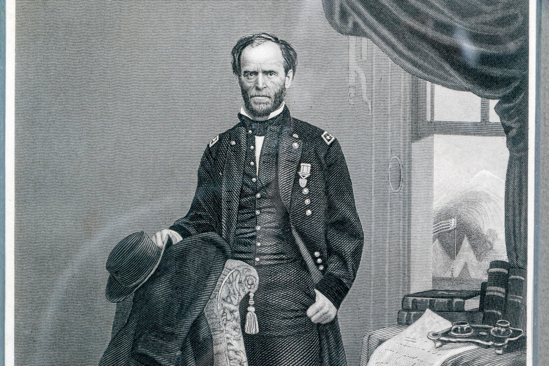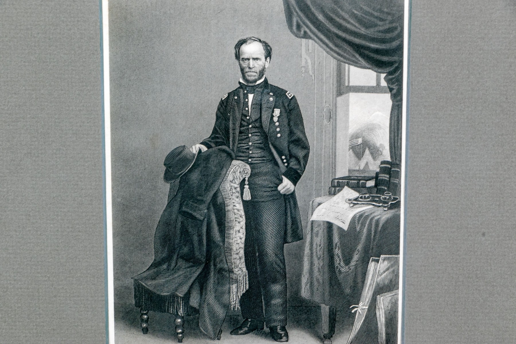 The custom framed and matted item has a lithographic print of General William T. Sherman (1820-91),