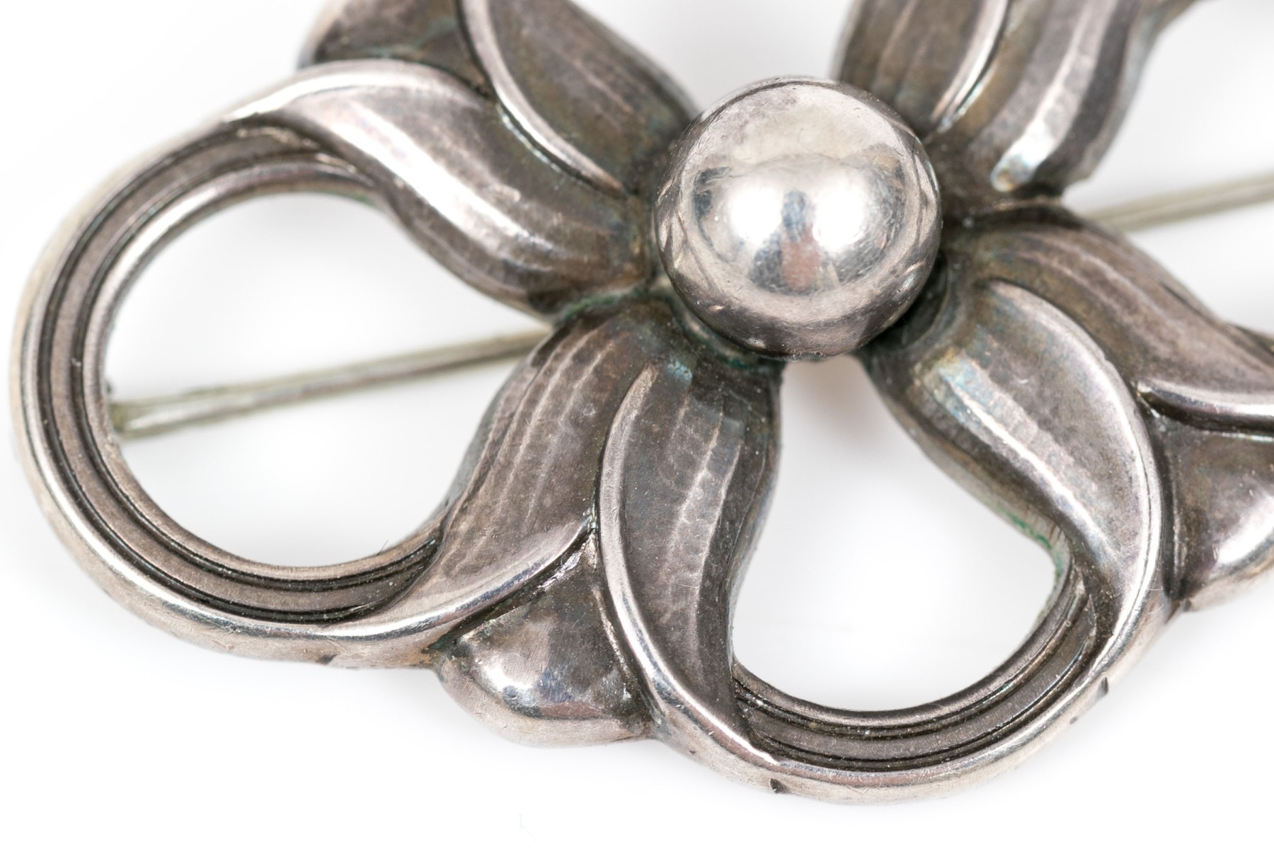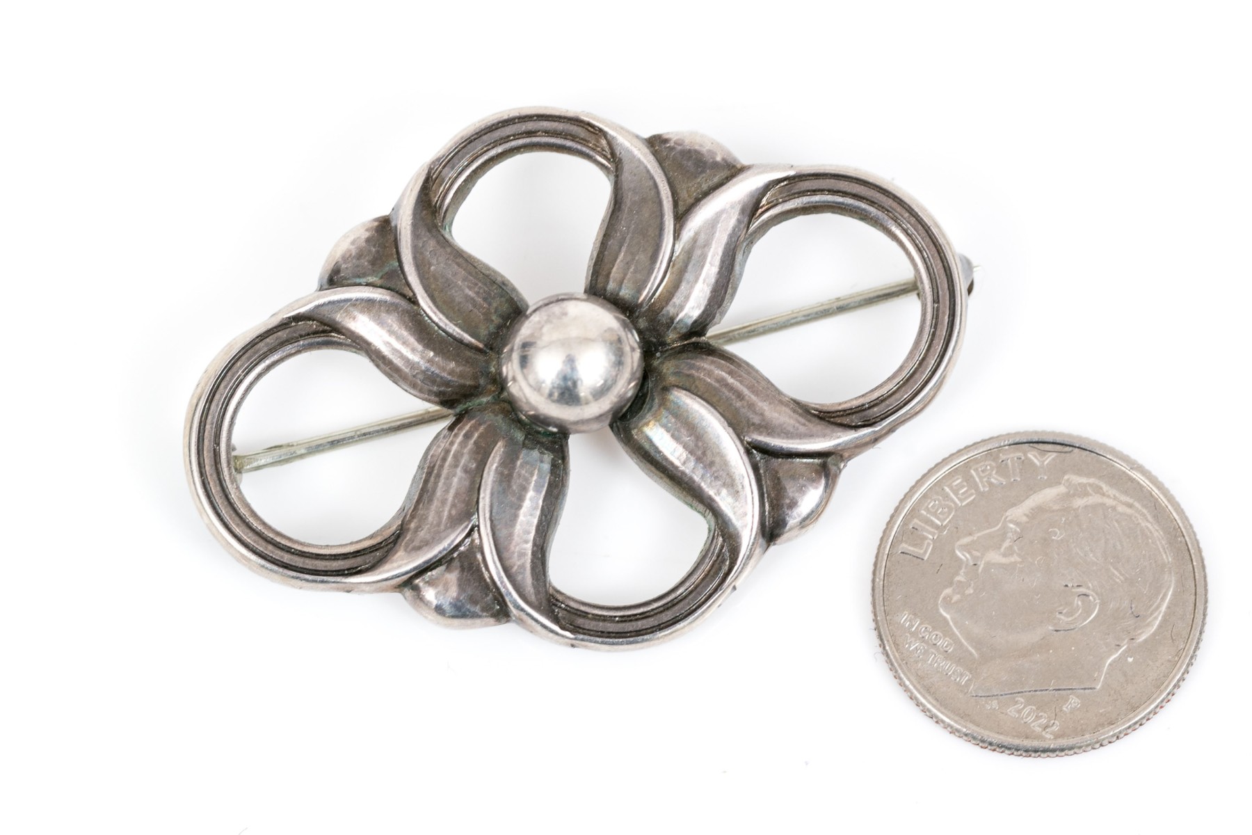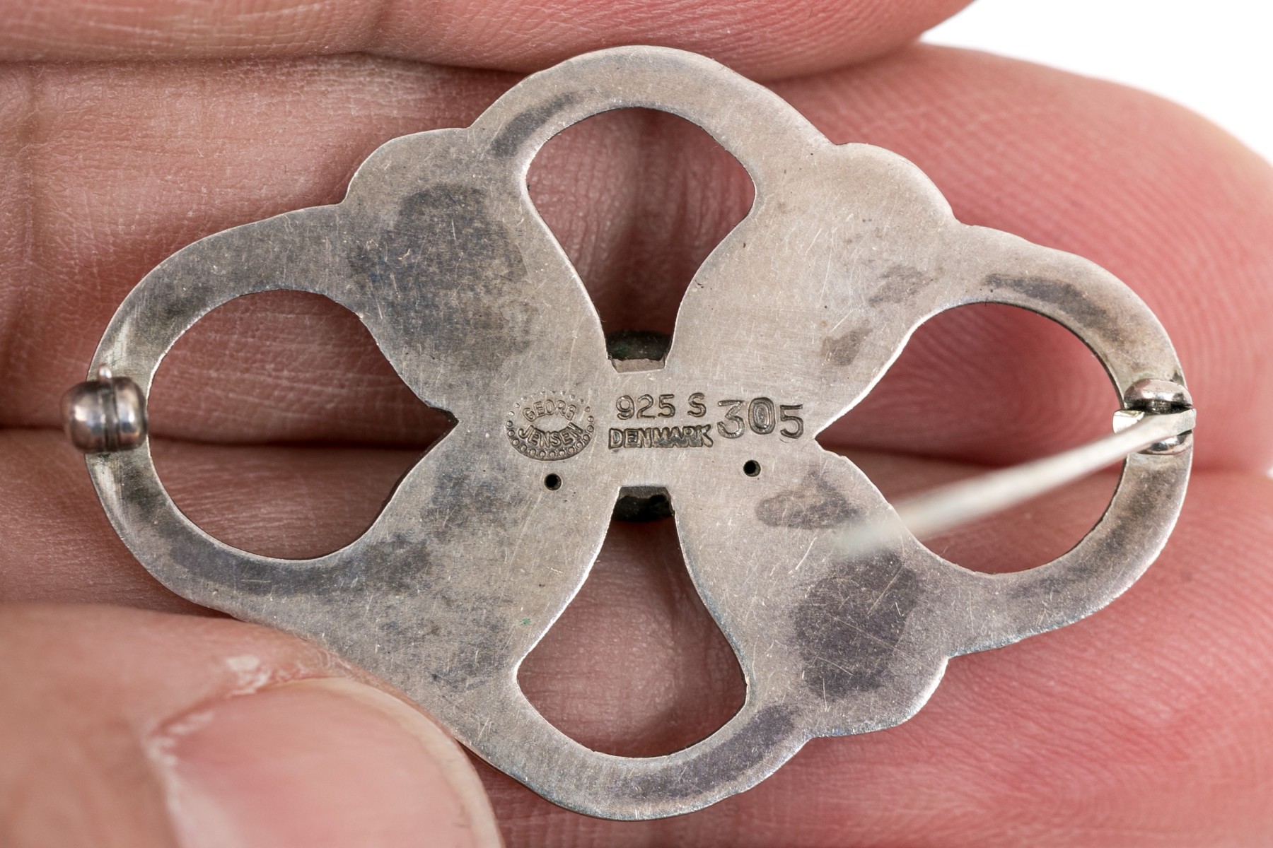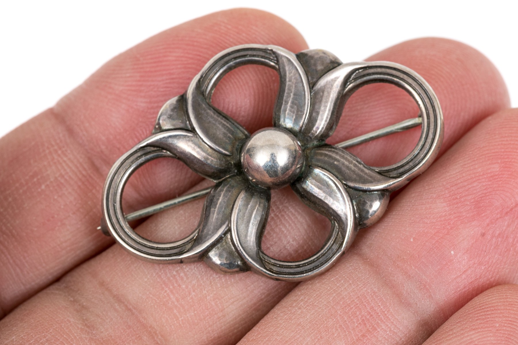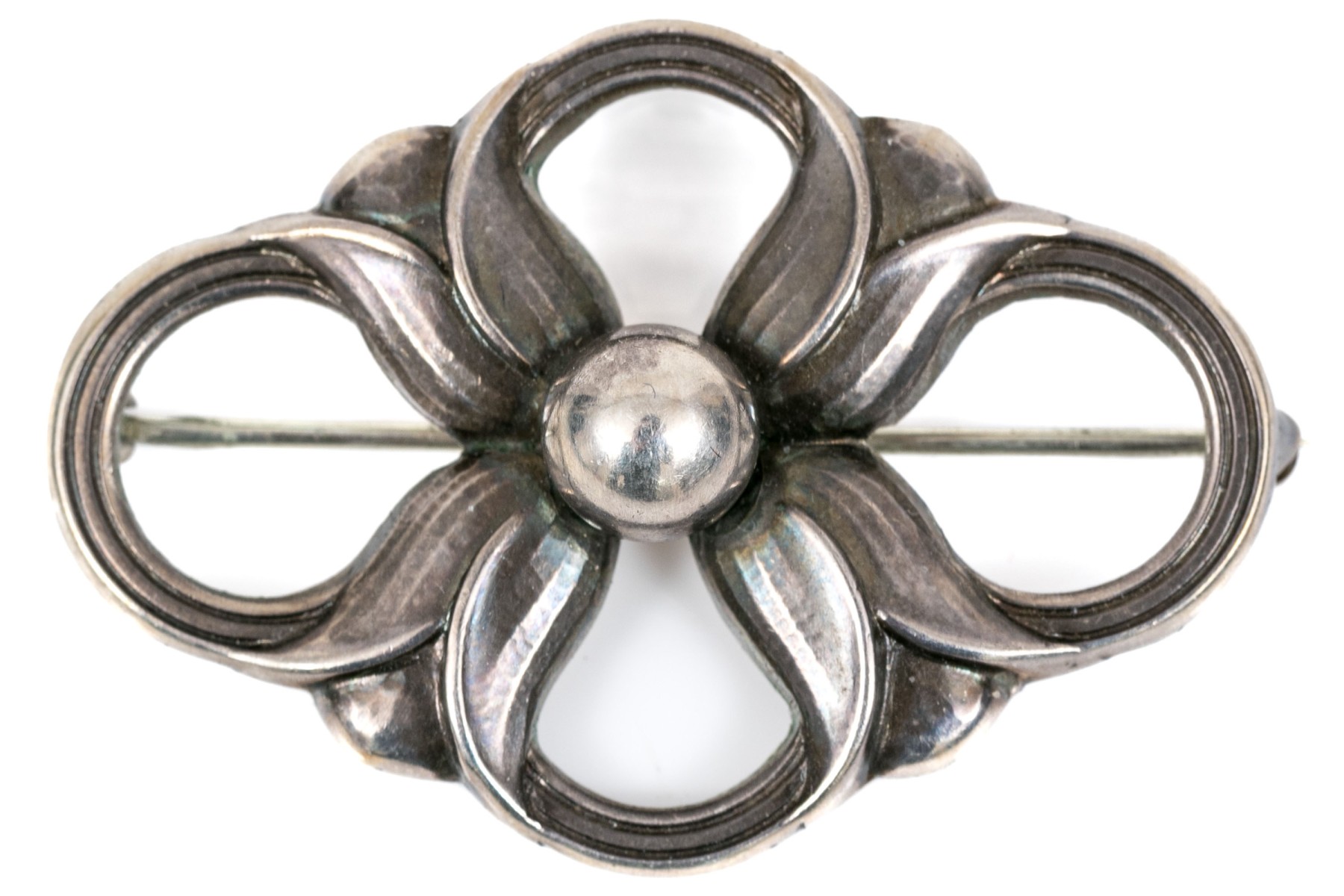 Sterling silver brooch. This lovely Georg Jensen brooch is pattern number 305, and is a quatrefoil flower motif, with a high polished finish