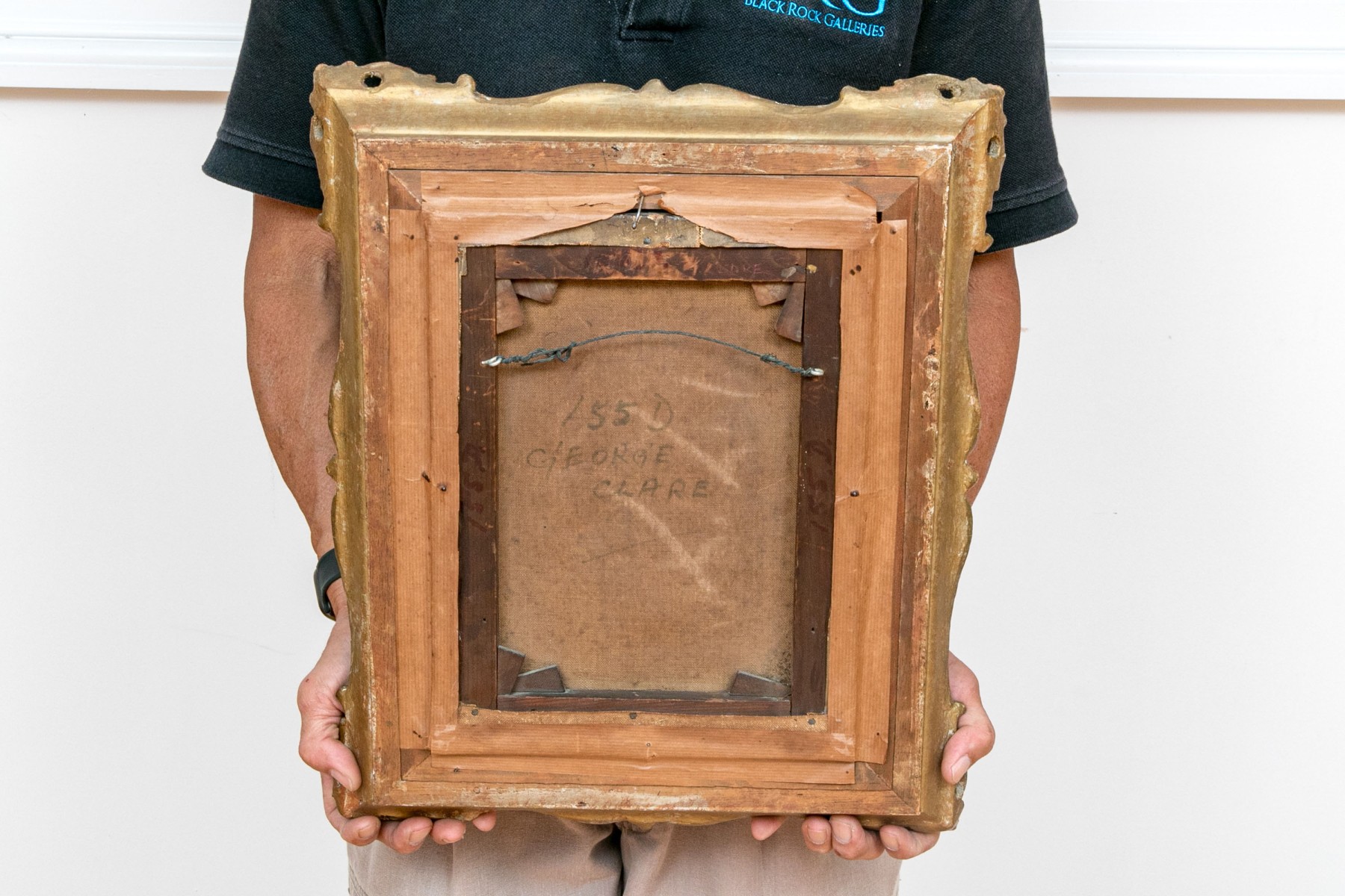 Condition: Frame exhibits minor losses including a 1 1/4" span to the top left trim from age. Canvas has slack and could be tightened over stretcher. Some craquelure additionally. See lot images for further visual inspection as they are considered part of the lot condition report.