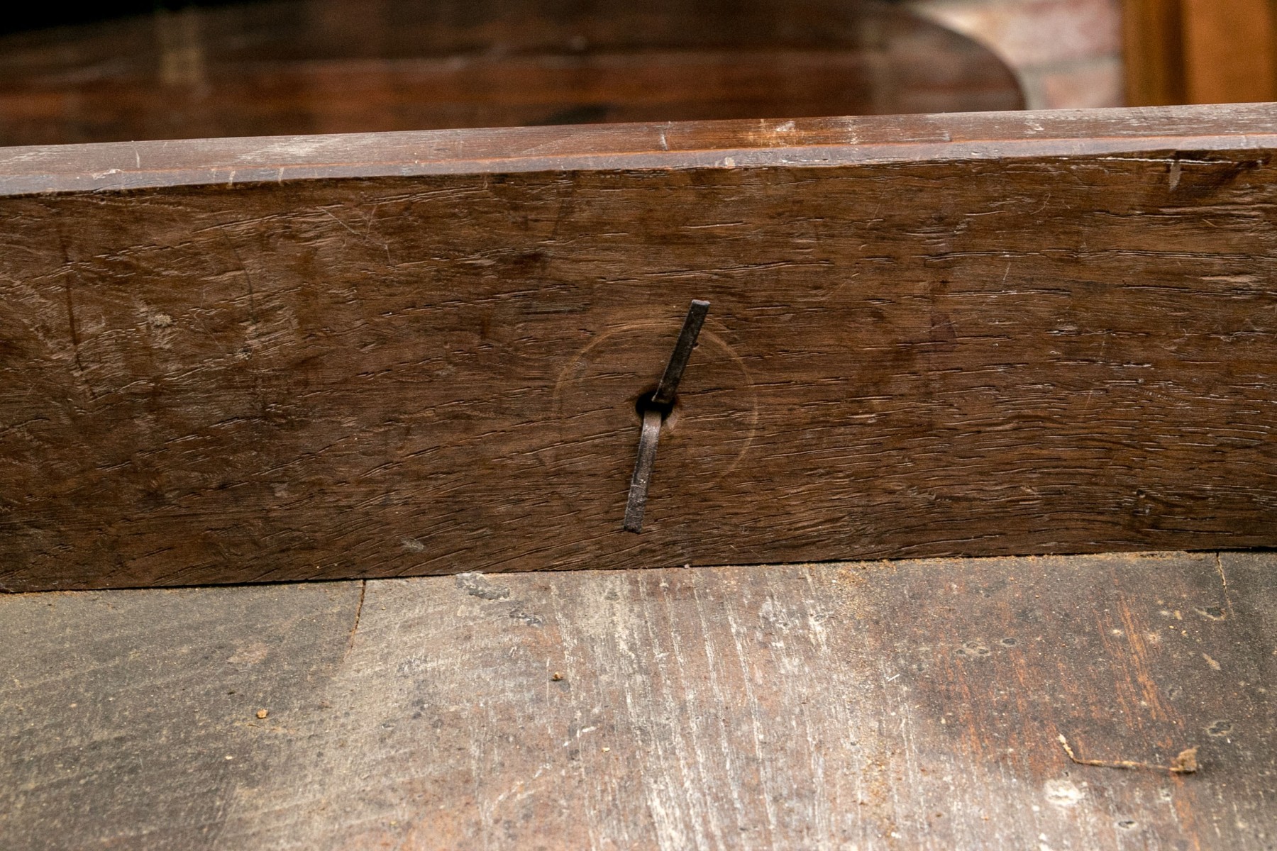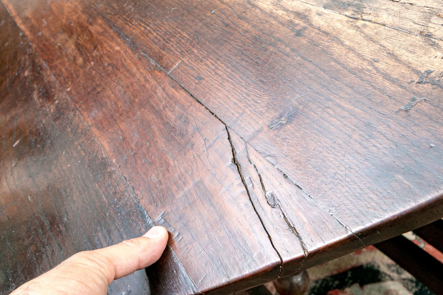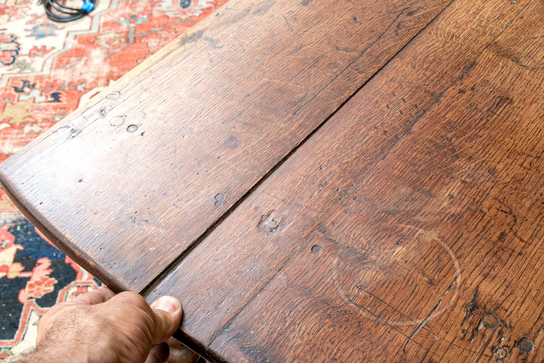 Significant finish wear to the top. Old restoration to the hinges. The top and one leaf has a crack in it. Overall the wear is commensurate with age and use. Kindly be advised that the estate has been sealed for a significant time. During this no HV/AC was operating and as such the home developed a stale odor or traces of mold or musty basement type smell due to storage conditions. Despite this, the collection presents worthwhile opportunities for buyers. BRG aims to be fully transparent and honest with our bidders.