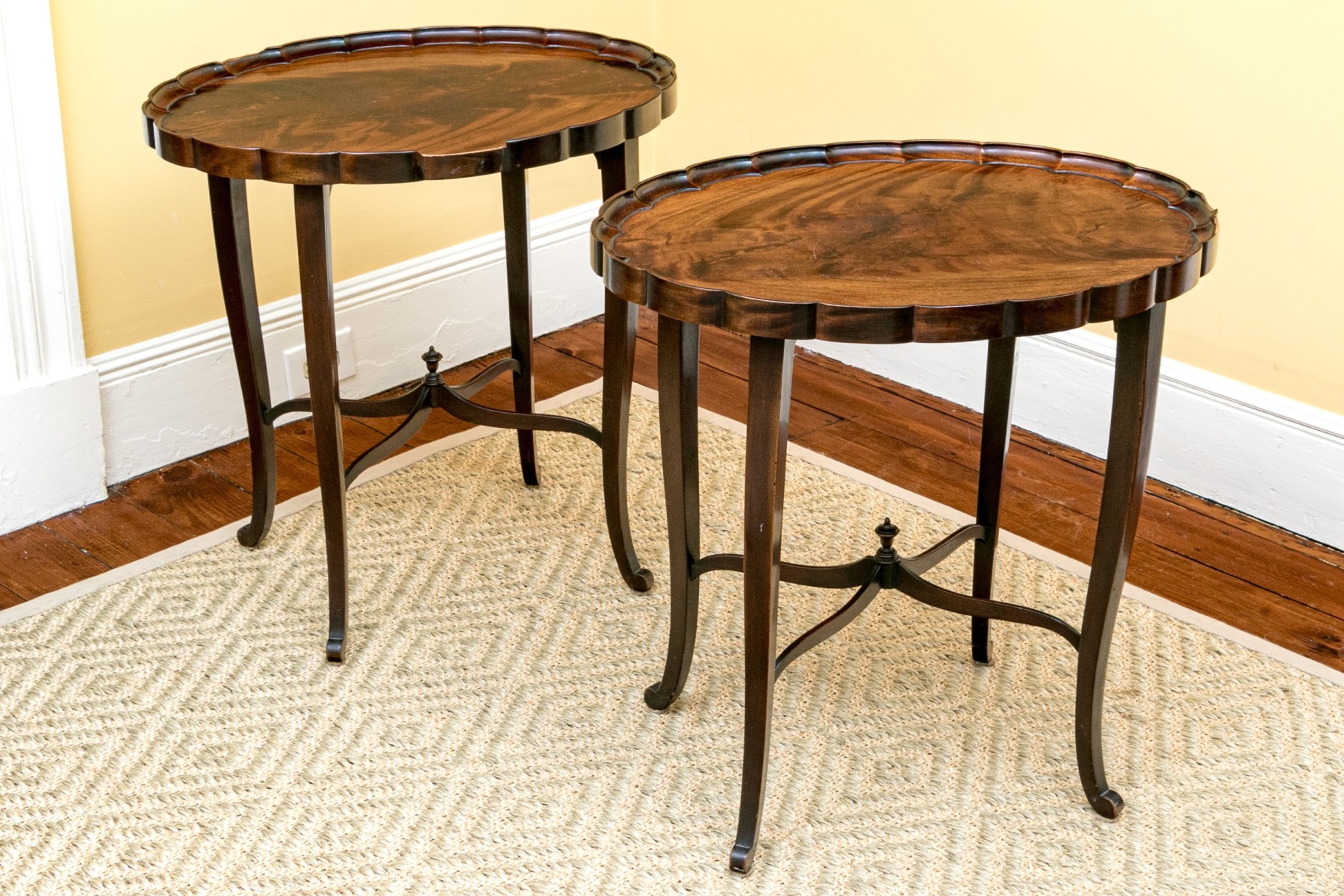 George III Style Pair Of Pie Crust Oval Top Mahogany Side Tables, Ca. 1950 Or Earlier #341211. Black Rock Galleries provides high end estate liquidation services through online estate auctions and a 50,000 sq ft designer showroom. estate liquidator, estate sale, online auction, antiques, fine art, liquidation, clean outs, auction, consignment, interior design, fine jewelry, collectibles, appraisals, estate appraisals, estate services, decor, furniture, furniture consignment, antique center, consignment shop. We offer appraisal services and specialize in fine art, jewelry, antiques and decorative arts. Sell with us. Black Rock Galleries is the tri-state's largest estate liquidator serving New England and the greater New York City area. We are the trusted source for expert appraisals, auction services, estate sales, and consignments. Black Rock Galleries is the east coast's largest and most trusted estate liquidator, with locations in Connecticut, greater Boston, MA and Raleigh, NC, Fairfield, Southport, Apex, TX. We are the best source for expert appraisals, auction services, estate sales and consignments. We have served thousands of families and estates with compassion, professionalism and expertise. BRG works with attorneys, executors, realtors and families to bring the greatest return on personal and estate property in the current market. Our unique combination of services make us the easy choice to get the job done in a timely and stress-free manner. We are with you from the initial consultation to the final clean out. Our house-built online auction software platform offers clients a dynamic approach to liquidating their personal property. This venue is most successful in bringing the best return with the least amount of disruption for our clients. See our services page for a complete description of this offering. George III Style Pair Of Pie Crust Oval Top Mahogany Side Tables, Ca. 1950 Or Earlier #341211