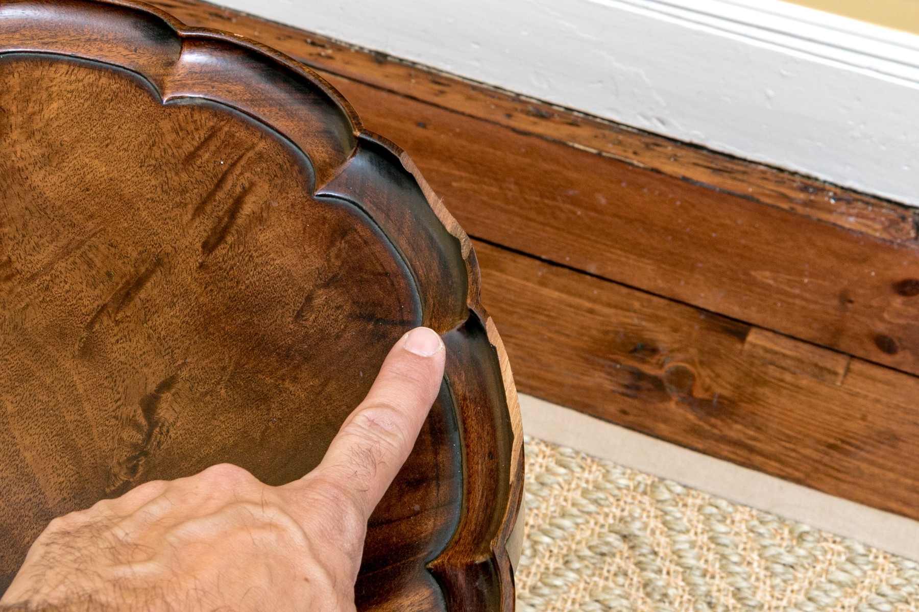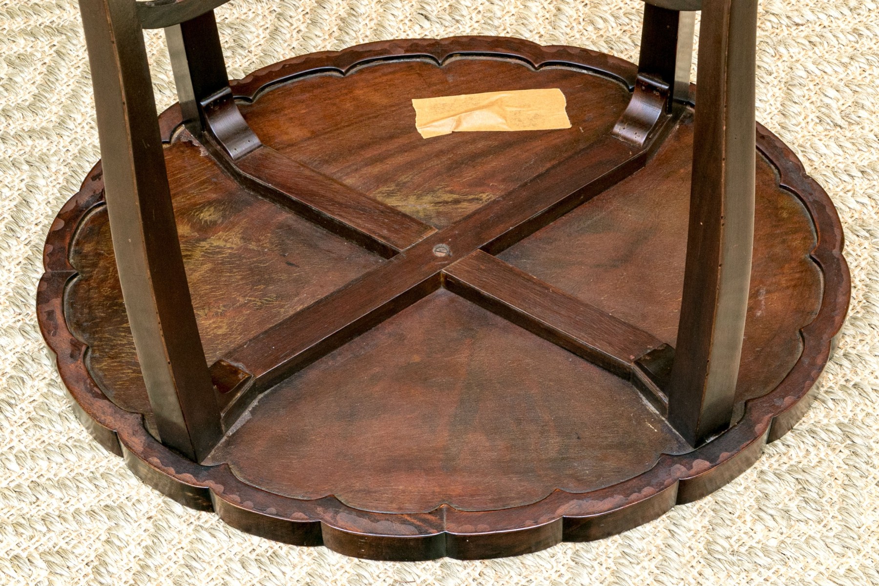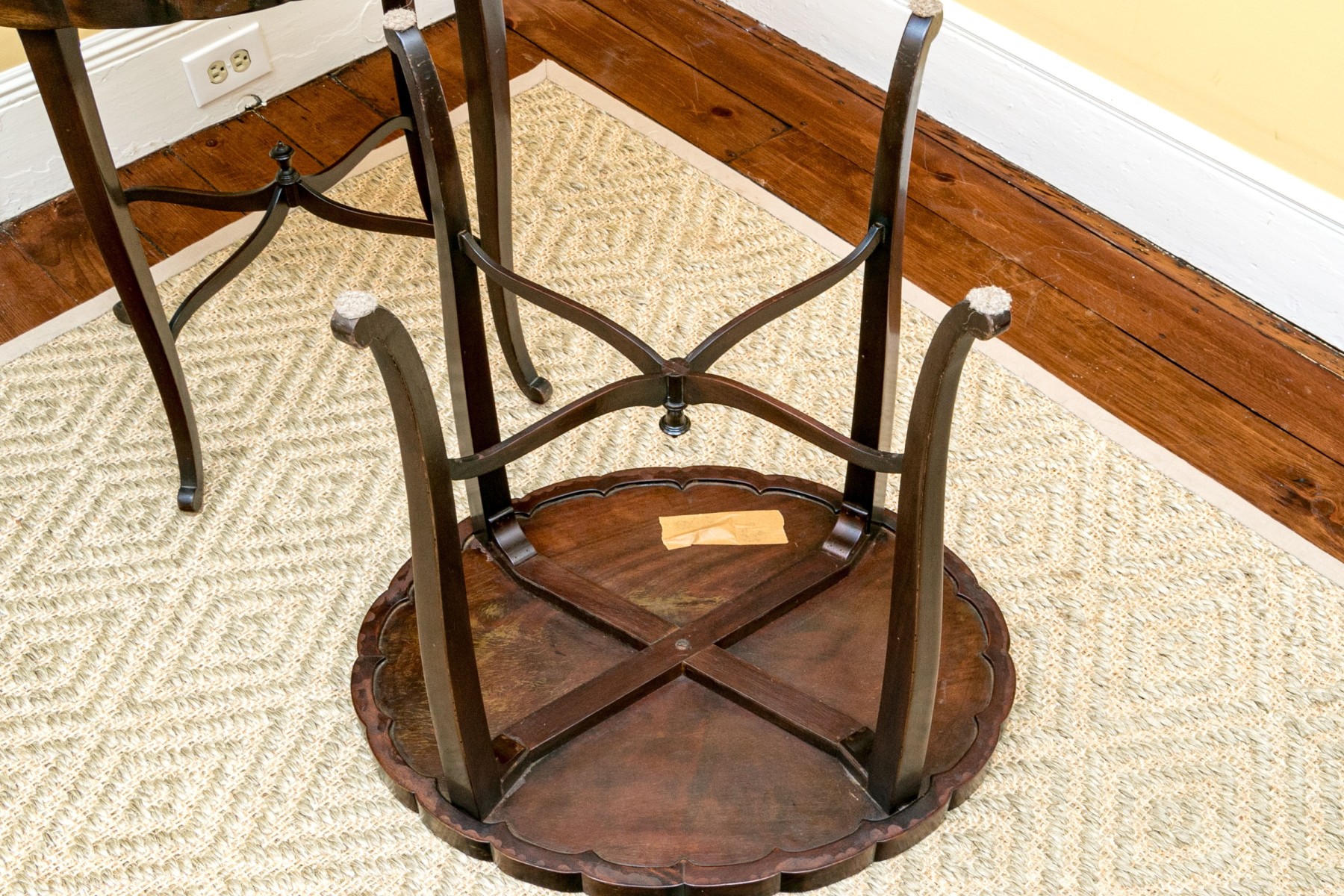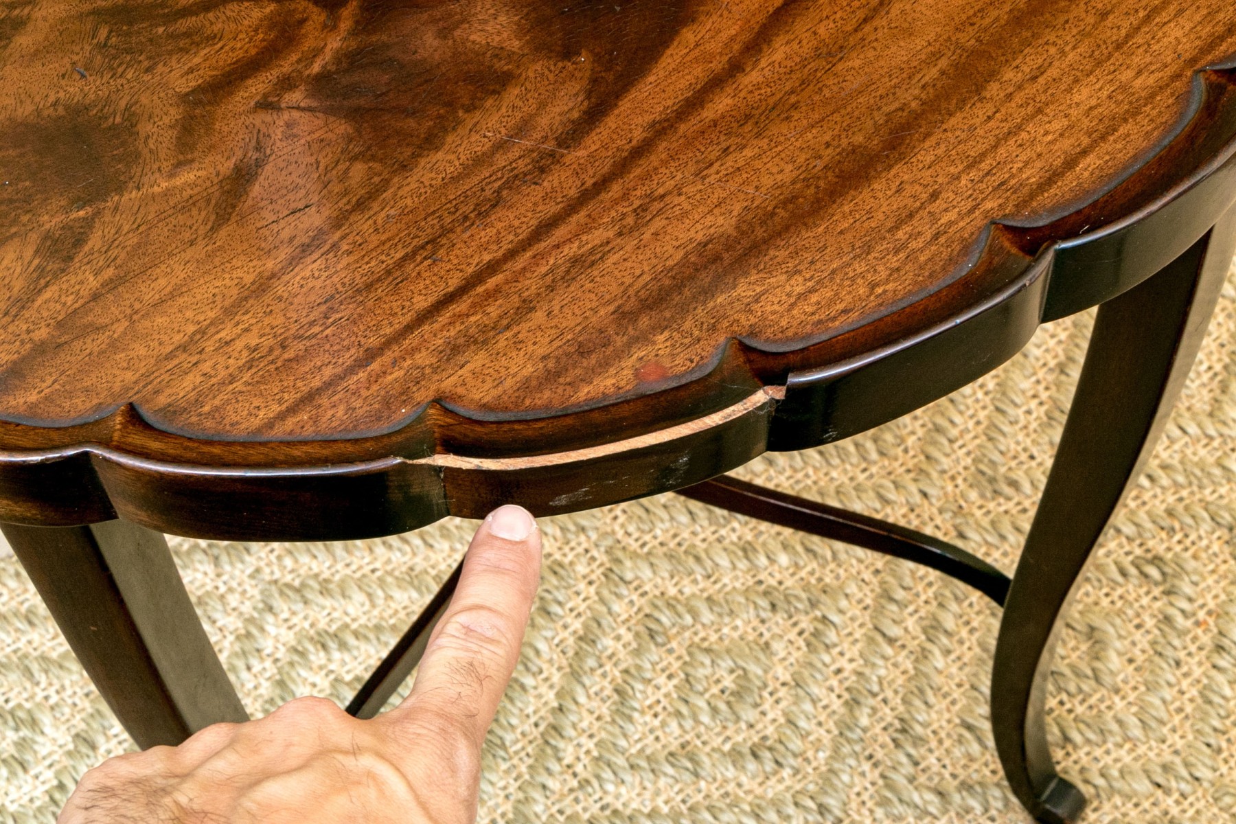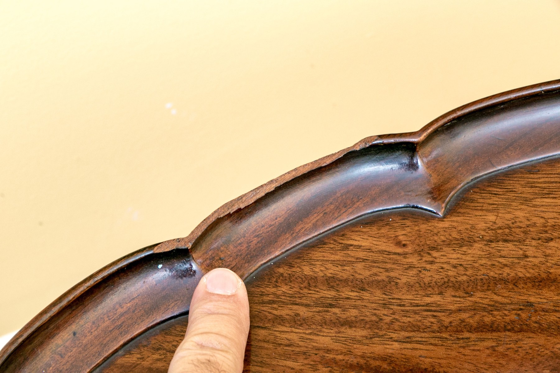 There are losses to the scalloped pie crust trim to both tables. Each will need restoration.