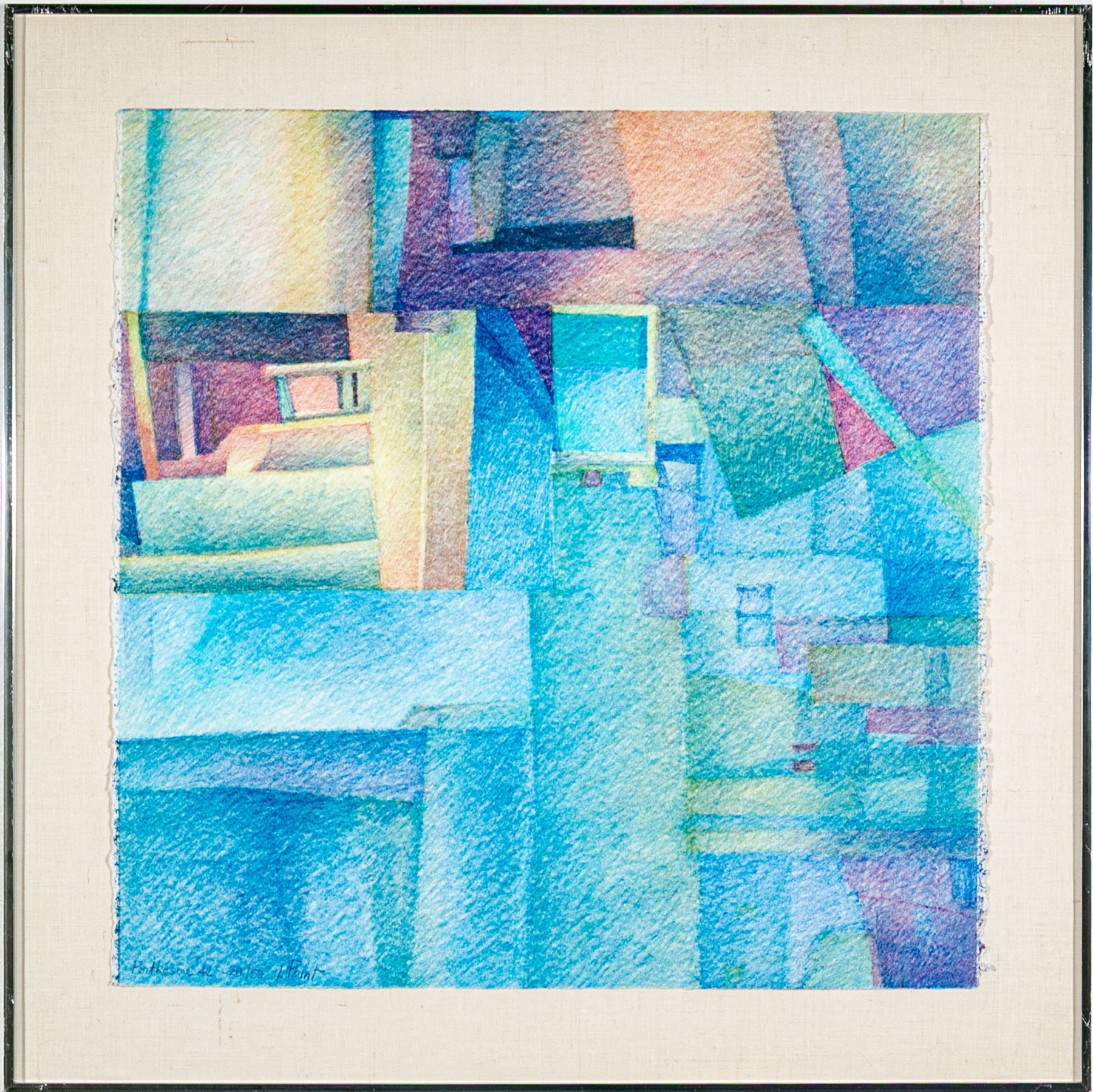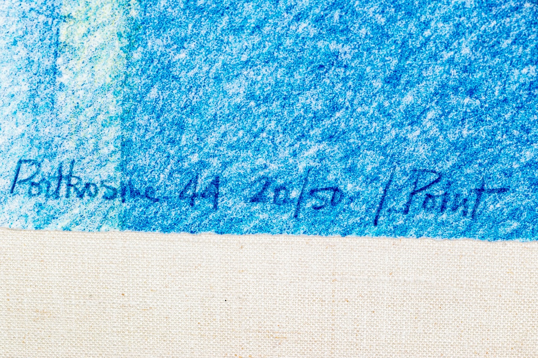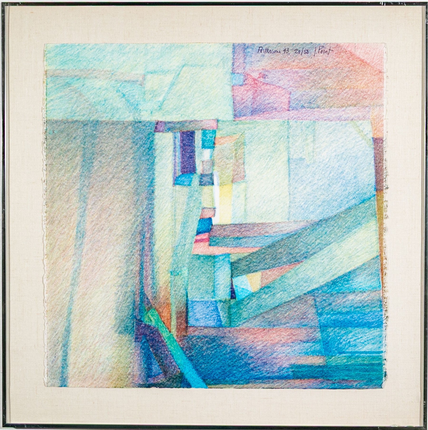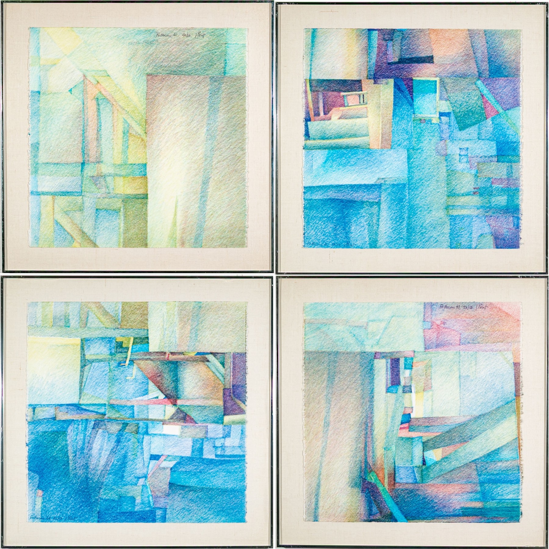 Each signed, titled and numbered- Portkosme 42, 43, 44 and 45, each edition of 20/50. Printed by Atelier d'Edoume, Marseille. Beautiful colored abstracts with bright turquoise. Each mounted on linen and presented in brushed chrome frames with glass.