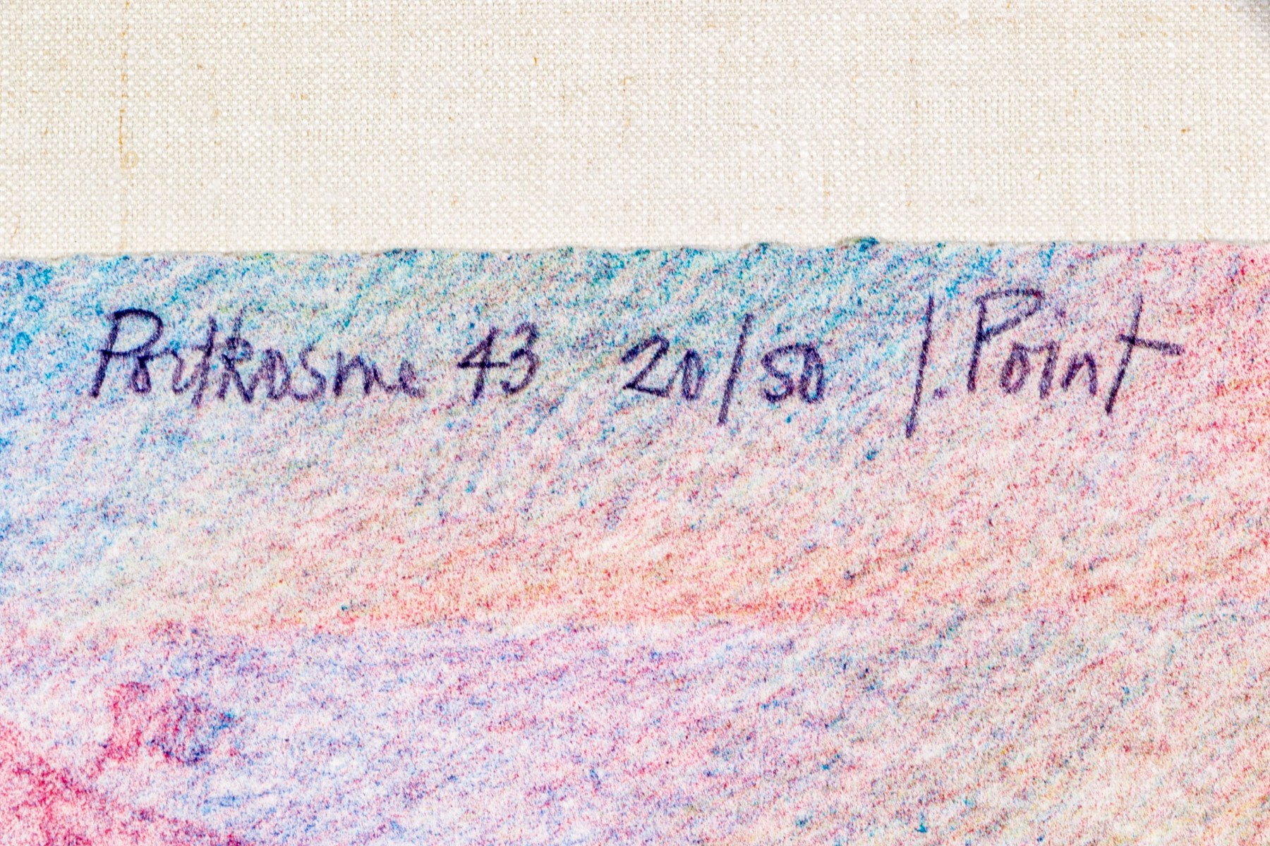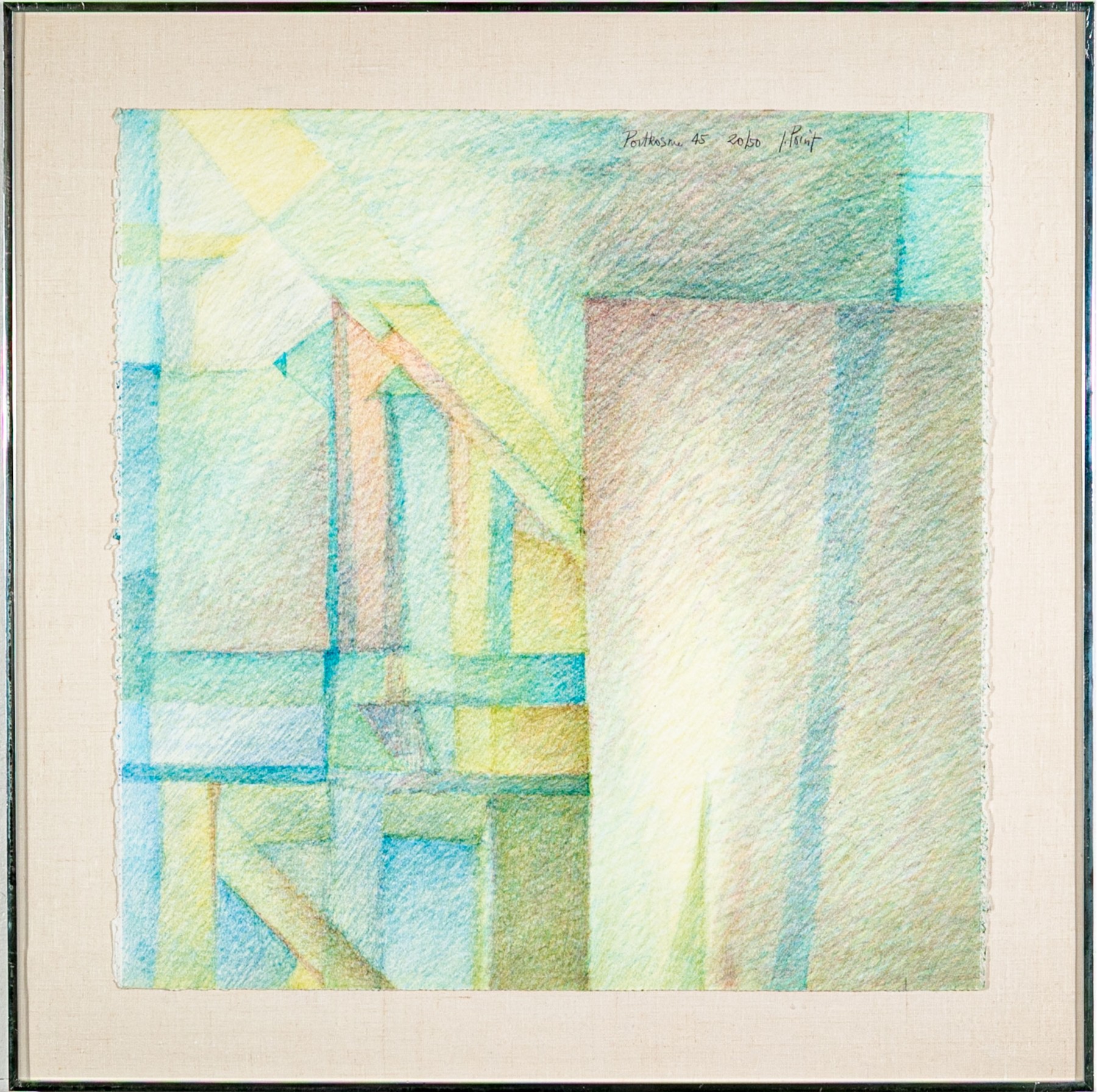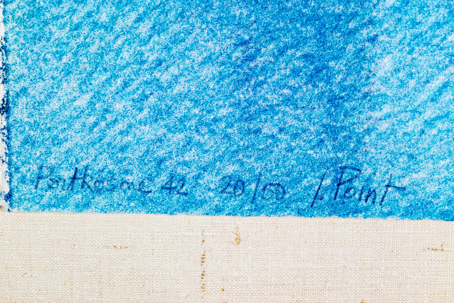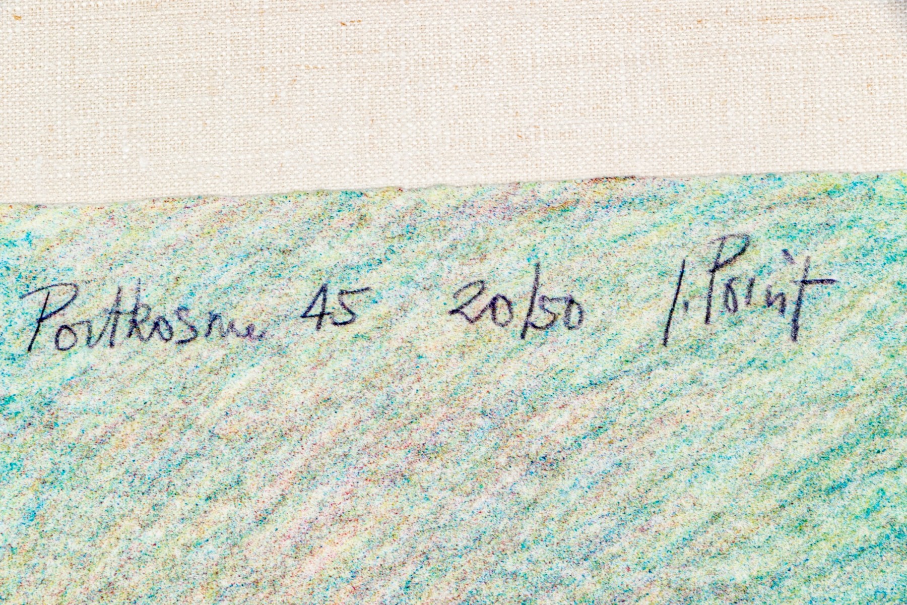 Each signed, titled and numbered- Portkosme 42, 43, 44 and 45, each edition of 20/50. Printed by Atelier d'Edoume, Marseille. Beautiful colored abstracts with bright turquoise. Each mounted on linen and presented in brushed chrome frames with glass.