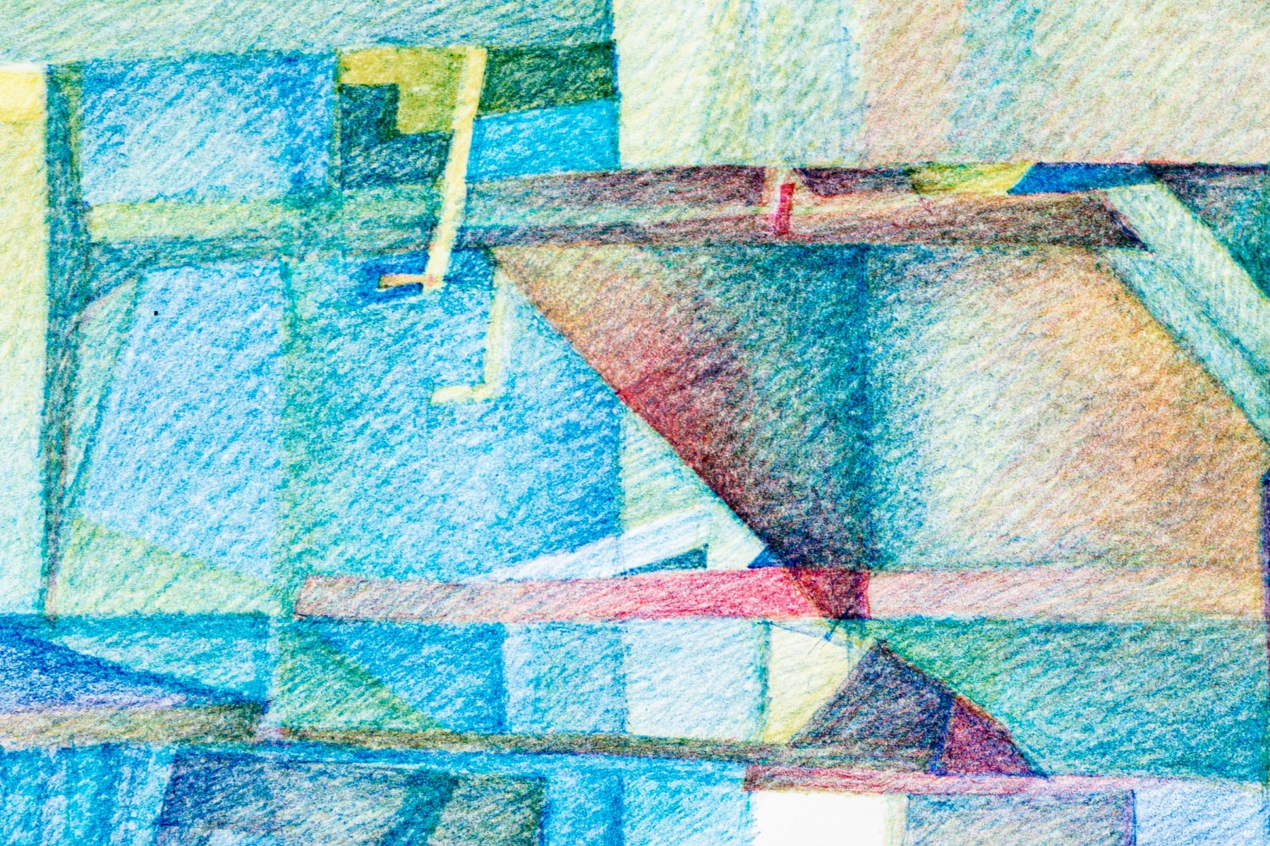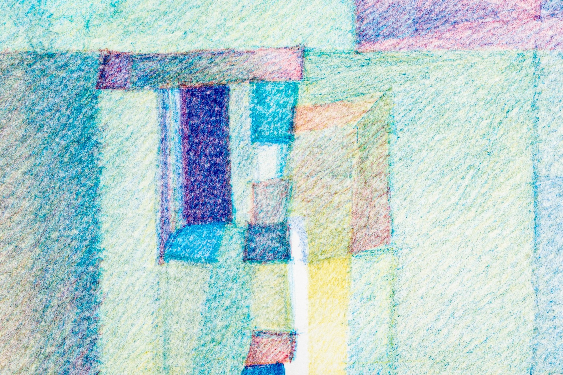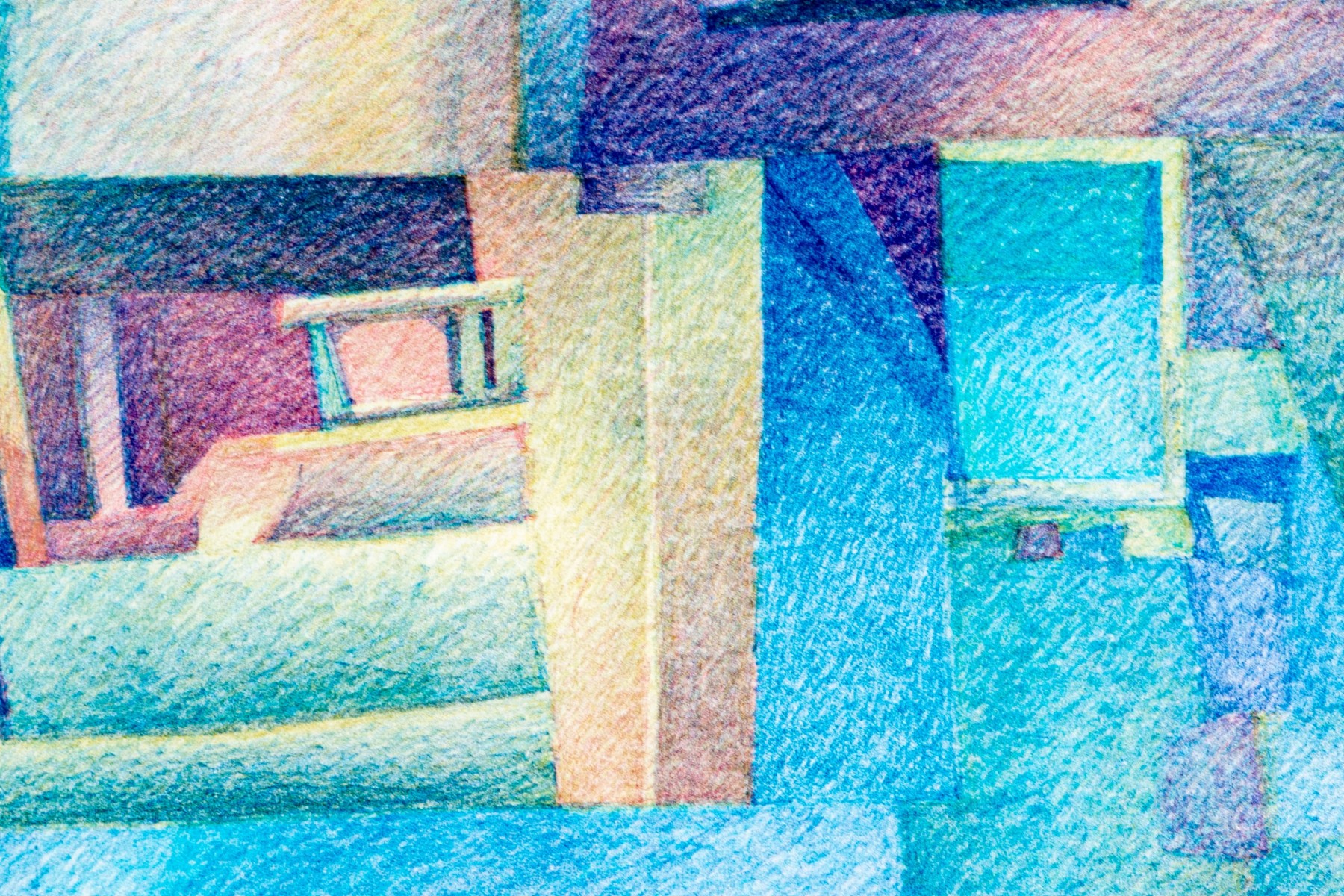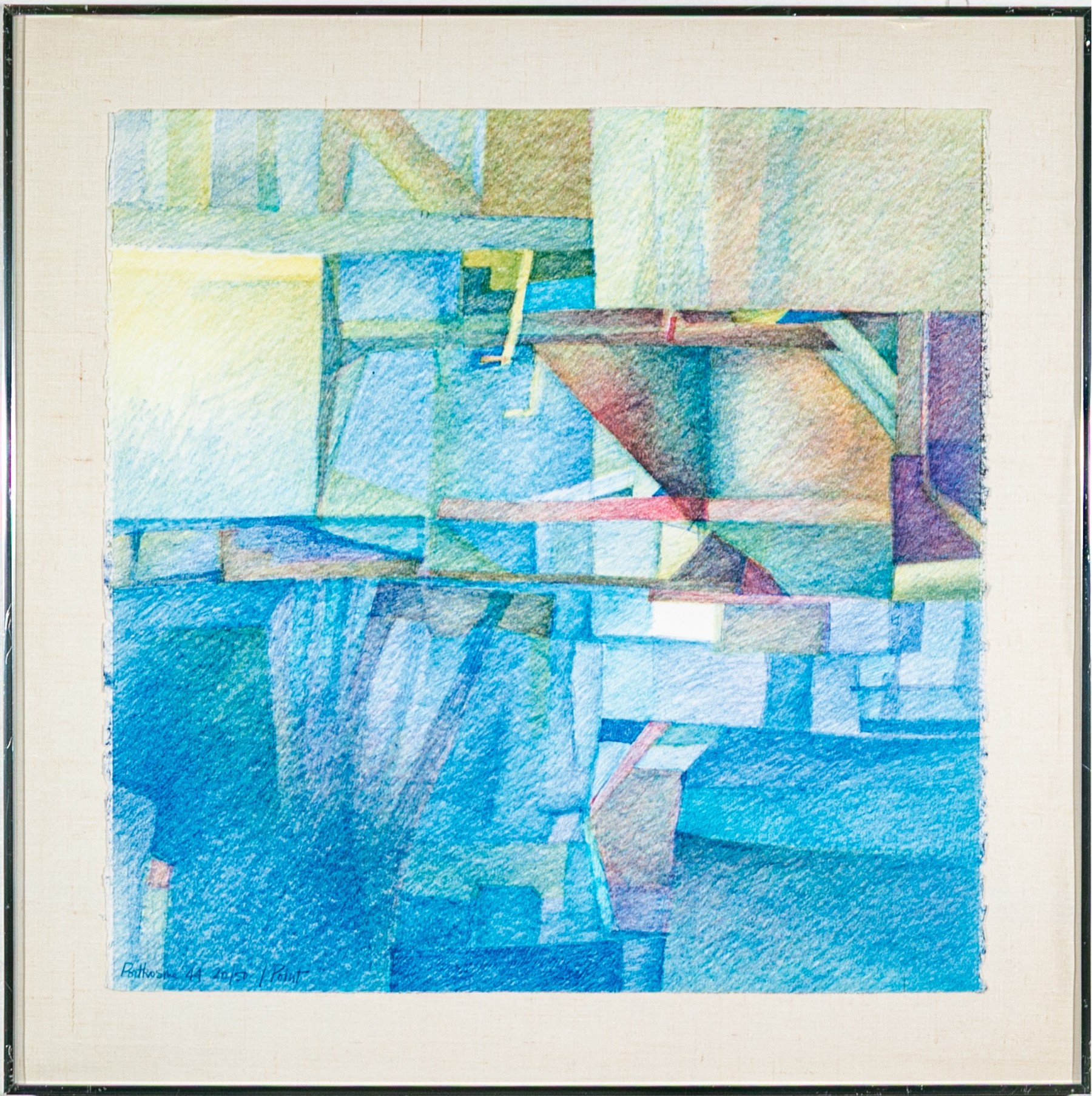 Each signed, titled and numbered- Portkosme 42, 43, 44 and 45, each edition of 20/50. Printed by Atelier d'Edoume, Marseille. Beautiful colored abstracts with bright turquoise. Each mounted on linen and presented in brushed chrome frames with glass.