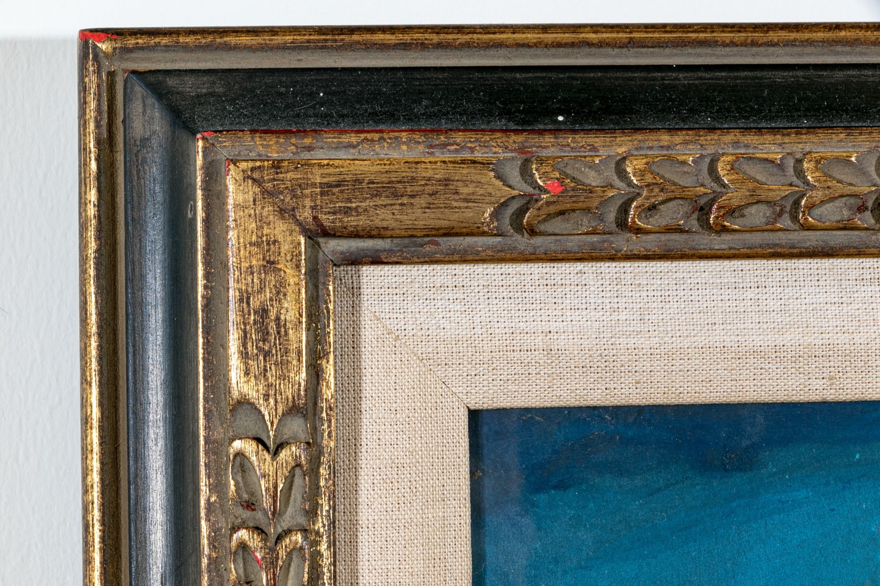 Presented with linen filet and in ebonized and gilt finished frame.